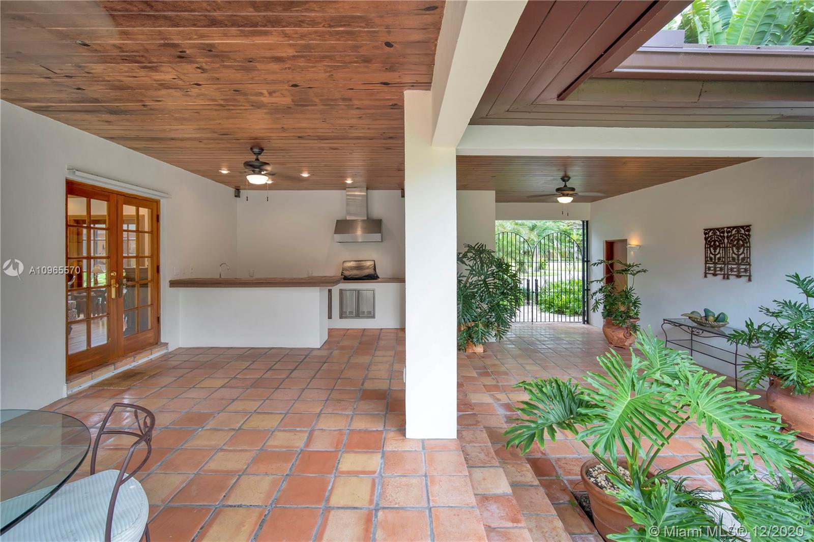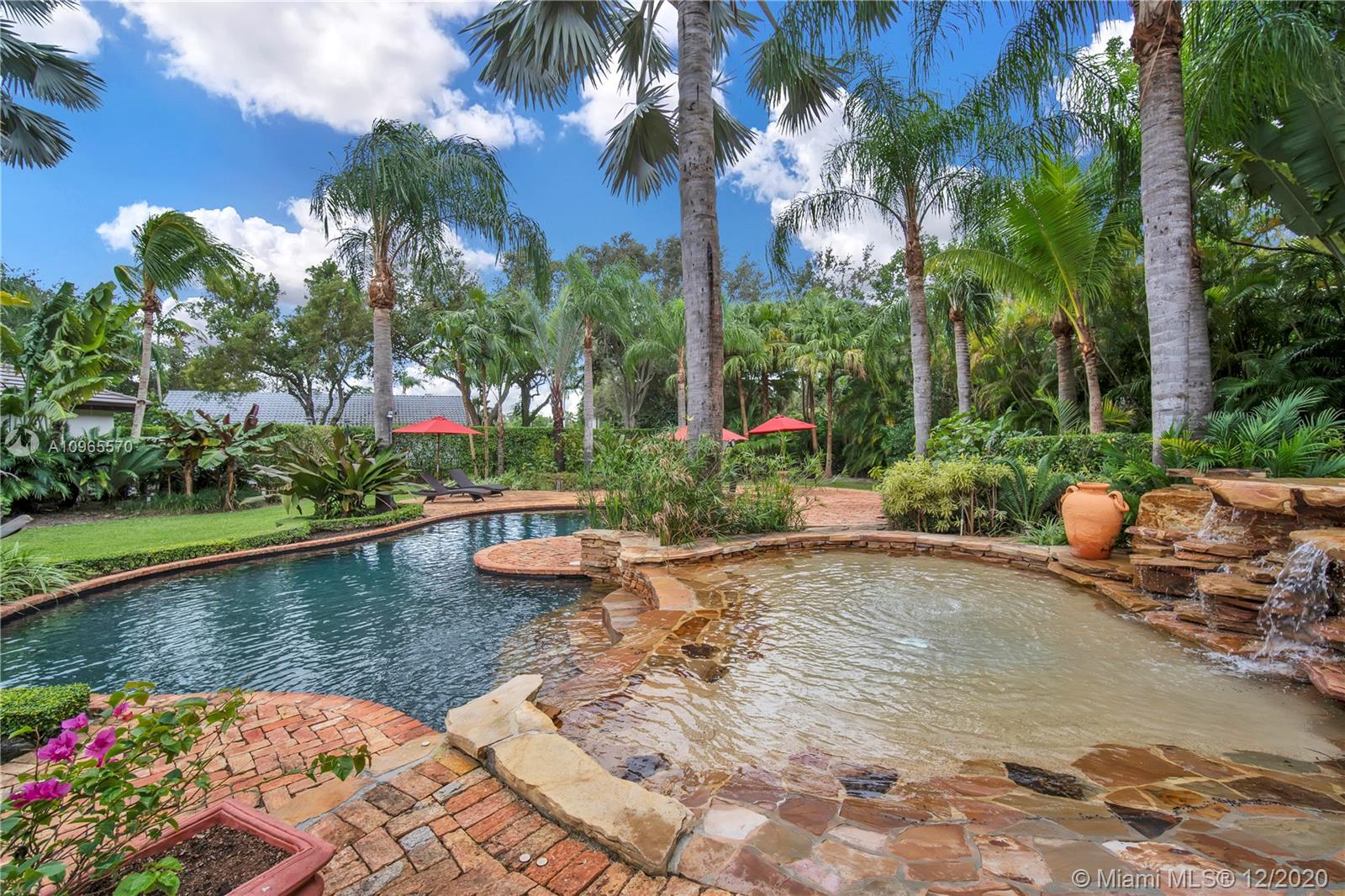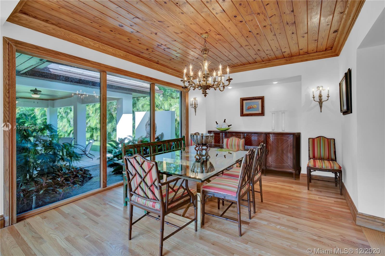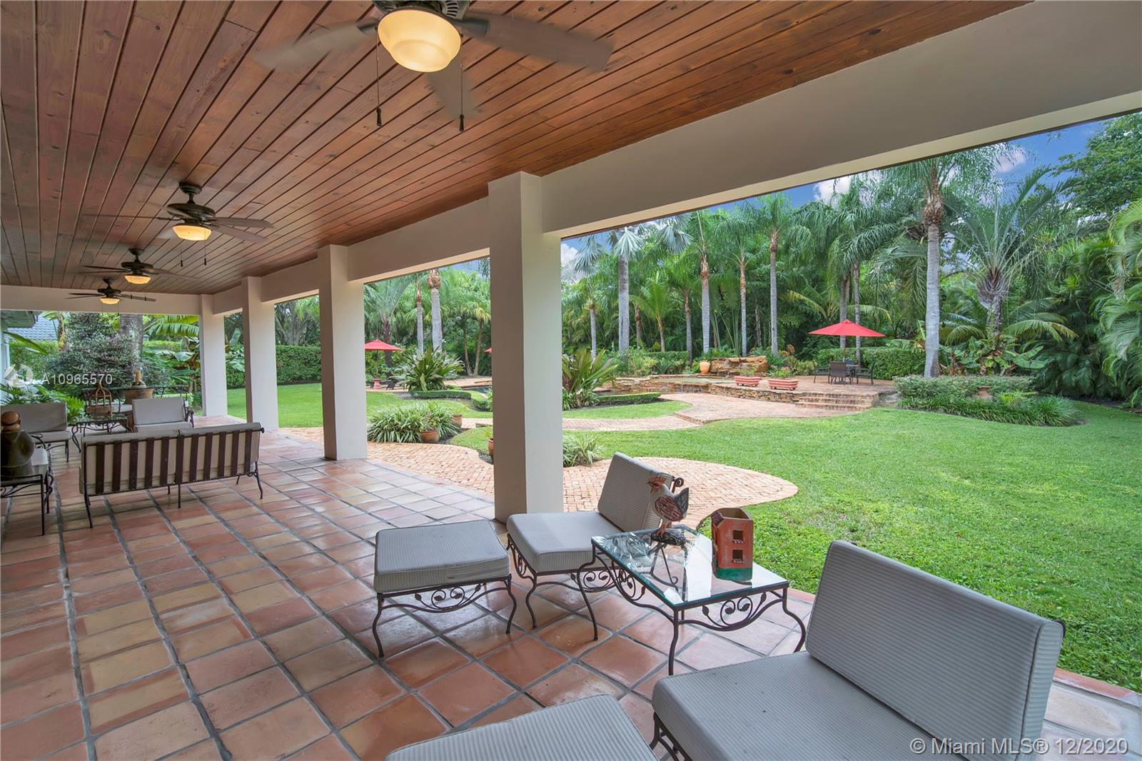 Resort Style living in Pinecrest. Large 4/3.5 home on 41,817 Sq. Ft. lot located in a gated enclave. Enter the great room with beautifully restored original oak wood floors and an 18ft tongue and groove ceiling. The family room with tray ceiling is surrounded by a courtyard and wraparound terrace. Sit in the den with the interior planter for some quiet time. Master suite and 1 Ensuite bedroom located on one side of the house, other two bedrooms with a Jack & Jill bathroom are on the other side. Transport yourself to a resort as you walk the terrace and winding pathway surrounding the lagoon pebble tech pool. The beach entrance & waterfall offer fun family time. This home has the modern-day comfort you're looking for and the luxury you desire. New roof installed 2019, PVC pipes, city water.