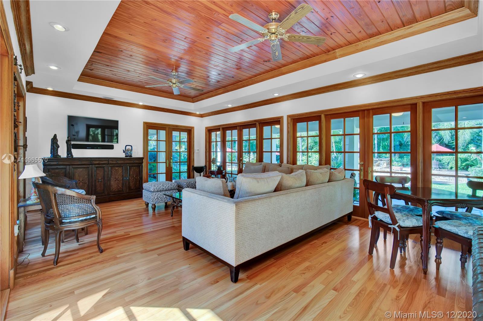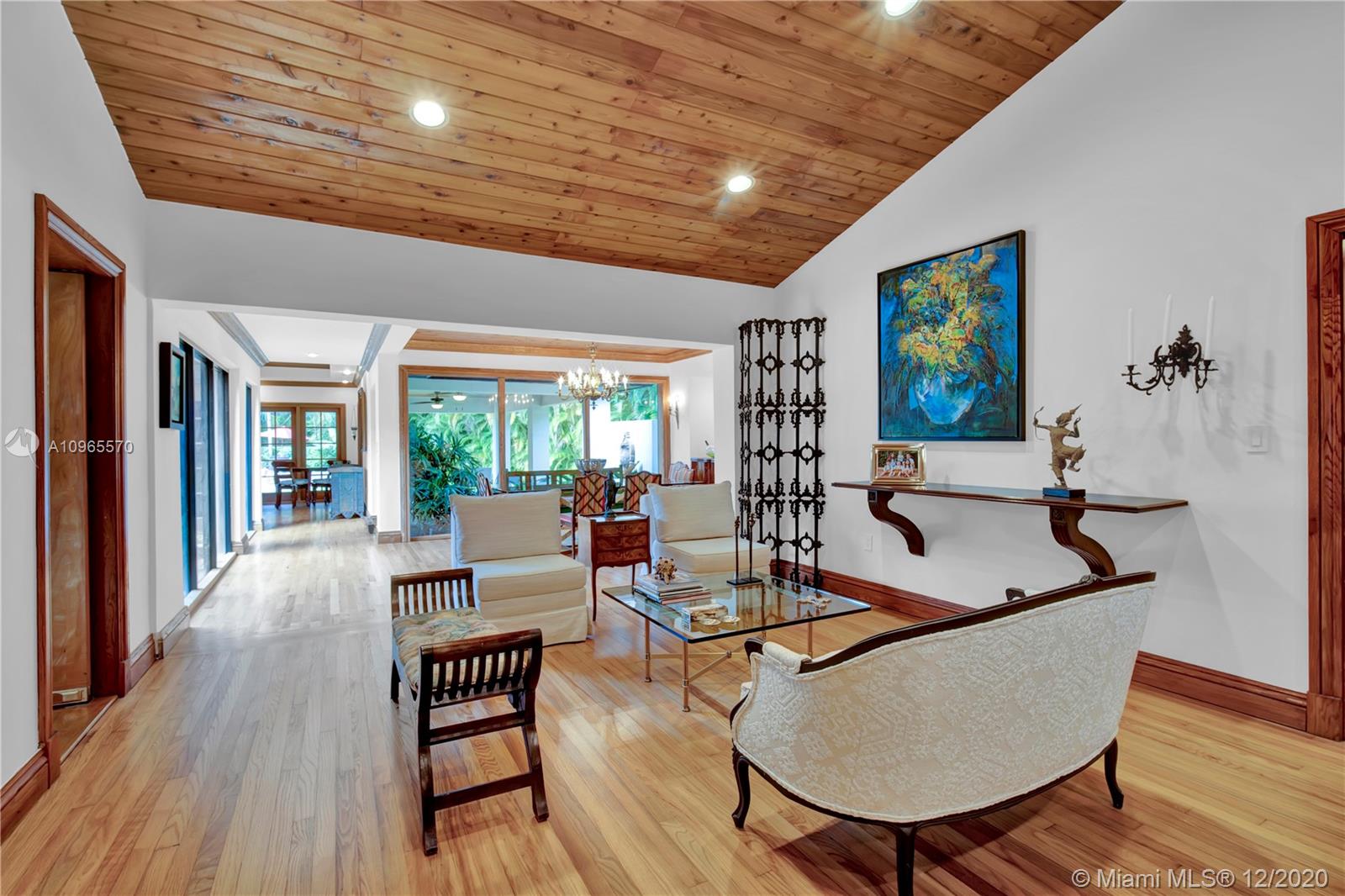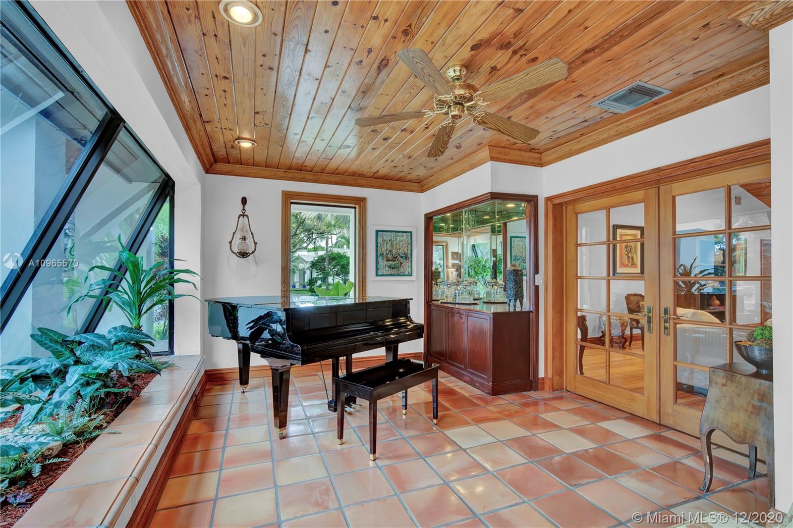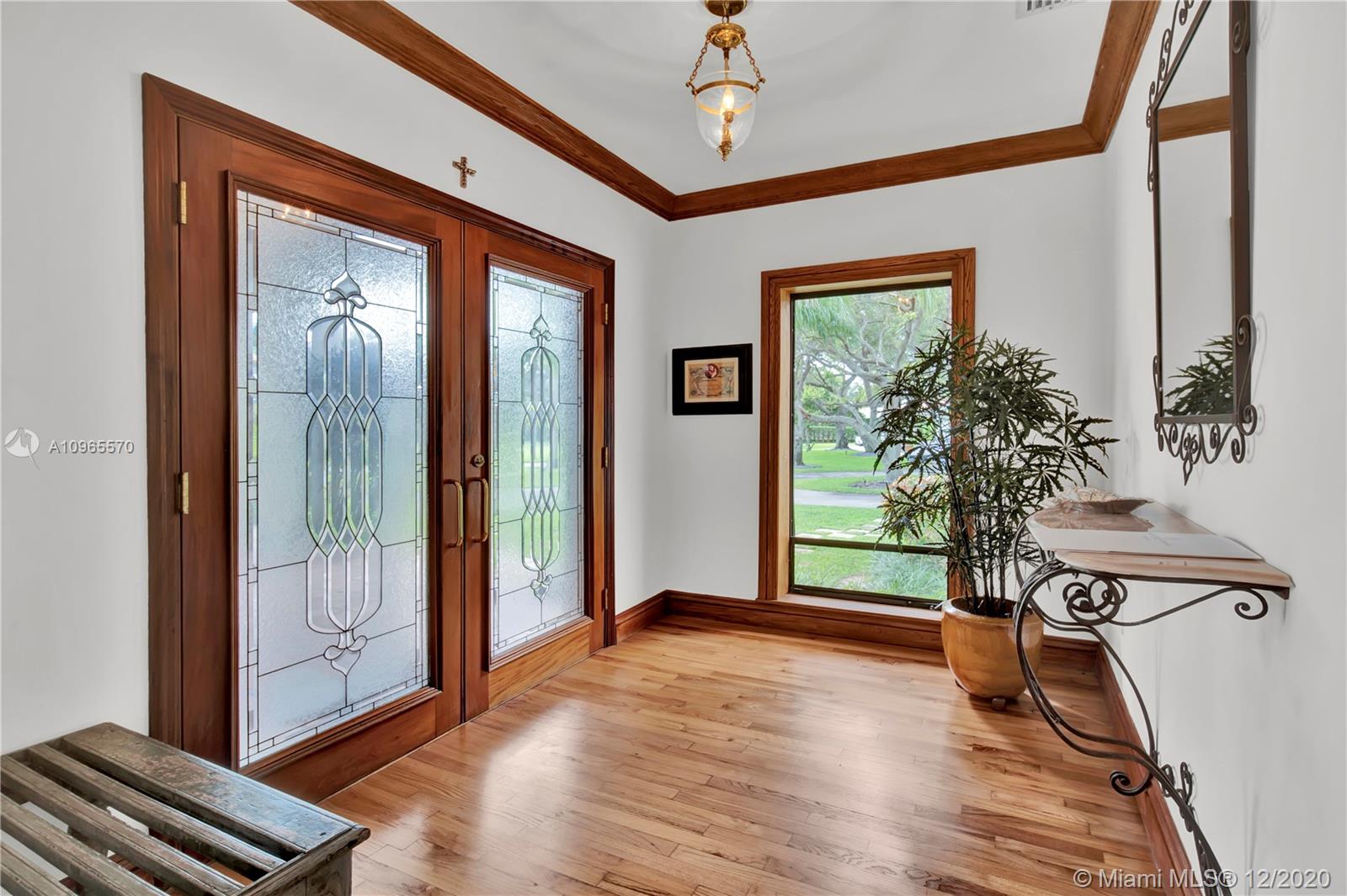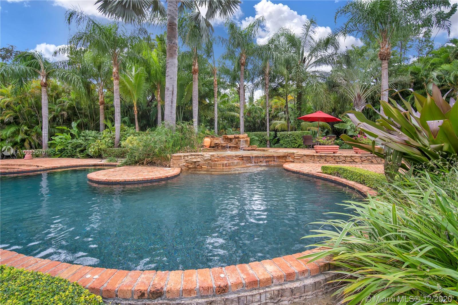 Resort Style living in Pinecrest. Large 4/3.5 home on 41,817 Sq. Ft. lot located in a gated enclave. Enter the great room with beautifully restored original oak wood floors and an 18ft tongue and groove ceiling. The family room with tray ceiling is surrounded by a courtyard and wraparound terrace. Sit in the den with the interior planter for some quiet time. Master suite and 1 Ensuite bedroom located on one side of the house, other two bedrooms with a Jack & Jill bathroom are on the other side. Transport yourself to a resort as you walk the terrace and winding pathway surrounding the lagoon pebble tech pool. The beach entrance & waterfall offer fun family time. This home has the modern-day comfort you're looking for and the luxury you desire. New roof installed 2019, PVC pipes, city water.