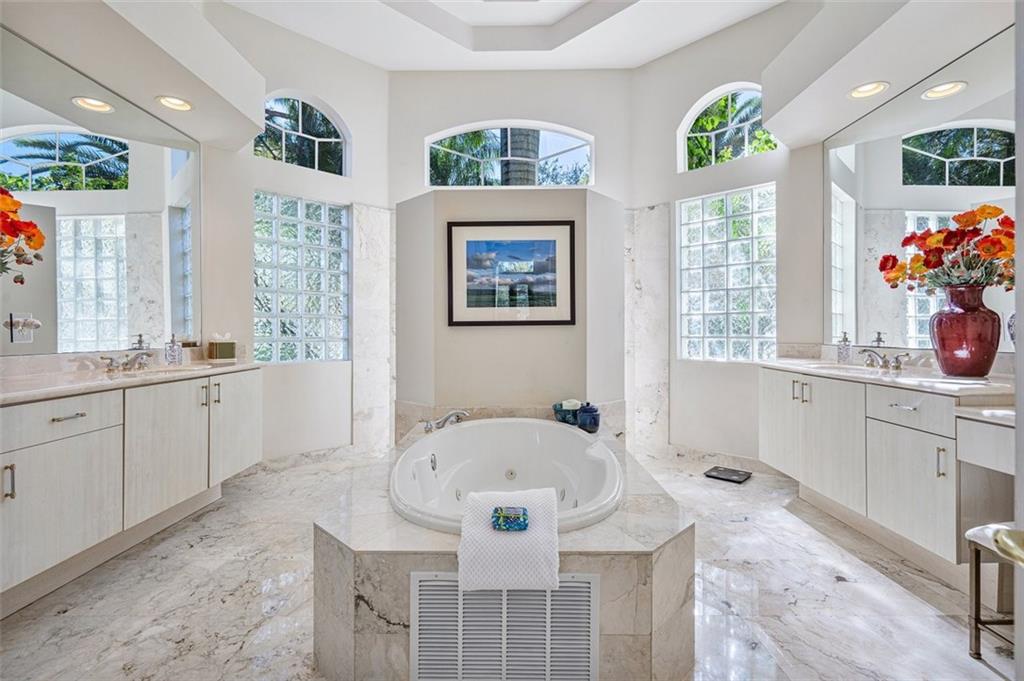 Simply a Beautiful home featuring Grand light-filled living areas via Soaring Walls of windows/glass doors & a 50 ft lap pool. Situated in the exclusive & intimate community of 'In the Pines'. Impressive curb appeal with a sprawling front lawn, manicured landscape, 3.5 garage & large circular driveway. Upon entering thru a double door entry, you are greeted by serene views of the pool & backyard, soft color walls & marble floors. The expansive Kitchen/Family Room area will make your heart sing with fine wood cabinets, SS appliances, double oven, granite & 2 story ceilings. The 1st floor Master Suite is sublime & offers a sitting area, luxurious spa-like bath & huge closet! Large bedrooms, theater room & private spaces make this home perfect for today's need for a personal & private retreat