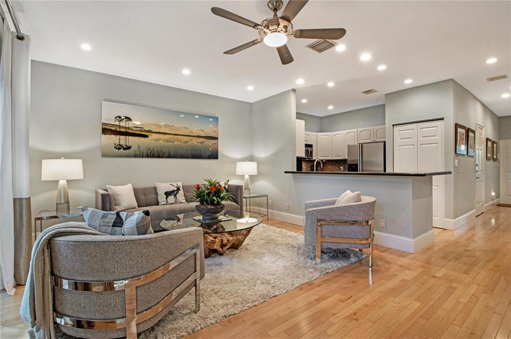 Beautiful designer town home just off Wilton Drive in gated community with pool! Totally updated home with 3/4" maple wood flooring and new recessed lighting throughout, open living space with sliders to private patio, half bath, and kitchen with granite counter tops and new dishwasher. Second floor boasts vaulted ceilings, large master retreat with spa like bathroom with double vanity and oversized shower, front loading washer & dryer. Extra bonus office/den/3rd bedroom in this layout and garage. Click the virtual tour link to see 3D tour!