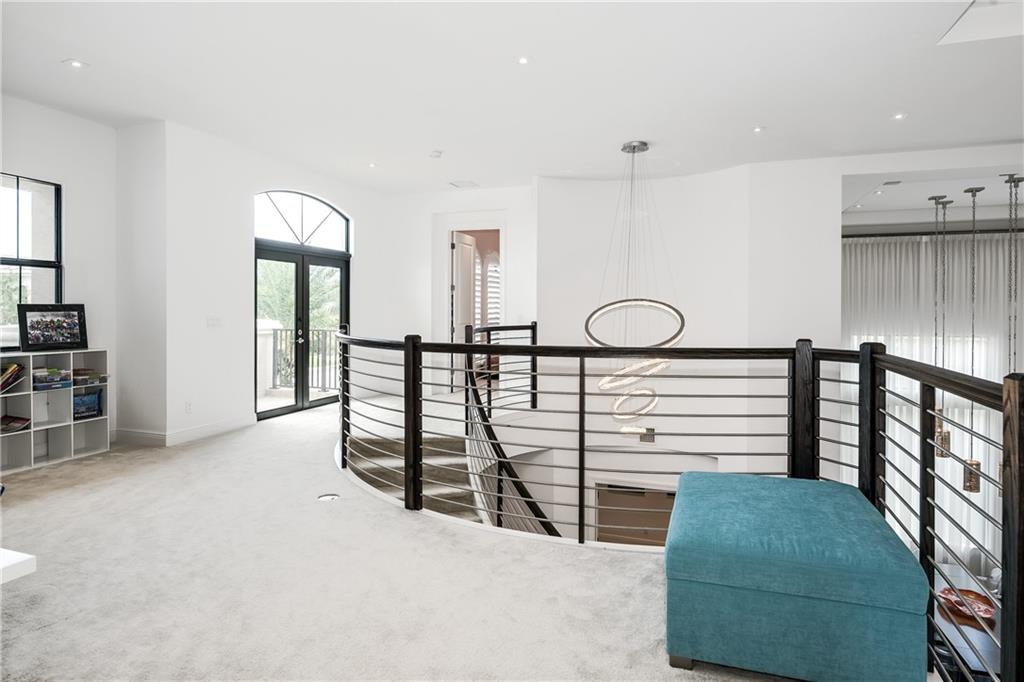UPGRADES & DETAIL throughout! Professionally designed w/ ONE OF A KIND Kitchen & Extended ISLAND that is 16.5 ft long! MUST SEE in person this RARE Gourmet kitchen featuring 6 GAS burners, griddle, 4 ovens, pot filler, beverage center, instant water, water purifier, Quartz w/ waterfall edges, custom pullouts w/ endless storage & cabinets. 5 Bedrooms+5.5 Baths+Theatre Room+Loft+Master Downstairs+Extended Circular Driveway+Water lot! Control TV, music, lights & AC w/ SMART home system. THEATRE room equipped w/ screen & projector. Beautiful upgraded wood floors, designer window treatments, dramatic light fixtures, Upgraded Modern Stair bannister, Spray foam insulation, enlarged custom laundry room w/ Mud room. Extended covered patio with HUGE yard where you can build your own DREAM POOL!