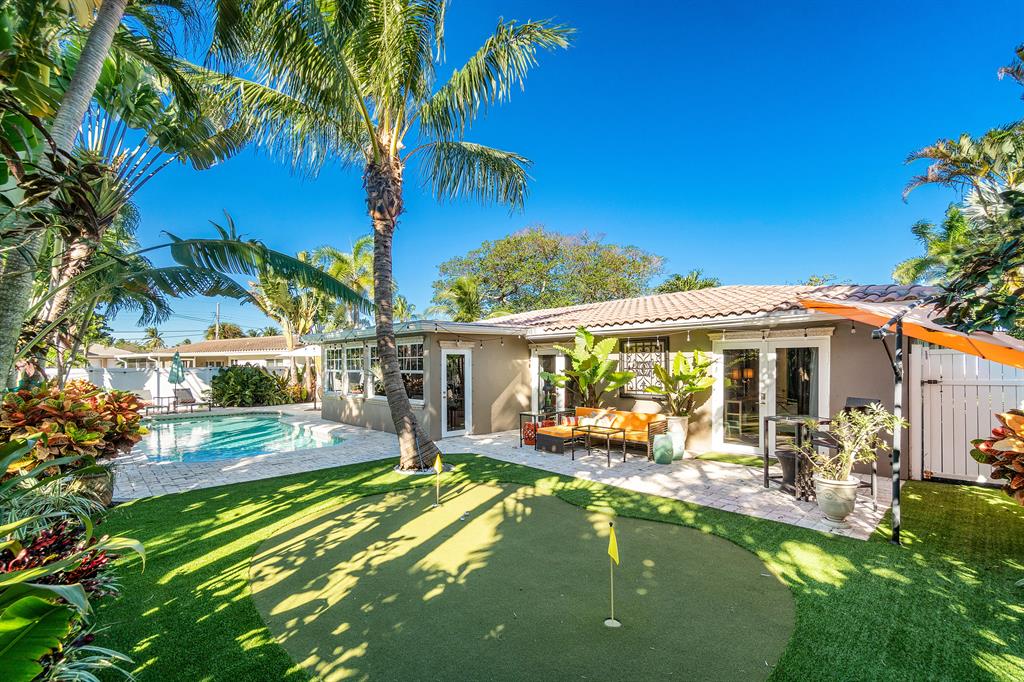 Wake up to the beautiful morning light and view of your private resort-like backyard with pool and putting green. This 3/2+ Bonus area is an Entertainers Dream home, located in East Boca. Home Features include: Open floor, Farm Style Kitchen with stainless steel appliances, Viking double oven, Pergo floors, crown molding, wood paneled ceiling in the Kitchen and Florida Room. The open concept family room has a stone feature wall and bay windows with garden views. 3/4 mile to the beach, close to Mizner Park shops, restaurants and places of worship.
