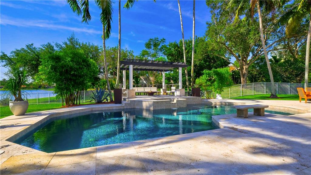 This luxurious waterfront home with 7 bedrooms & 6 ½ bathrooms and 1.31 Acres includes a billiard room, formal dining room, luxury home office, sunken wet bar, and exercise room. Located in Windmill Ranch Estates this magnificent lakefront home offers an open floor plan with an expansive outdoor living space, which beautifully lends itself for entertaining guests and family. With an ever-present southeasterly breeze delight yourself in the stunning heated salt-water pool surrounded by an extensive travertine deck, a beautiful pergola with fire pit and a convenient outdoor grilling center. Inside you will be elated with its eclectic contemporary design. The immaculate kitchen with Miele appliances and quartz countertops also boasts a wine storage with 600+ bottle capacity. Come and see it !