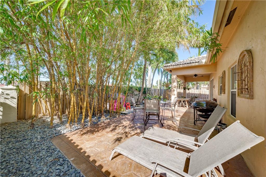 THIS HOME REALLY DELIVERS! Popular gated community in Davie! Close to highway, shopping and restaurants. Three bedroom two and one half bath home in sought after West Park. Lovely kitchen with newer stainless steel appliances. All 3 bathrooms recently remodeled. Two of them within a year. Lots of cabinets and counterspace! A/C 2015. You will love the updated master bath, hall bath and half bath! Crown molding. Smooth surface ceilings, No Popcorn. Hard surface floors throughout. Large corner lot with privacy fencing installed in 2014. Great private green space adjacent to the property. Beautiful landscaping throughout. Maintenance includes front lawn service. Spacious 15 x 45 stamped concrete patio with a covered area. Hurry! This home has it all!