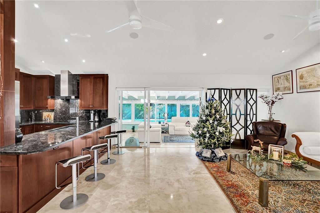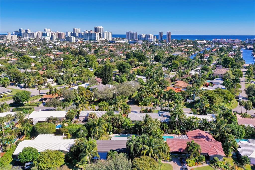 Sometimes you can just feel the quality -- this is it. Located in sought after Coral Ridge ( Bayview Schools). Attention to detail in this Incredibly well updated mid century home with vaulted ceilings. Open concept kitchen with high end, Miele, Thermador and WOLF. Florida room with exposed beams adds to the charm and unique quality of this amazing home. Consistent marble floor layed throughout the home. Custom closets in both bedrooms. Completely updated bathrooms with high end finish. Hurricane rated impact windows and doors all lead to the show stopping pool area that pulls the outside in. Updated electrical panel and a 2 month old FLAT TILE roof. Fully fenced and lushly landscaped. Full 2 car garage. Arguably one of the best streets in Coral Ridge, 1.6 miles to the beach.