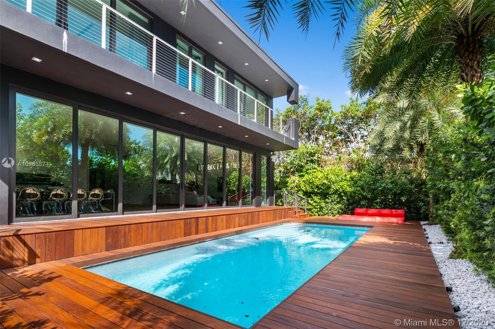 The best value for a new home on the ultra exclusive Palm Island! This stunning modern designed house is the work of Sabal Development and 3,617 SF interior with 5 bedrooms, 5 full baths, a large infinity pool and two car garage. Designed with indoor/outdoor living in mind, the house features a full wall of impact resistant glass doors. Other features include a fully appointed chefs kitchen with Miele appliances, hardwood floors and high ceilings. Each of the three upstairs bedrooms comes with a walk in closet and the master suite features it's own large outdoor terrace. Included with the home is private access for residents to Palm Island Park with both tennis and basketball courts, community police 24 hours a day and a gated security coming on to the island.