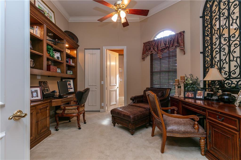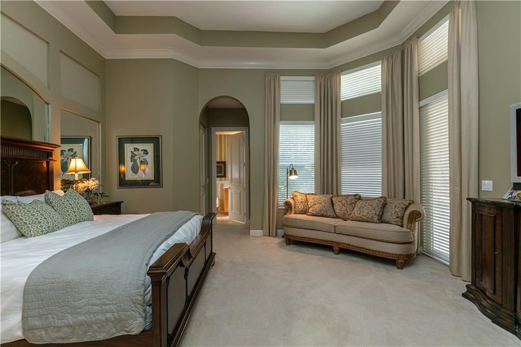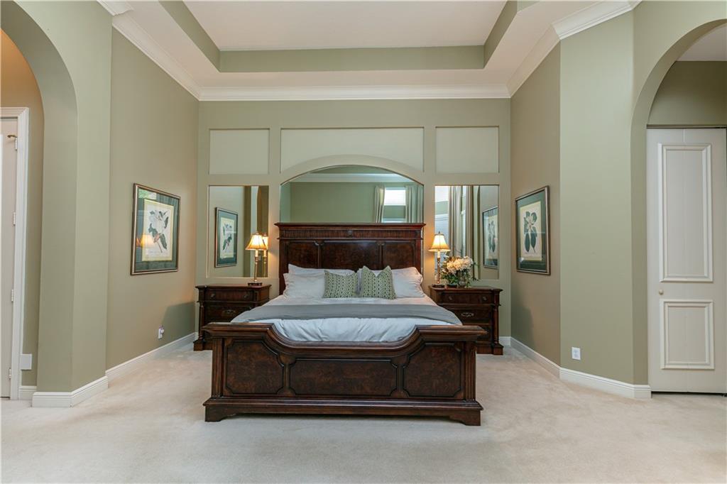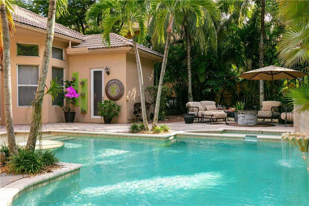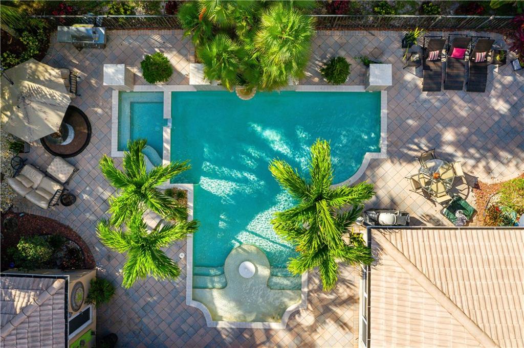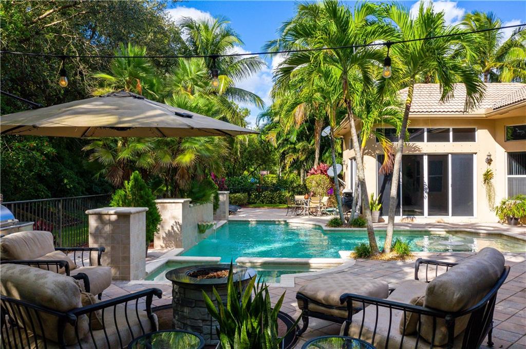 PREPARE TO BE WOWED! The centerpiece of this masterfully designed home is the magnificent wood burning cast stone fireplace that greets you the moment you step into this home. This truly makes the living room (15' ceilings) a great place to gather w/ loved ones & good friends. If being outdoors is your thing then you will love the oversized pool & extended patio deck. Just the perfect spot for summer grilling or just spending time w/ those close to you. Other great features are Travertine floors throughout the living area (recently polished and sealed), crown molding, solid core 8 foot doors, volume & coffered ceilings. Additionally, every bedroom has their own en-suite bathroom, 2nd bedroom is oversized & could be a perfect in-law suite plus master suite has two separate bathrooms!