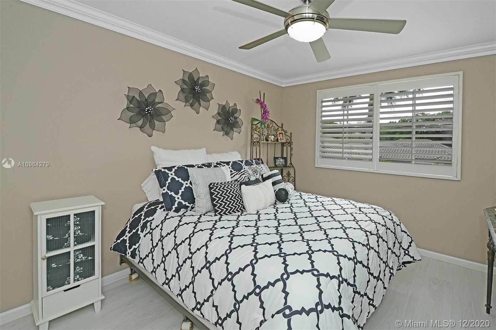 Beautifully renovated courtyard contemporary 4 bedroom, 3.5 bath home with a sweeping lake view! Move in ready home that features updated bathrooms with marble countertops, marble/tile floors, built out walk-in closets, an AMAZING kitchen with large quartz countertops, a separate guest house, motorized window treatments, plantation shutters, newer pool heater, spacious laundry room, master downstairs, two patios (one including Chicago Brick pavers overlooking the lake), community with a pool, tennis courts, game room and fitness center! Centrally located gated community with great Boca Raton schools—will not last!!