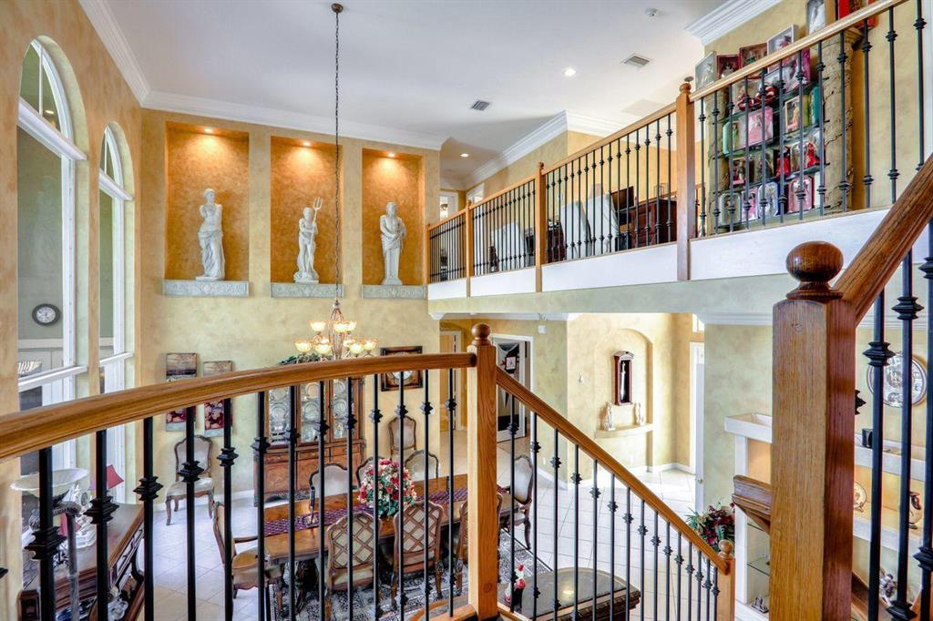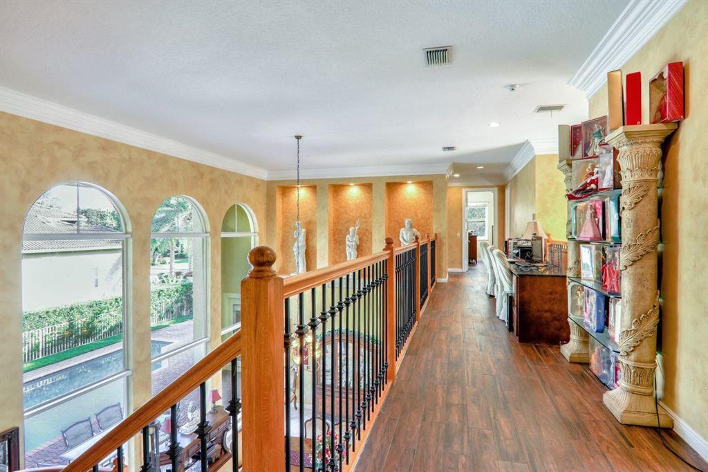 Magnificent Mediterranean themed home with 4826 SF of living space boasting 6 bd, 5 baths + theater room+ office+ 6 car garages in the distinguished gated and guarded private community ''The Isles East''. Entertain your guests in the elegant great room with 30 ft ceilings and double crown molding throughout before settling into the two-tier seating theater room with 8 recliners and 90'' high definition screen. Open kitchen features double oven, newer stainless steel appliances Extra Pantry storage. Two Custom Walk-In Closets in Master bedroom. Upstairs 5 bedrooms, 3 bathrooms and extensive loft area. Outside pool area perfect for grilling with two separate screened-in porches for entertaining.Two 60ton gal. water heaters. Access to PRIVATE PARK w/ Boat Dock/Fitness/Playground/Grilling!