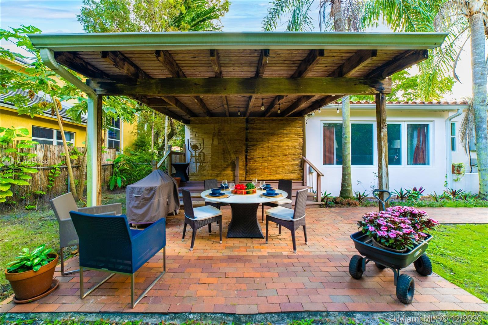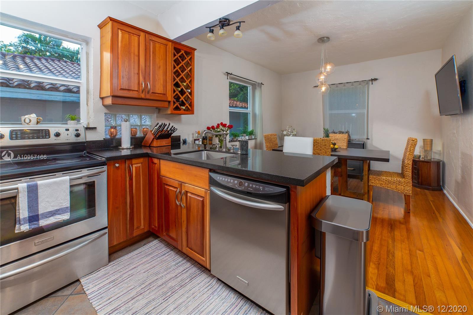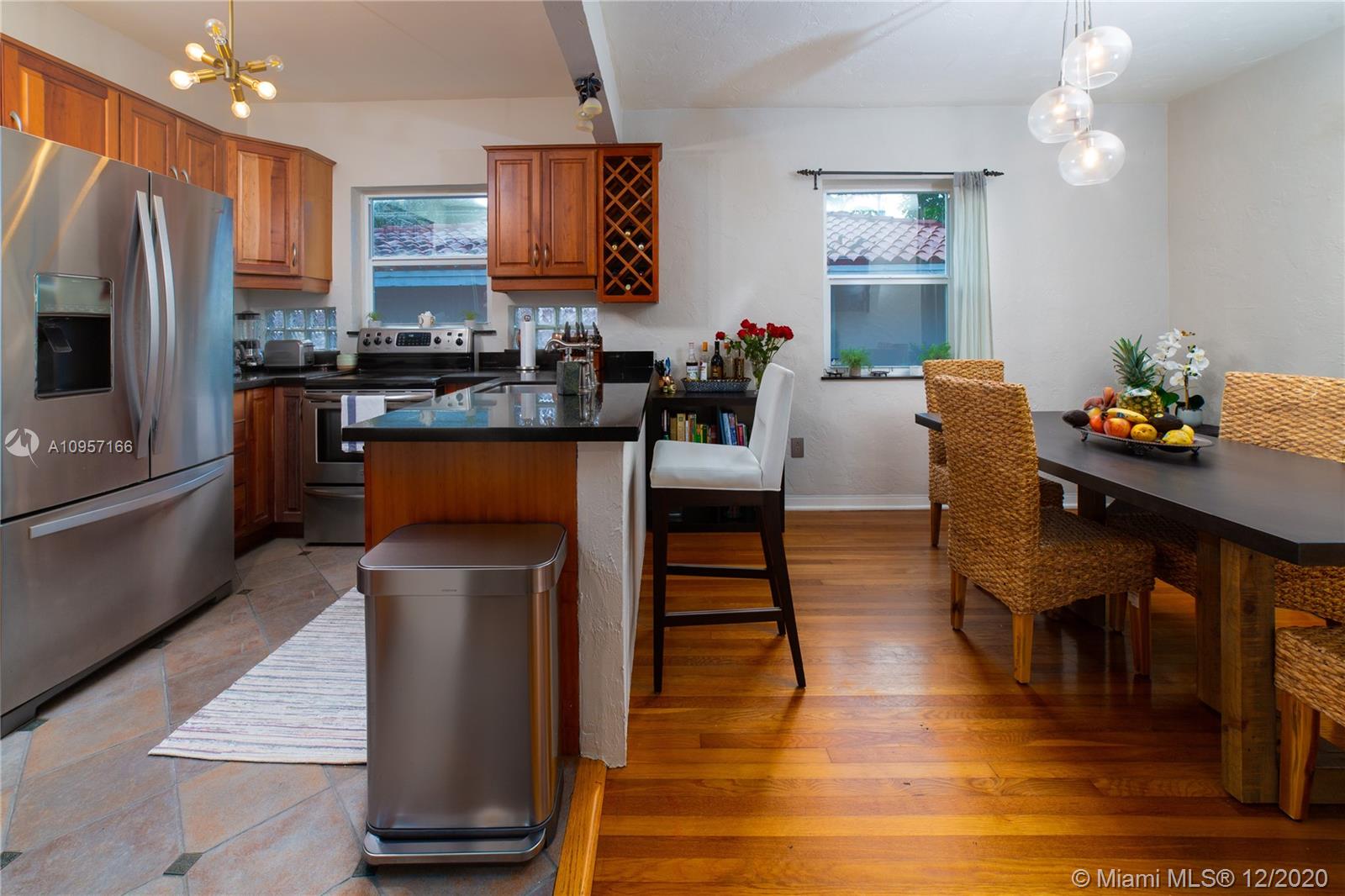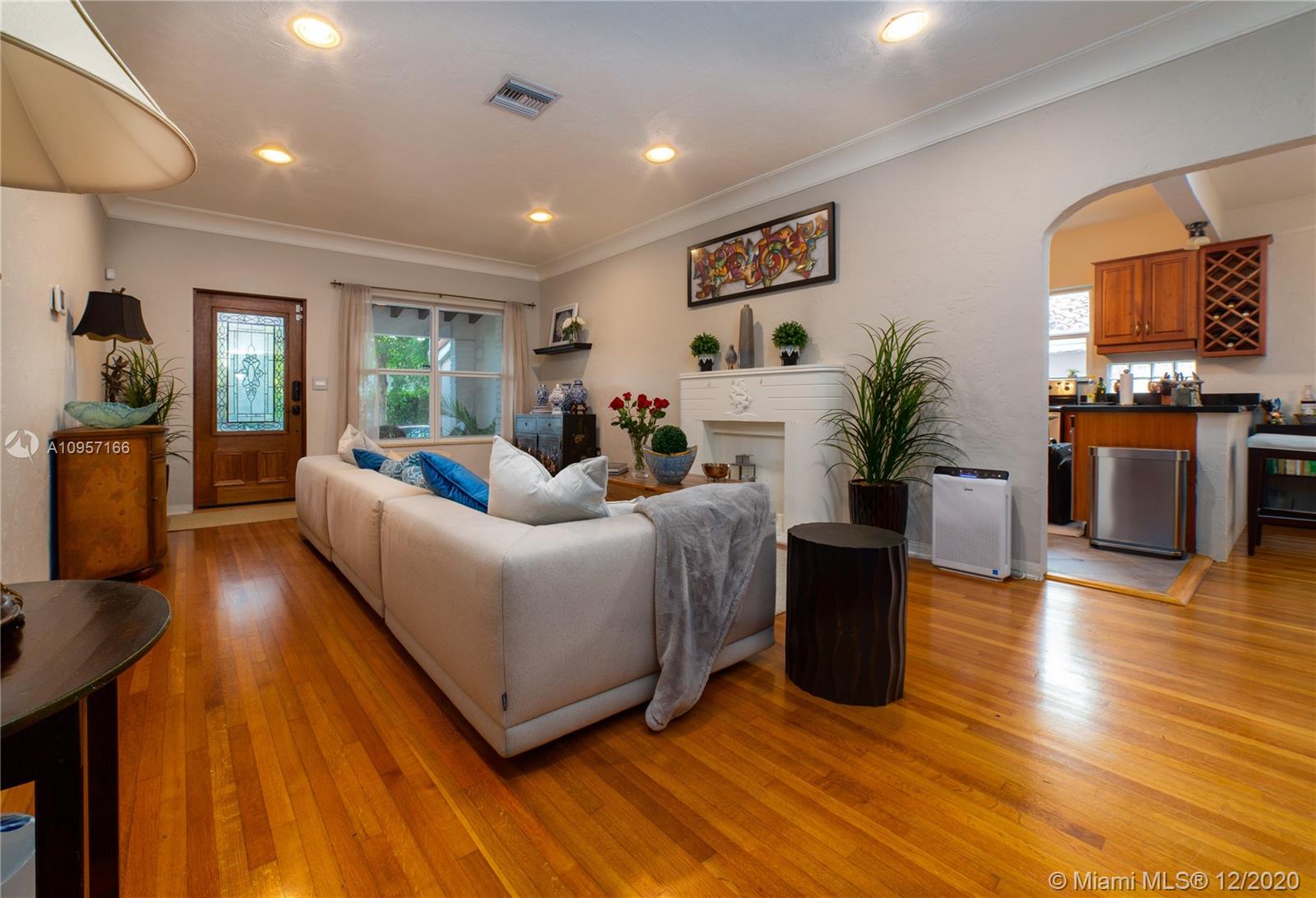 Vintage Coral Gables gets a charming contemporary makeover in this two bedrooms and two bath spacious home tastefully remodeled with newer roof and impact windows. All wood floors throughout add contemporary appeal to the well distributed floor plane featuring spacious living room, den with view to the garden, and formal dining perfectly located to interact with the updated open kitchen with granite countertops and stainless steel appliances. The enclosed private backyard is enhanced with mature trees, and a nice cover terrace perfect entertain family and friends. Double height car garage with lots of storage space. This inviting home nests on a beautiful tree-lined street in the prime of Coral Gables, close to all the shopping, dining, and all Florida lifestyle conveniences you desire.