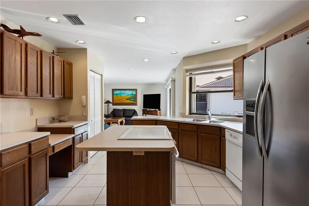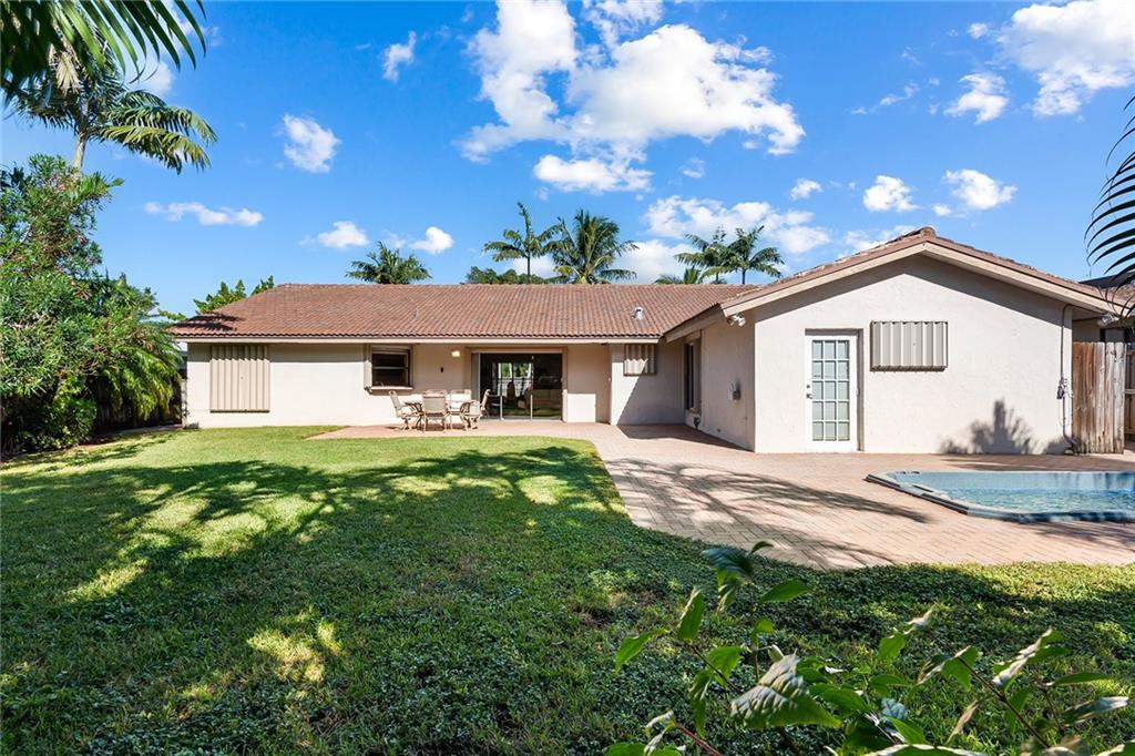 Once inside the coded front gate you'll immediately feel the ULTRA privacy of this property affords! Well built 4 bdrm/2 bath home has a superb floor plan & awaits your cosmetic touches!! Grand living/family room, large eat-in-kitchen, formal dining room, laundry room & oversized 2 car garage. A private hallway leads to the master bdrm w/walk-in closet & ensuite cabana bath; 3 additional bedrooms share a large common bathroom. 4th bedroom currently used as an office/den & has lovely French door entry. The spacious & welcoming kitchen is easily accessed by laundry room, garage & backyard. The HUGE fully fenced property has an inground hot tub, spinkler system, mature foliage & lovely green space! Paver driveway, walks & patio complete this compound. 2002 Barrel roof/Accordion Shutters /ADT