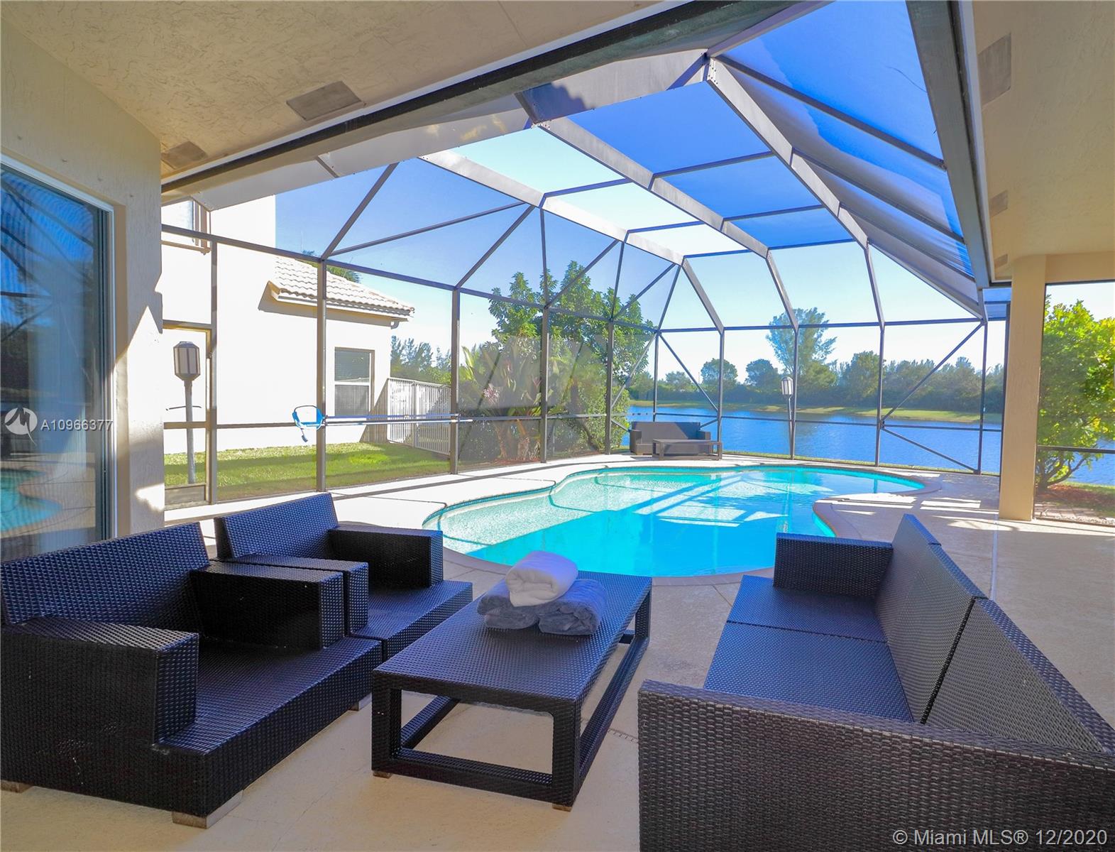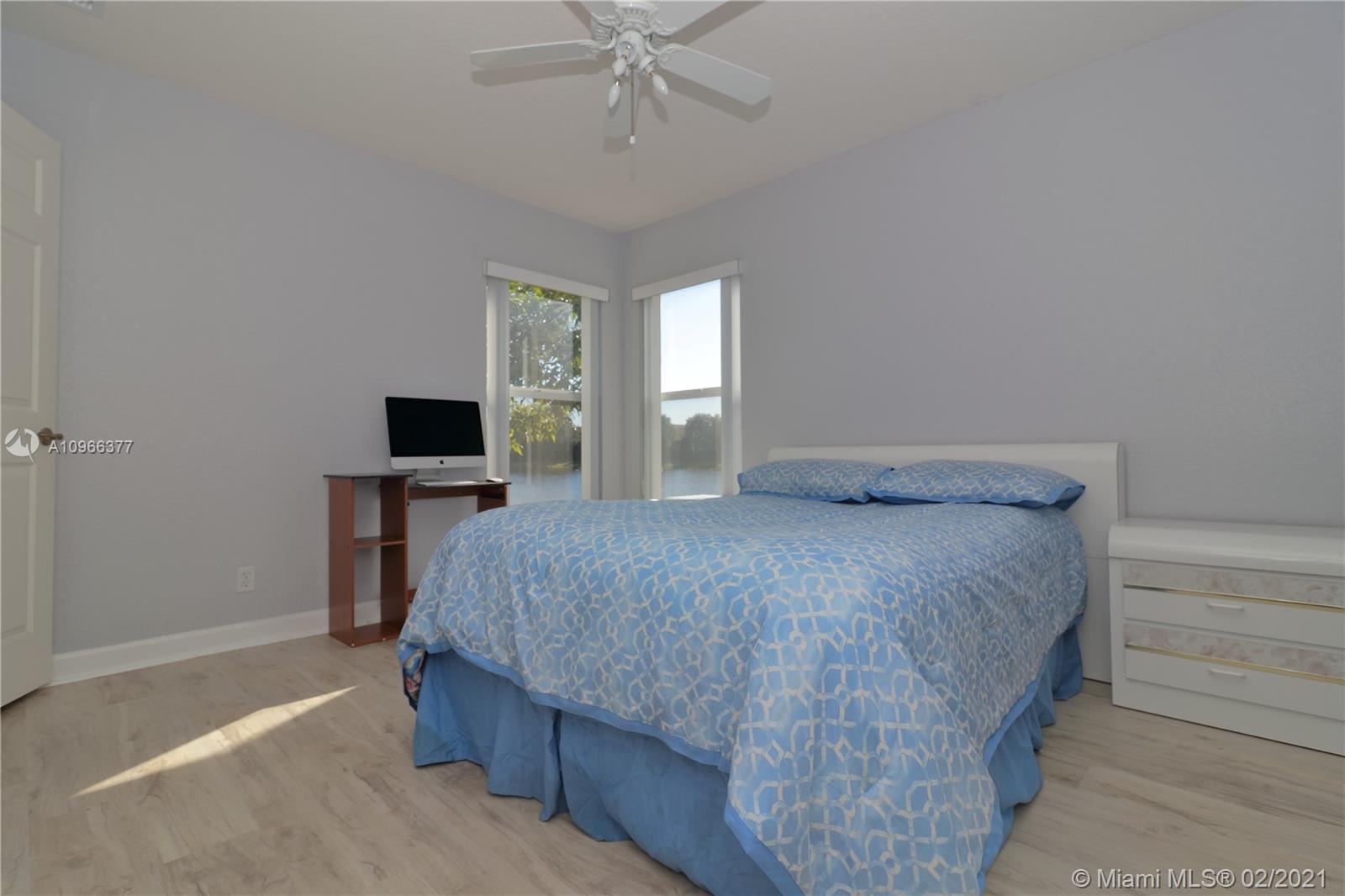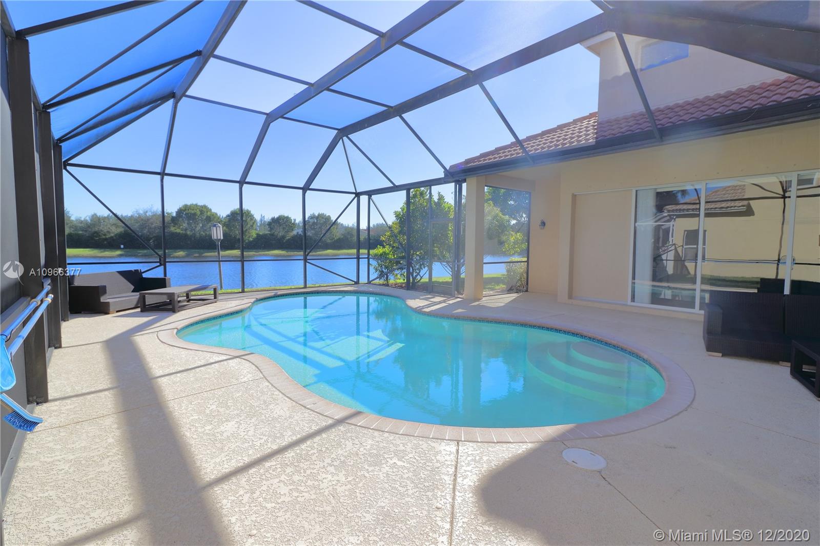 Enjoy this WATERFRONT home from sunrise to sunset with your private private pool. This picturesque and tranquil scene can be viewed directly from the living room, master bedroom, breakfast nook, and great room. The kitchen features center island, granite counter tops wood cabinets, under mount sink, stainless steel appliances and faucet. The master bedroom is on the first floor with view of the pool and pond. The second floor features a double loft perfect for an office and play area. All bedrooms have new premium laminate floor. This home has new exterior paint.