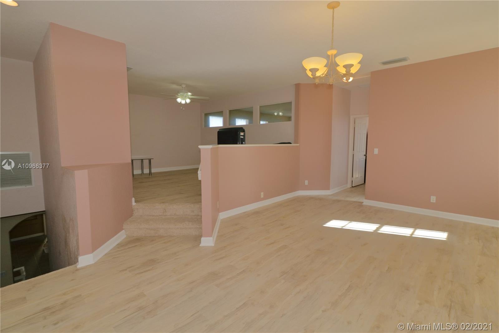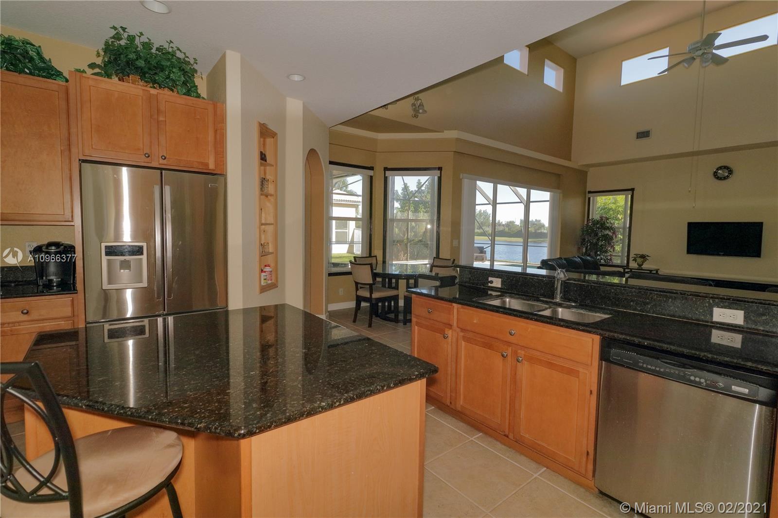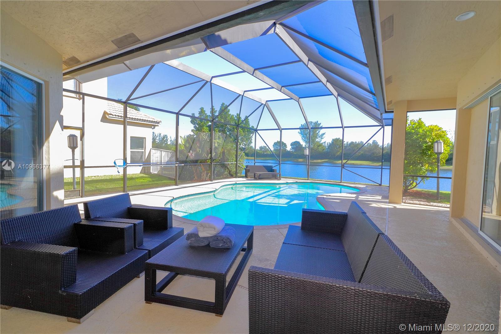 Enjoy this WATERFRONT home from sunrise to sunset with your private private pool. This picturesque and tranquil scene can be viewed directly from the living room, master bedroom, breakfast nook, and great room. The kitchen features center island, granite counter tops wood cabinets, under mount sink, stainless steel appliances and faucet. The master bedroom is on the first floor with view of the pool and pond. The second floor features a double loft perfect for an office and play area. All bedrooms have new premium laminate floor. This home has new exterior paint.