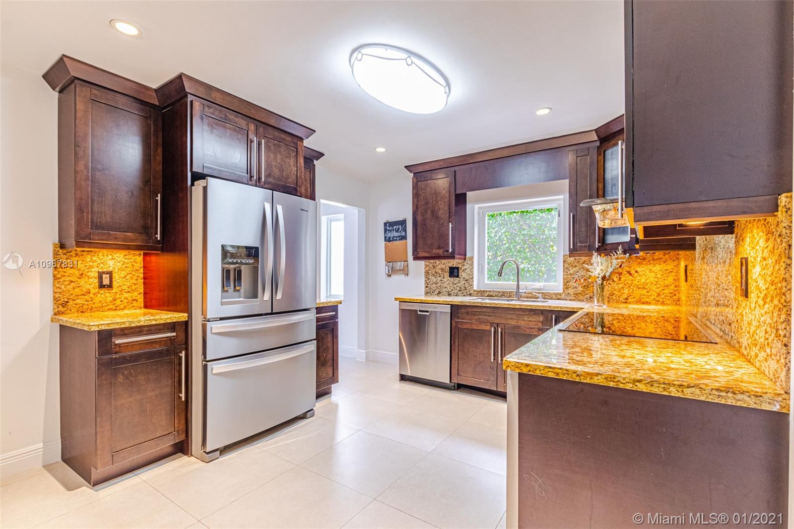 This charming home is located on a quiet tree-lined street and is close to Riviera Country Club, the University of Miami, and the Biltmore Hotel. This updated home has Wedgewood kitchen cabinets with a granite countertop & backsplash, stainless steel appliances ( new refrigerator) . Roof and impact windows are 4-5 years old. A cozy deck for entertainment. A 2-car garage and a deep driveway complete this attractive residence. The interior of the home comes with 24" Italian porcelain tile on first floor & restored oak hardwood floors on the second floor. Impeccably-kept home. 4 Bedrooms/3Baths