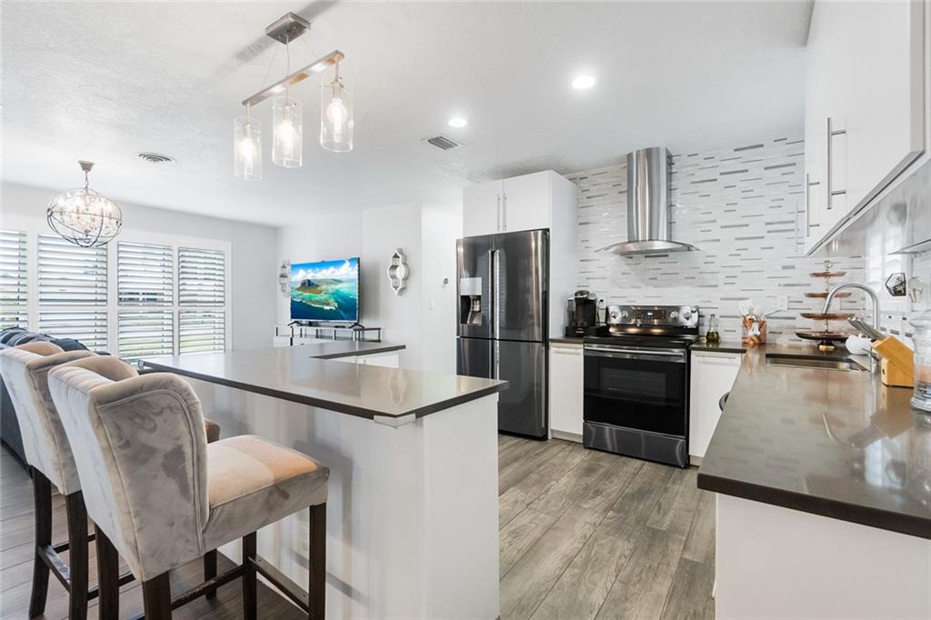 Beautifully renovated home in the highly sought out neighborhood of Imperial Point. This chic home features High Impact windows and doors throughout the entire house as well as a new impact rated front door. Porcelain wood plank flooring and 24 x 24 porcelain tiles in the bedrooms, bathrooms and laundry/storage room. Both bedrooms feature new custom built out closets for high-end maximum storage. Modern kitchen with quartz countertop and new black stainless steel appliances with counter to ceiling backsplash! No expense spared in this house and wait until you see the MASSIVE backyard with modern feature patio and pergola. House encased with new white PVC fence. Seriously run- don't walk.