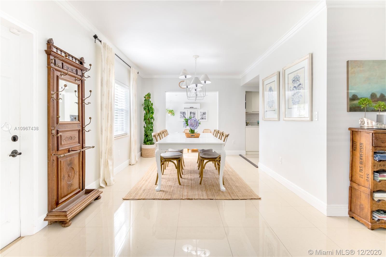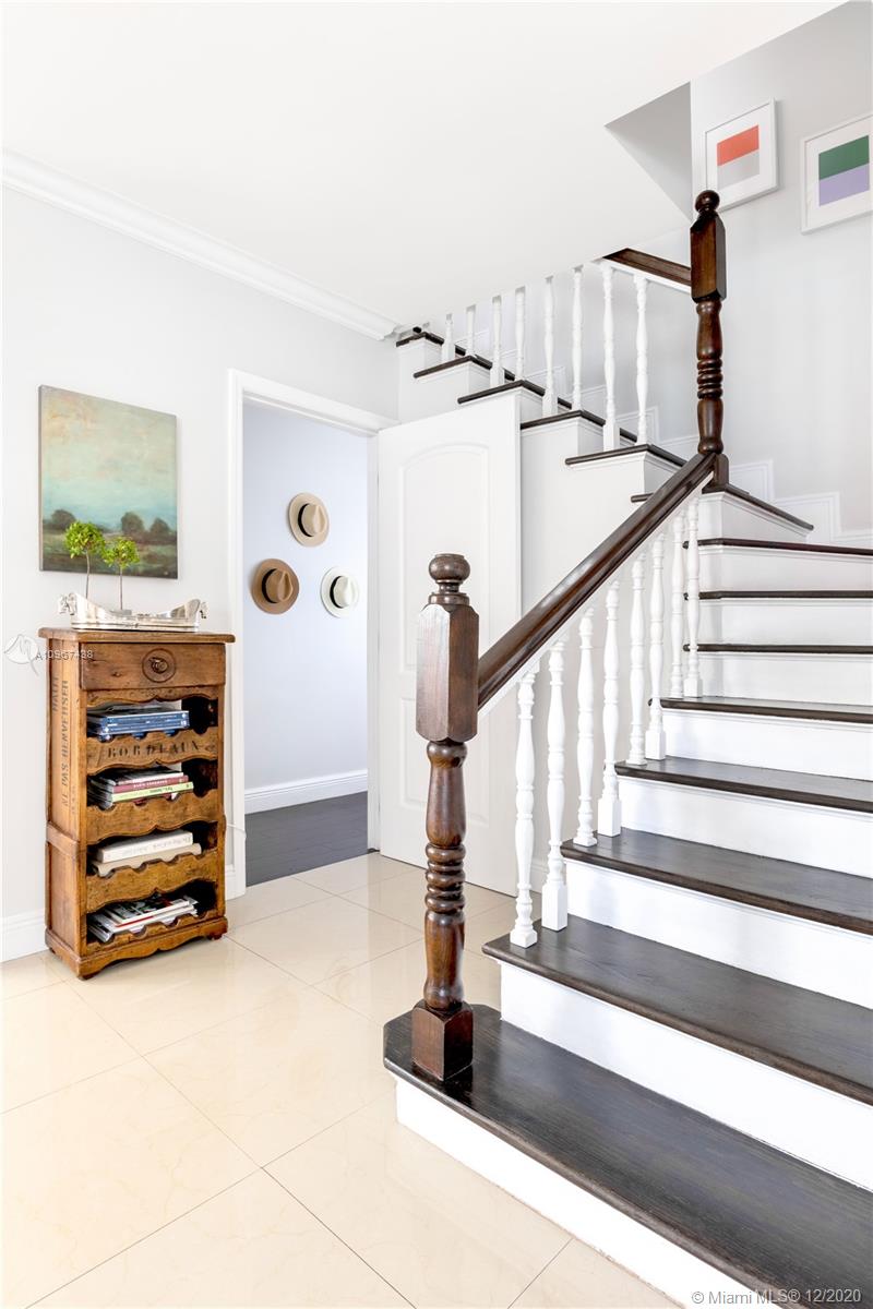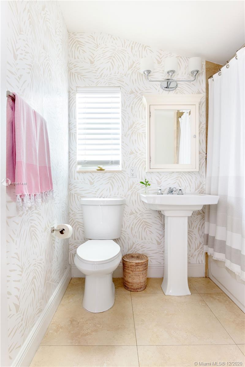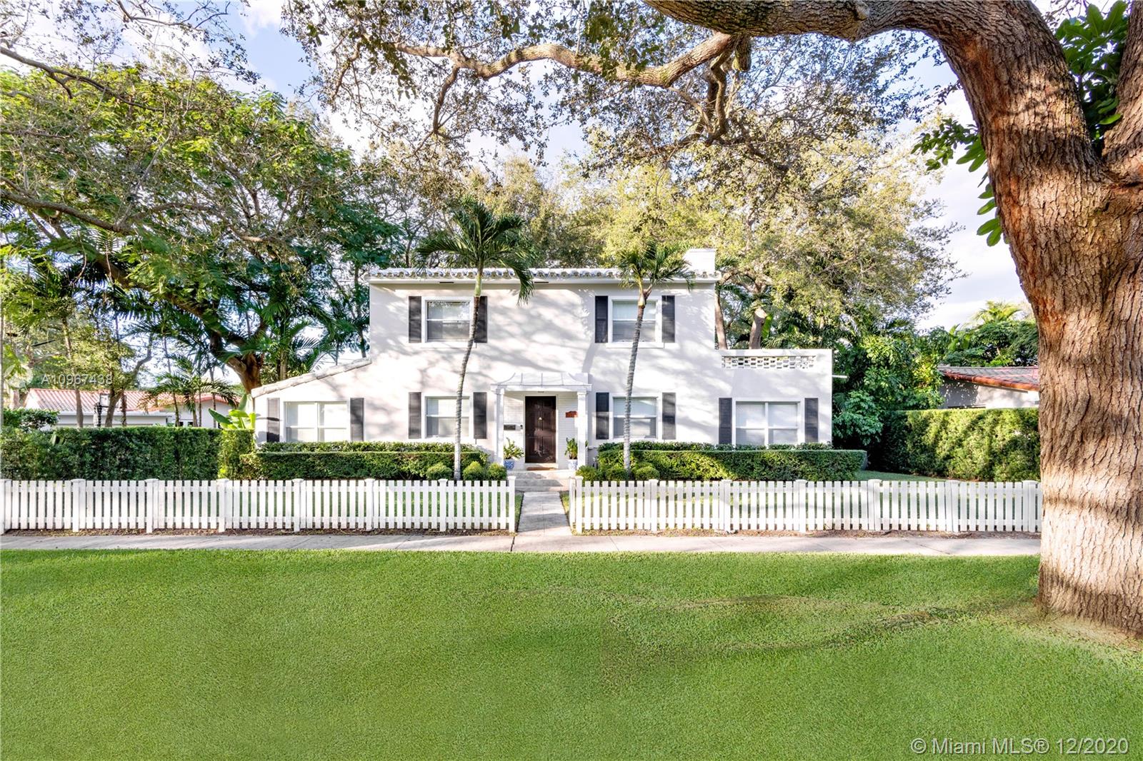 One of the most charming houses in Miami Shores. This two-story home, built in 1938, is nestled under 200-year-old oaks and has an inviting, traditional feel, yet all the modern luxuries. Lush and meticulous landscaping provides privacy and shade to the different outdoor living spaces, including an upstairs bedroom veranda. Light flows into every room, highlighting the original features of the home. The master bedroom, nursery or office, and living room open to a magnificent courtyard with space for entertaining or a future pool. The detached two-car garage has a full bathroom, which makes it a great space for an office. This quiet street is a short walk from downtown Miami Shores.