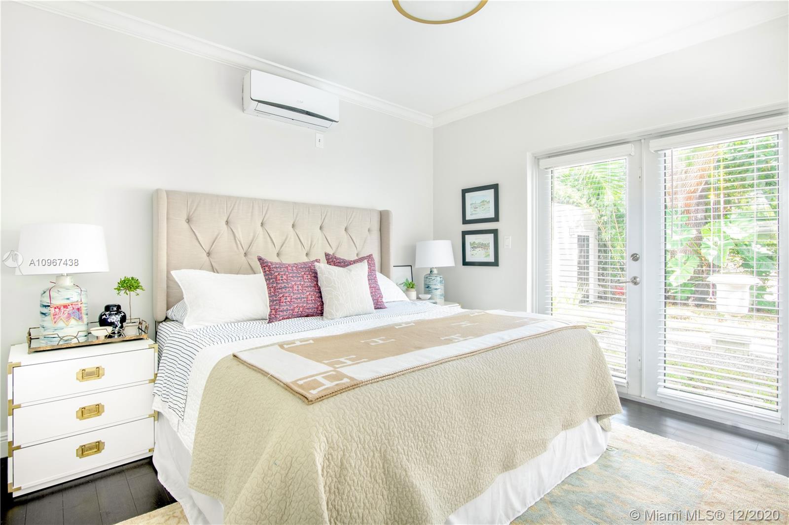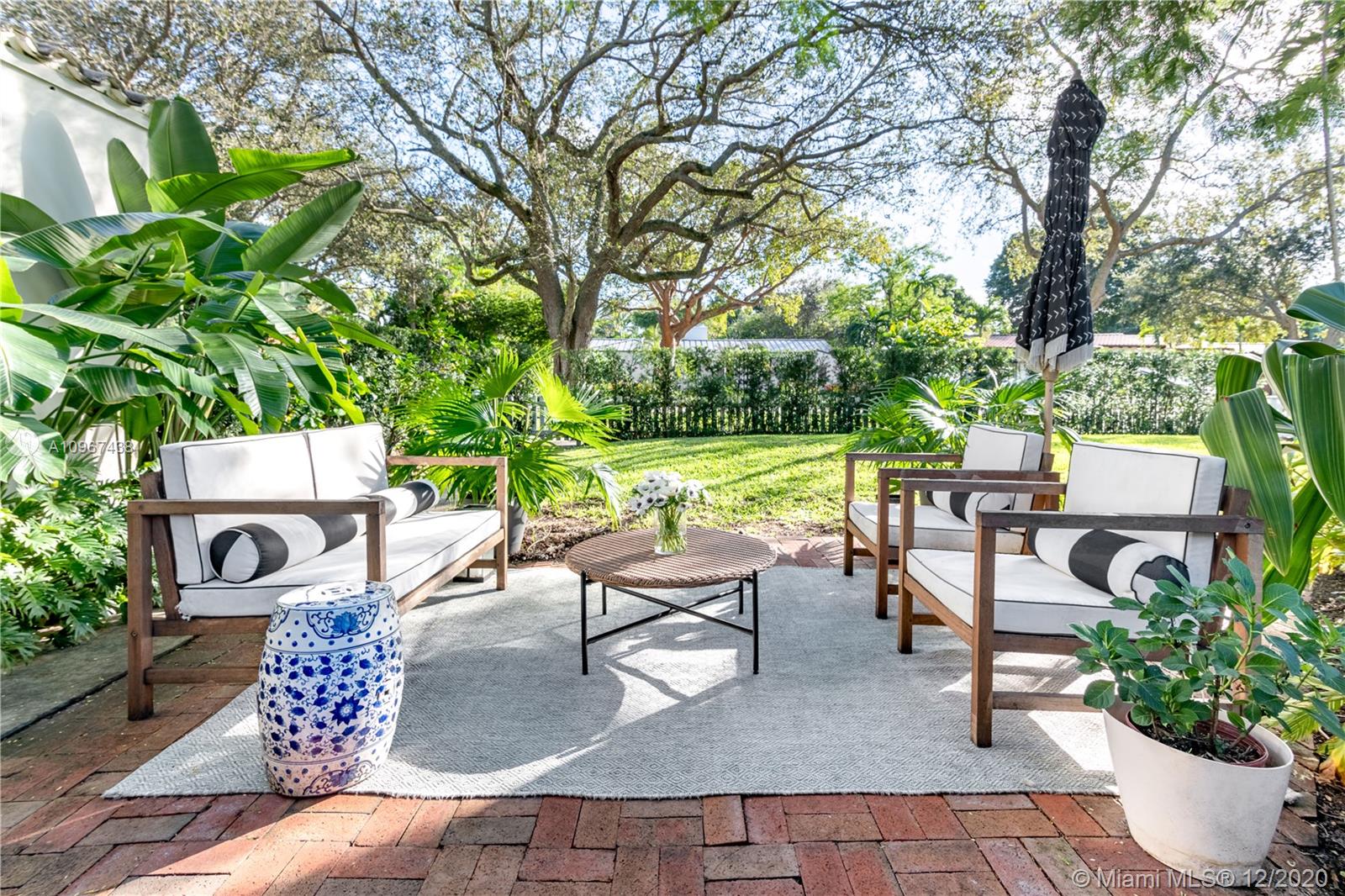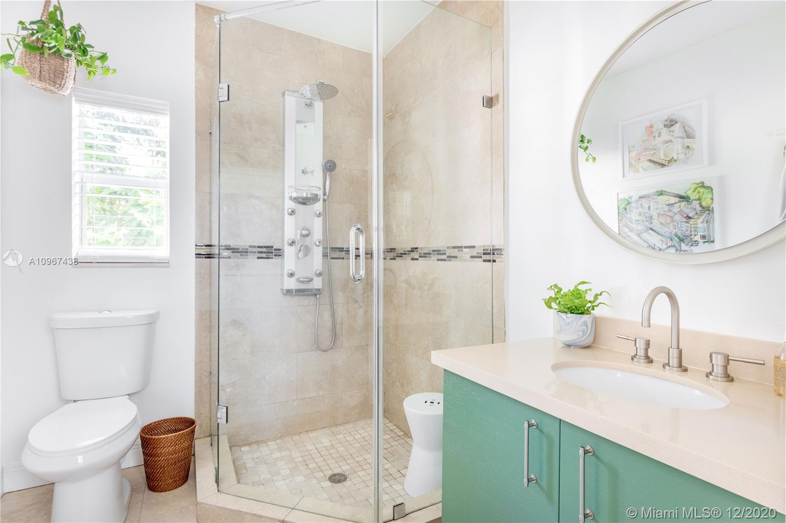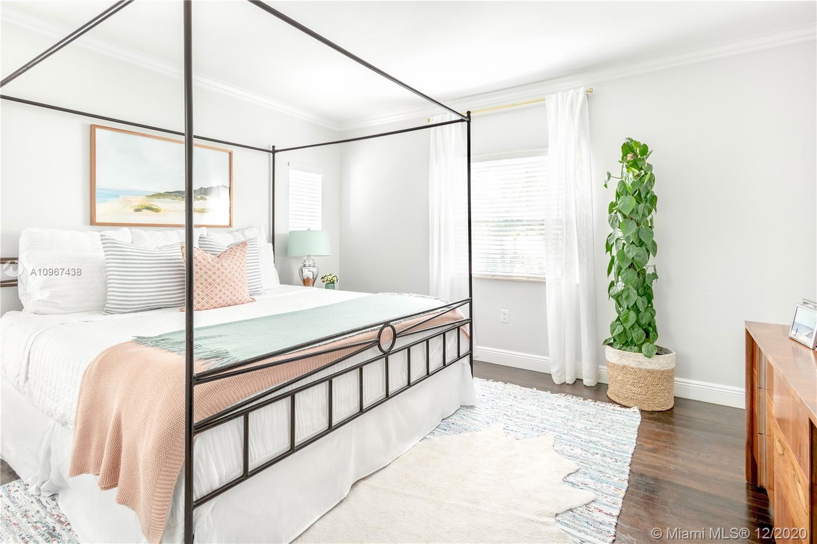 One of the most charming houses in Miami Shores. This two-story home, built in 1938, is nestled under 200-year-old oaks and has an inviting, traditional feel, yet all the modern luxuries. Lush and meticulous landscaping provides privacy and shade to the different outdoor living spaces, including an upstairs bedroom veranda. Light flows into every room, highlighting the original features of the home. The master bedroom, nursery or office, and living room open to a magnificent courtyard with space for entertaining or a future pool. The detached two-car garage has a full bathroom, which makes it a great space for an office. This quiet street is a short walk from downtown Miami Shores.
