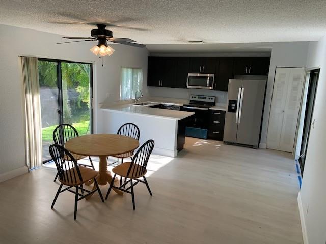 Located on the water in the beautiful community of Lago West. Nice views of the waterway and golf course from the master suite. This home has been completely updated throughout. The kitchen features Expresso solid wood cabinets w/white quartz counter tops and 4" backsplash, All new S/S recessed sink and plumbing, new S/S electric range, dishwasher and microwave. The refrigerator has ice/water in the door. Unit is freshly painted throughout and has brand new laminate flooring (NO carpet), both bathrooms have been completely remodeled (new tub, shower pan and wall/floor tiles, new barn door vanities, new comfort height toilets and light fixtures). Full size washer & dryer in laundry area. New wood deck in the private fenced area. 2 pets OK. 2 deeded spaces. A must see