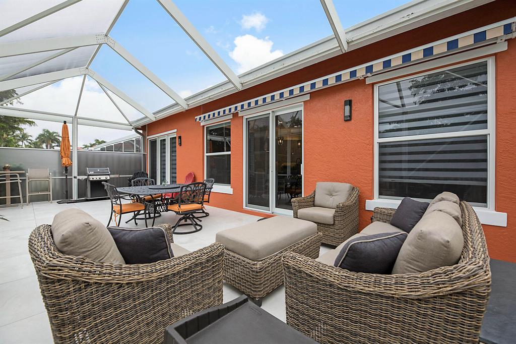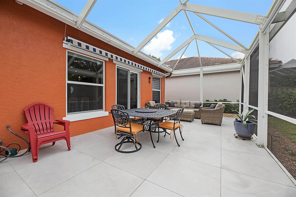 Move in ready. Beautiful classy and comfortable remodeled home. Split floorpan. 3 bedrooms + den/office. 30'' ceramic tile throughout the entire home. Granite counters. Full granite backsplash. 8' kitchen island. 42'' cabinets. LG Cafe appliances. Master bath is an oasis. Double vanities. Walk in shower with floor to ceiling tile and glass accents. Two shower heads + hand held w/ push button controls. Master closet with built ins. New HVAC with UV light. New H20 heater. Fully screened back patio with 23' retractable awning.. Hurricane impact windows and sliders on back of home. Private, tropical yard. Great proximity to the clubhouse. Low maintenance. Ibis has a mandatory minimum 50k membership. See document section for details.