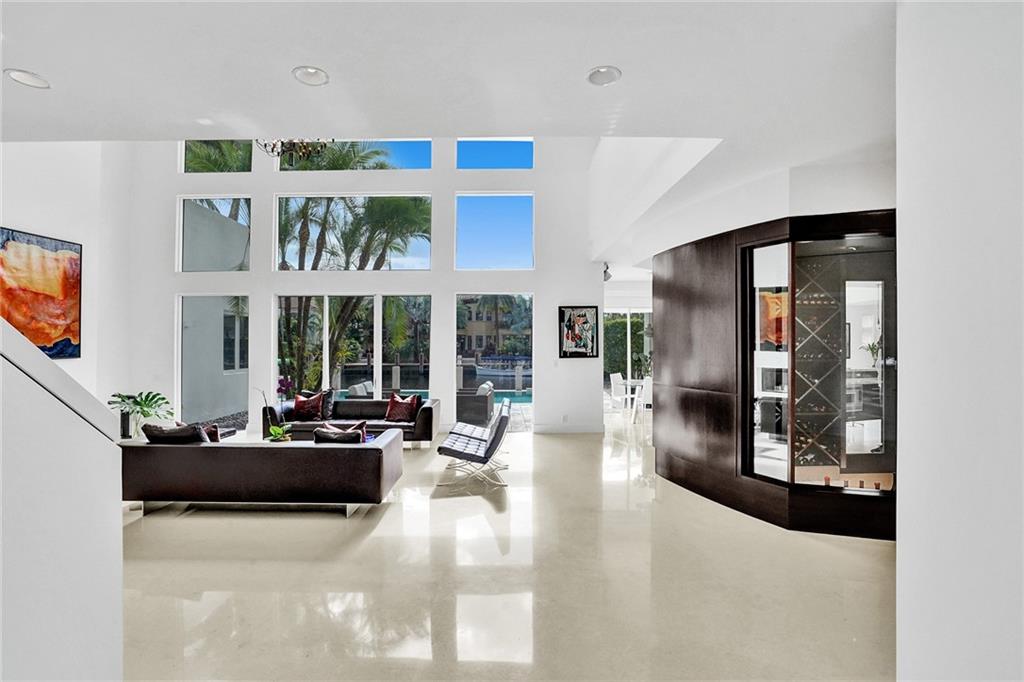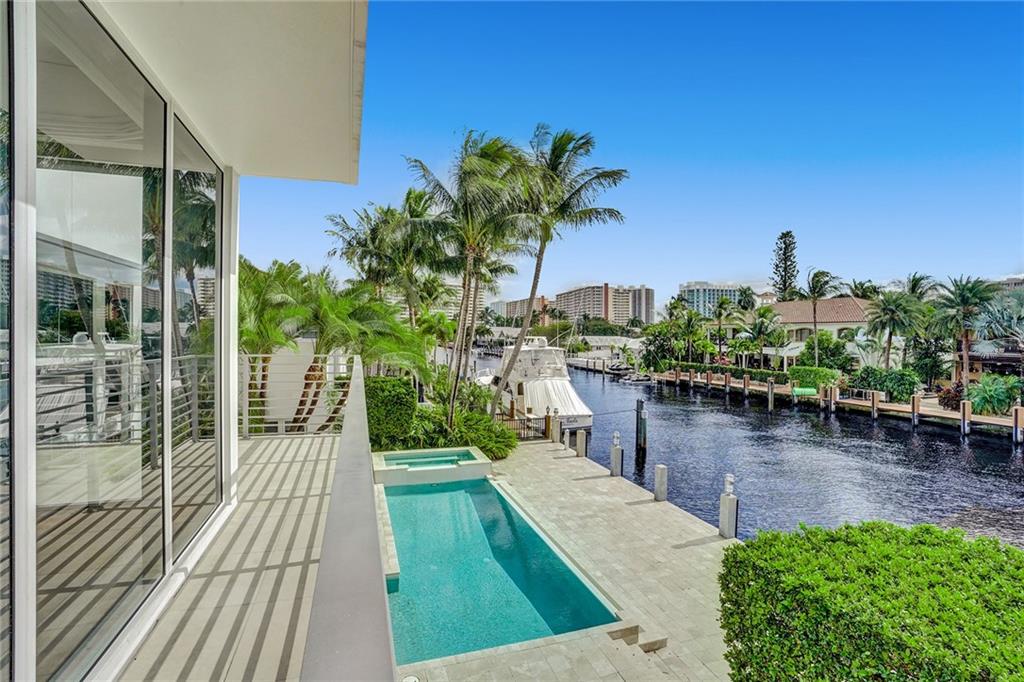Stunning 5 bedroom waterfront estate in Coral Ridge Country Club. 100’ waterfront on a wide waterway (115’ across) with no fixed bridges and ocean access. Gourmet kitchen with gas range, wine cellar, volume ceilings in living room, impact windows and doors, marble flooring on the first floor and wood flooring upstairs, recessed lighting and more. Upstairs master suite features two walk-in closets, spa like bath and expansive patio with tranquil water views. All bedrooms en-suite (2 bedrooms on first floor including junior master). Outdoor living with pool, spa, summer kitchen and 100’ concrete dock. Southern exposure for the best breezes and sun.