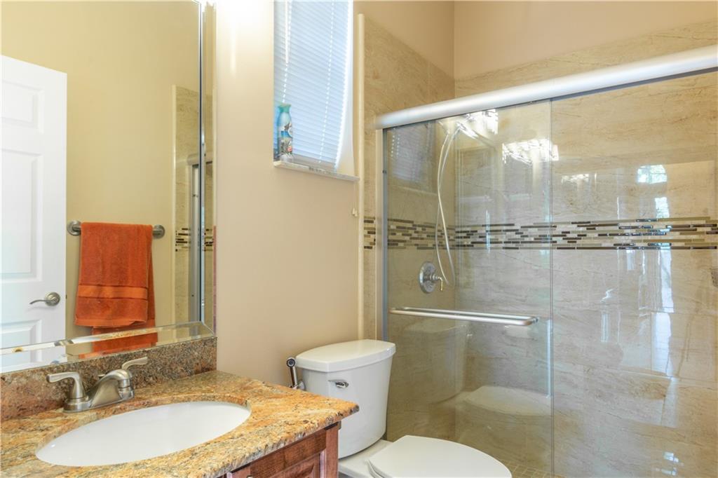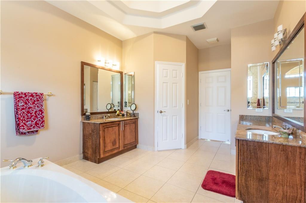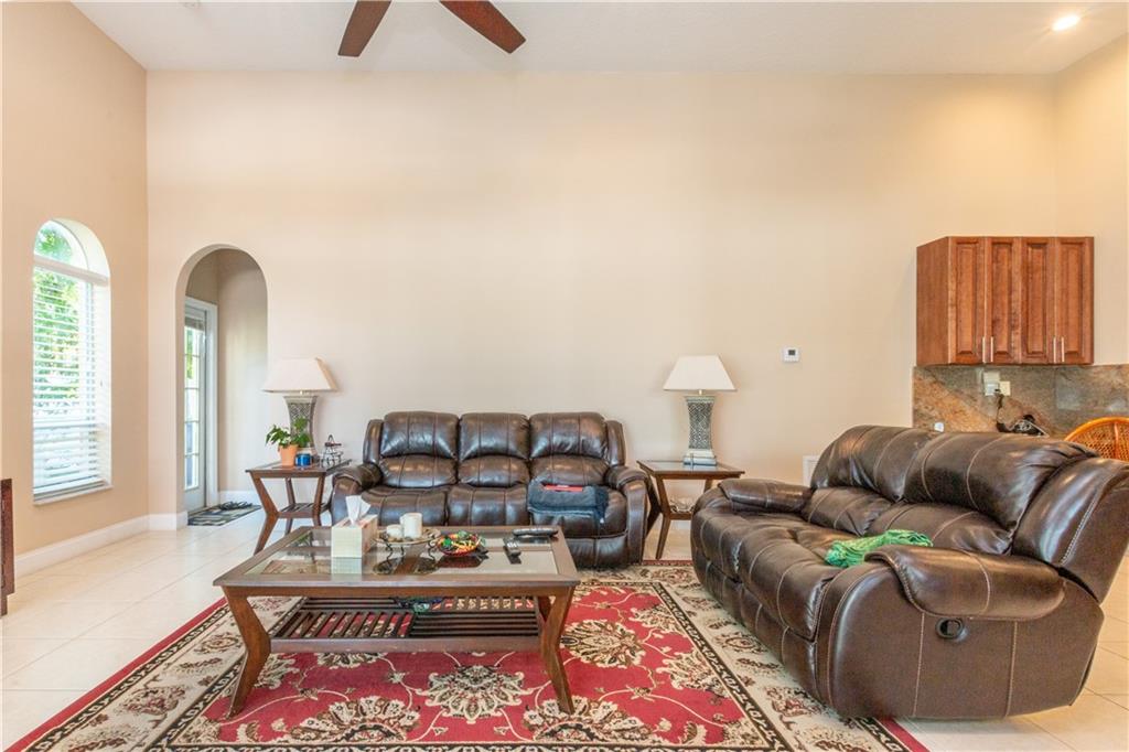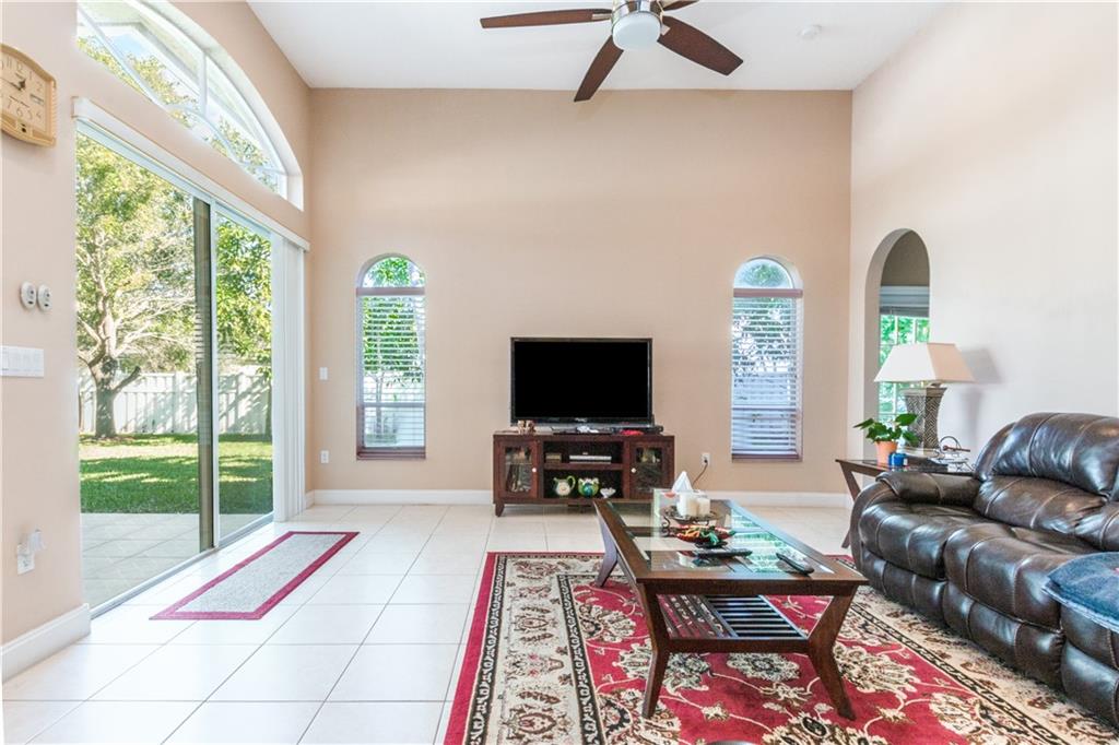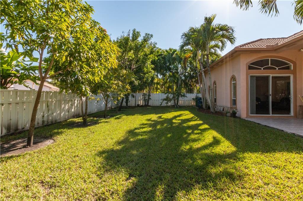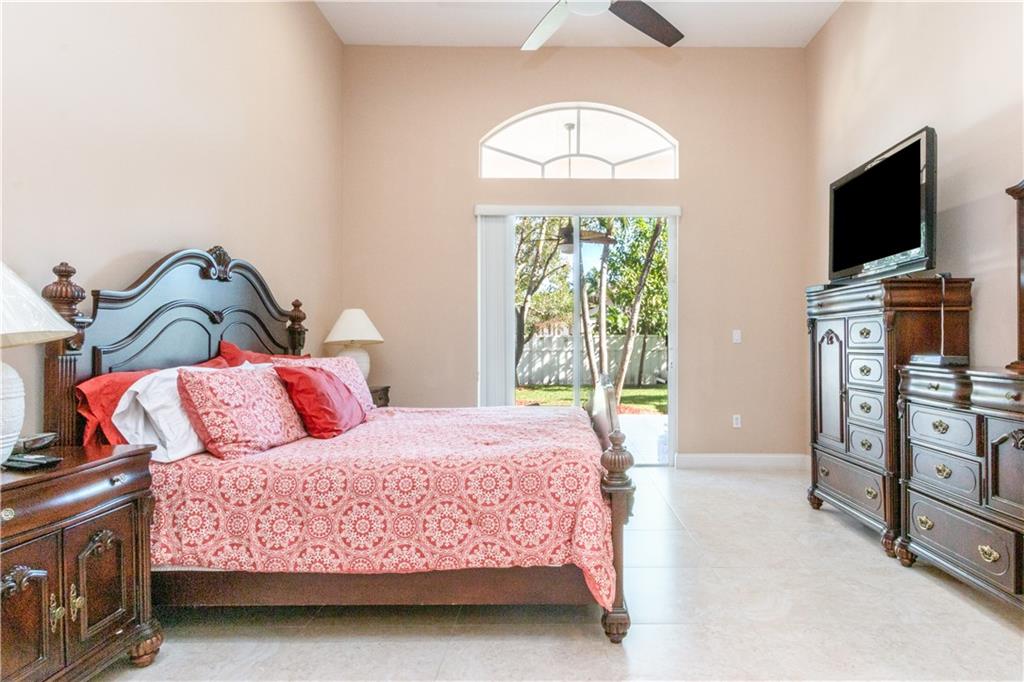 Resort style living in this upgraded 4/3 +den home in Pembroke Falls. Large & comfortable. 4th bedroom is a full guest/in-law suite with private bathroom. Natural light permeates throughout. This beauty is on oversized 1/4 acre lot w/ huge PVC fenced-in yard & plenty of room for pool, BBQ, or fun entertainment. Features a big covered terrace & fruit trees in back for relaxing & enjoyment. Features upgraded kitchen with granite countertops, stainless steel appliances and open concept. Gas range. Includes newer Samsung washer & dryer. 3 full Bathrooms also upgraded w/ new showers, granite top vanities, hardware, & fixtures. Flooring is tile throughout the house (no carpets here). Large circular driveway w/ space for at least 6 cars or more. HOA incl Internet, Catv & alarm