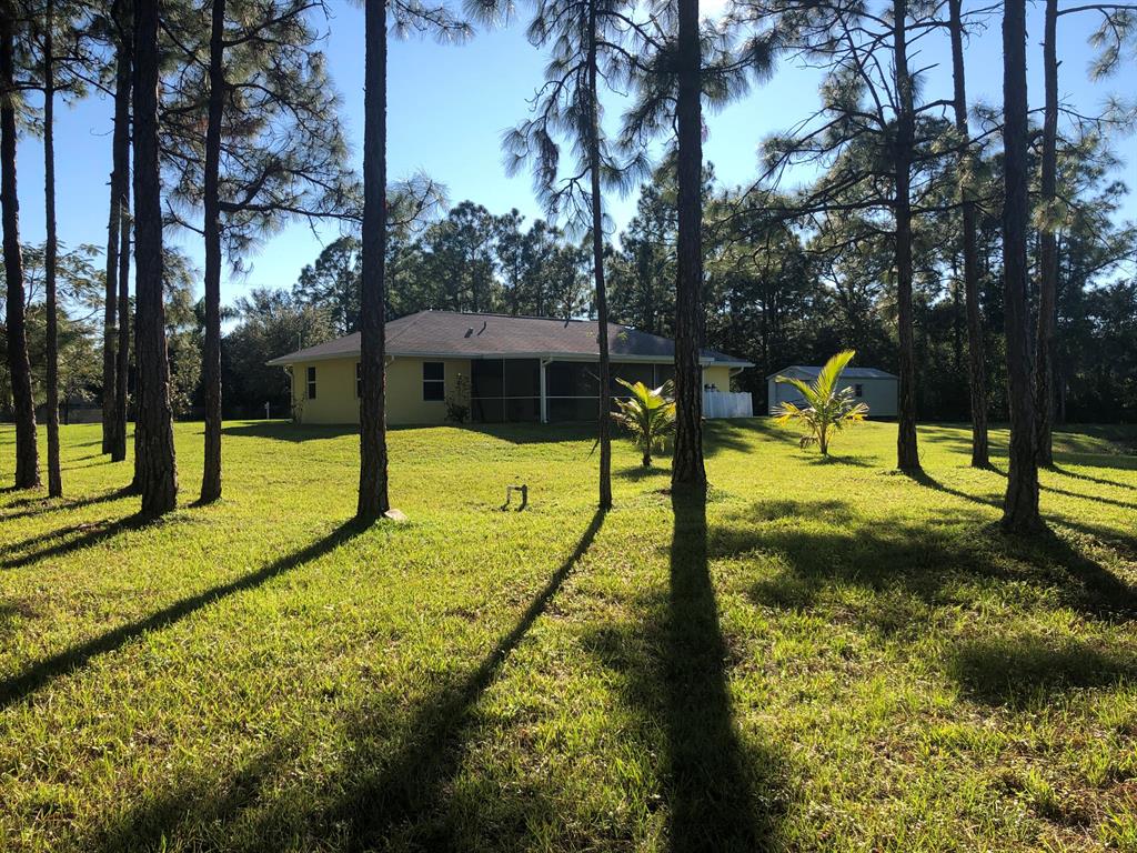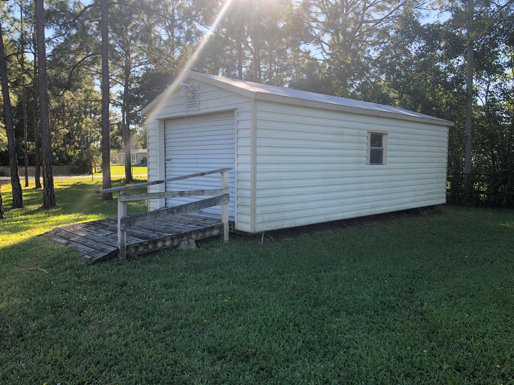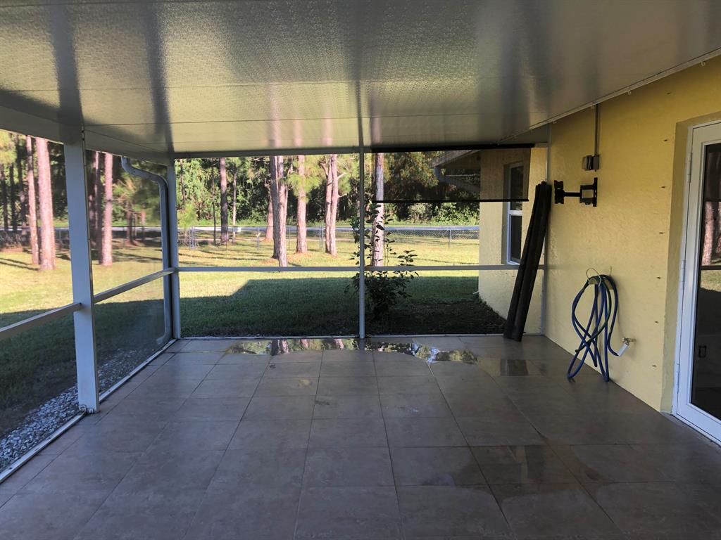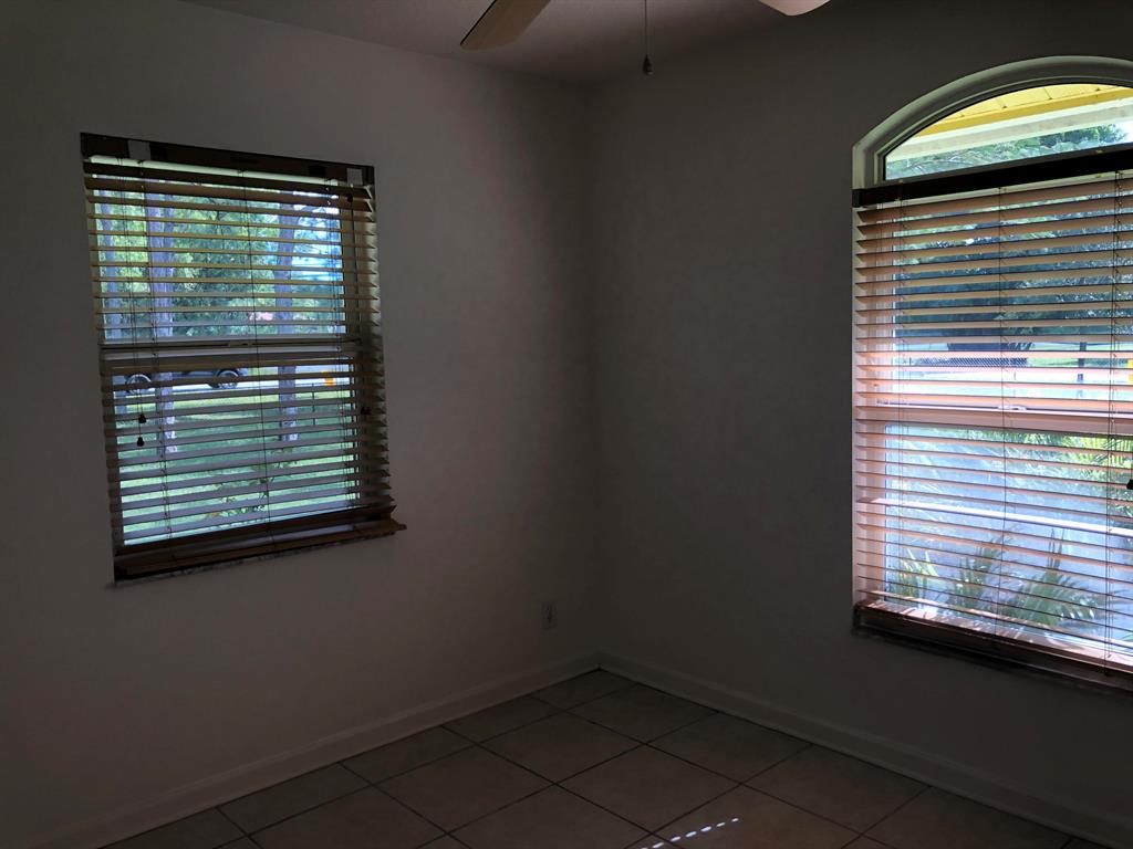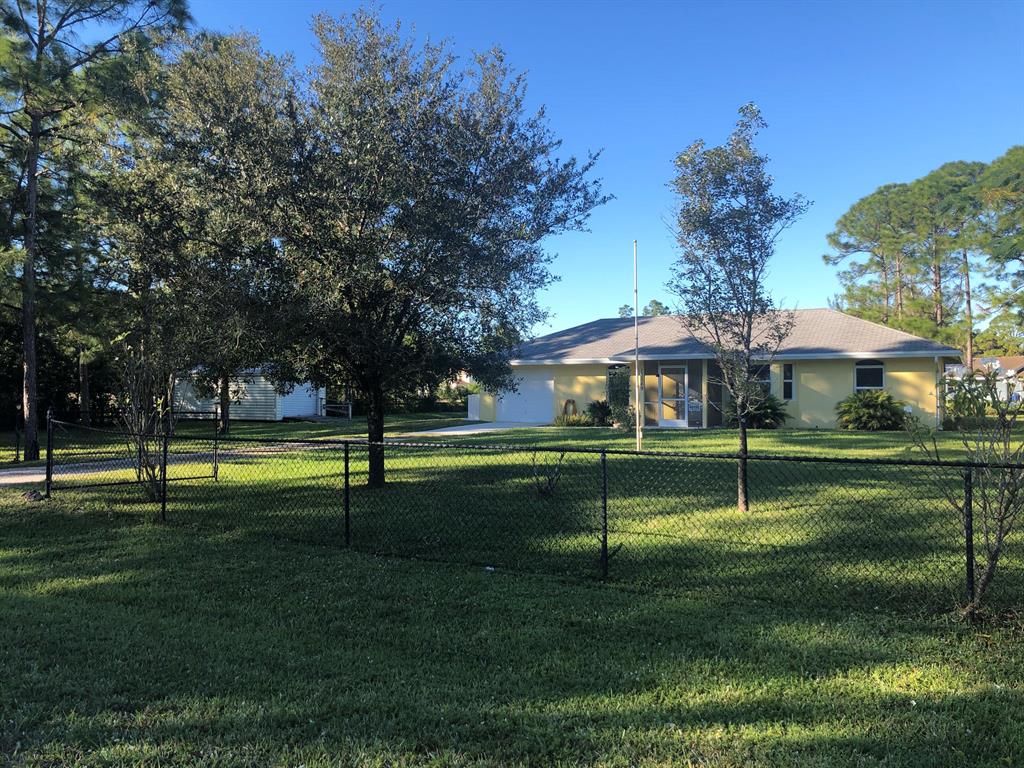 Fabulous CBS home on corner paved road! Kitchen & Baths renovated 2012-2013 with Wood Cabinets & Granite Counters. Windows are Hurricane Impact including French Doors & Front Door which also has built in blinds. Living room has a Bay Window with wood blinds. Owner's Suite includes walk in closet, wood blinds, ceiling fan & step in shower. Both guest rooms have 2 windows each, ceiling fans & walk up closets. Guest bath offers a combo tub/shower. Split floor plan, vaulted ceilings in Great Room & Owner's Suite. Garage has a built-in workbench, pull down attic stairs & automatic opener. Fully fenced with 3 sides chain link which is owned by this property. 23' X 11' Shed with power & ramp. 24' X 14' screened patio off the kitchen & french doors. Sprinkler system. Agent is related to seller.