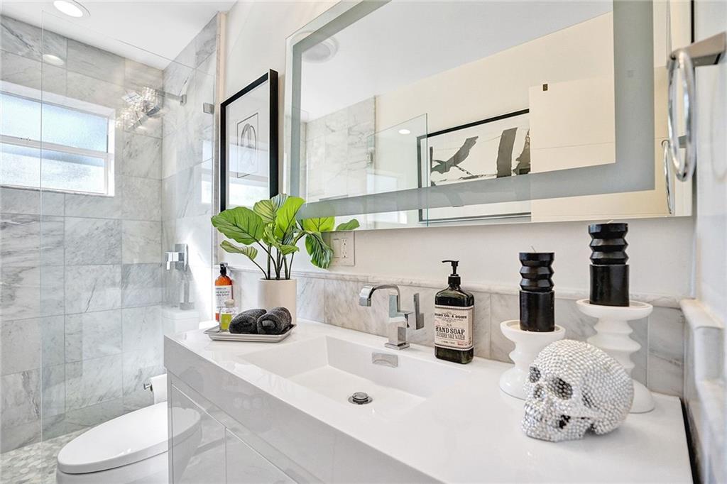 Absolutely stunning fully remodeled home in Coral Shores, one of East Fort Lauderdale's most desirable neighborhoods! This gorgeous home boasts a contemporary open floor plan with tons of windows and natural light. It's designer finishes include light grey wood-look porcelain tile throughout, distinctive quartz tops with glass subway tile backsplash, white shaker cabinetry, over-sized island, Italian-imported laminate lacquer bathroom vanities, marble showers & frameless glass doors! The fully fenced backyard and pool area is lined with mature landscaping, offering complete privacy. Coral Shores is a small secluded community surrounded on three sides by water. This incredible location is a mile to the beach with easy access to 95 and minutes to shops, restaurants and Wilton Drive.