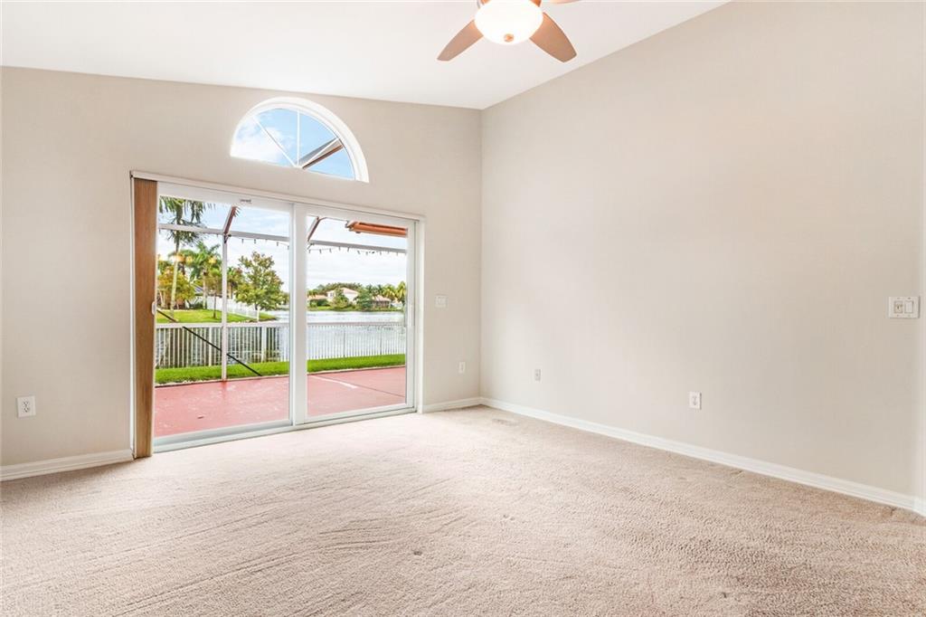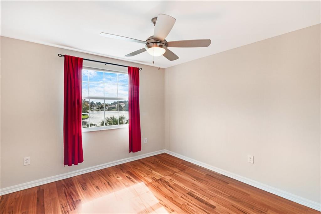 Rare opportunity. Waterfront home with gorgeous wide lake views in a popular community. Newer roof, A/C, water heater. Newer exterior and new interior paint. Whole house generator. Hurricane impact windows and sliders. Open and beautifully renovated kitchen with stainless steel appliances. All bathrooms beautifully updated with fixtures and tile. Brazilian SOI solid wood (tigerwood) floors on staircase and upper level. Master on the main level with lake views and impact sliders. The fourth bonus room may be used as den, office, library or craft room. Family and living room. Lovingly maintained and taken care of. Good school neighborhood. Fully screen large back patio. Low HOA fee. Close to parks, shopping, entertainment and much more.