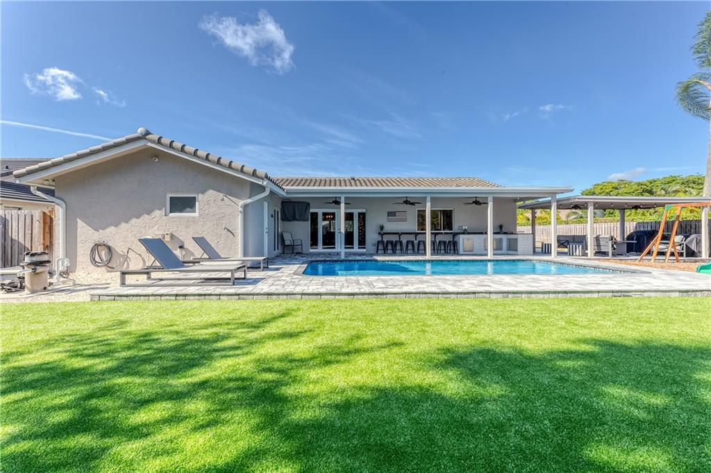 Enjoy this Show Stopping corner lot home in the heart of Boca Raton. This farmhouse style home has been renovated from top to bottom & boasts lots of custom details. Open concept living makes this home and entertainers dreams! The beautiful chef's kitchen offers grey wood cabinets, Samsung appliances, Quartz counters, double ovens & Marble hexagon backsplash. Each bedroom is spacious & has custom built-in closets. This home has been renovated down to the studs & has been fully rewired, has a new roof, impact windows & doors, new duct work & AC, insulation, new plumbing & more! Enjoy entertaining in this huge fenced backyard with 2 large covered patios, summer kitchen, new pavered patio & saltwater pool. The huge turf yard is perfect for playing & has massive side yard with double gates.