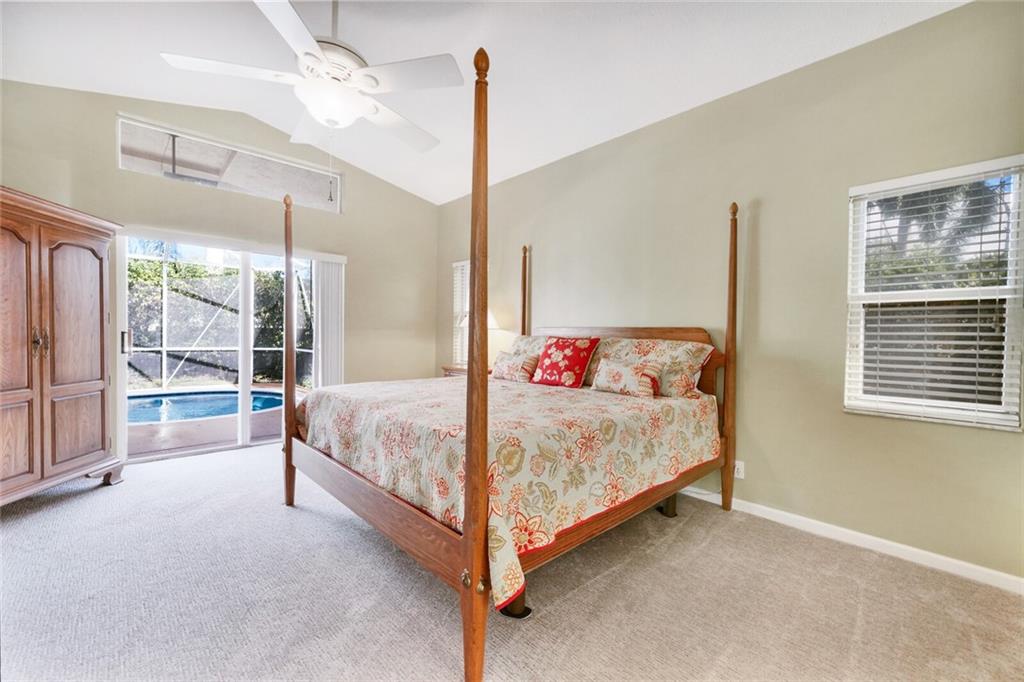 Move-in ready, well-appointed 4 bedroom, 3 bath pool home with split floor plan design – Bristol model – see floor plan in photos. Spacious and open. Upon entering, you immediately get a glimpse of the fun, screened-in pool area just beyond the living room. Brand new pool heater. Inviting kitchen with updated wood cabinetry, granite counters and stainless-steel appliances-open to family room. Large Master bedroom has vaulted ceilings, almost new carpet, two walk-in closets. All bathrooms upgraded 5 years ago. New washer and dryer in the Large laundry room equipped with sink and cabinets. Windows that get heavy sun have UV protection and/or tinting. Fenced backyard has a privacy hedge. Hurricane shutters. “A” rated school district. Owners are flexible on a closing date.