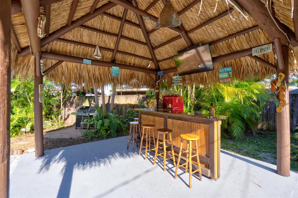 This private tropical oasis is an entertainer's paradise! Open floorplan includes 2 large bedrooms, a bonus room, 2 full baths, spacious living room, dining area, Florida room flooded in natural light, and a laundry room. The fully fenced, private backyard boasts a new tiki hut with a custom bar, pool, 12x10 shed, a pergola, and lush tropical landscaping with an automatic well-fed sprinkler system. The kitchen is equipped with granite countertops, tile backsplash, stainless steel Whirlpool refrigerator and stove, and a Bosch dishwasher. Just a few notable features include a new 4-ton Rheem AC (2019), new ductwork (2020), and an 8,398 SqFt lot with ample parking for a boat and RV. Located near restaurants, entertainment, and I-95, 595, 441 and the Turnpike for easy commuting. No HOA!