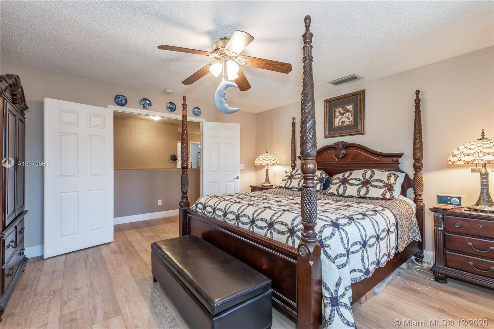Fabulous BIG Bel-Air model featuring 4 bedrooms & 2.5 baths. This pool home has lots of upgrades and features including remodeled kitchen with white cabinets and granite. Upgraded baths. Gorgeous plank laminate on stairs and 2nd floor, interior laundry and quaint breakfast area. Large master suite with sitting area. Enjoy hurricane protection and deep insurance discounts with complete accordion shutters, rated garage and front door. AC < 5 years and new Water Heater (all appliances have been replaced between 1 - 4 years) Large fenced lot with lots of room for garden, play and pets. Harmony Lakes is a terrific community located near shopping, highways and A rated schools. Recreation includes community pool, tennis and pavilion with beautiful lake views. Priced to sell!