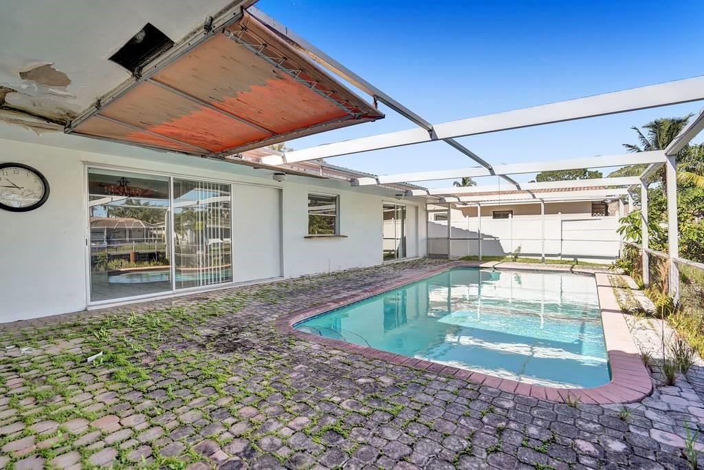 Waterfront pool home in Coral Ridge Isles, walking distance to Pine Crest School. Perfect for investor or renovation. Excellent potential and opportunity. House boasts 2058sf of living area, inclusive of 3BR/2BA/2CG, formal living and dining, eat in kitchen opens to patio, pool and waterfront. 75' waterfront, easy boat ride through neighborhood, four fixed bridges to intracoastal waterway. Limited showings, full price offers will be considered.