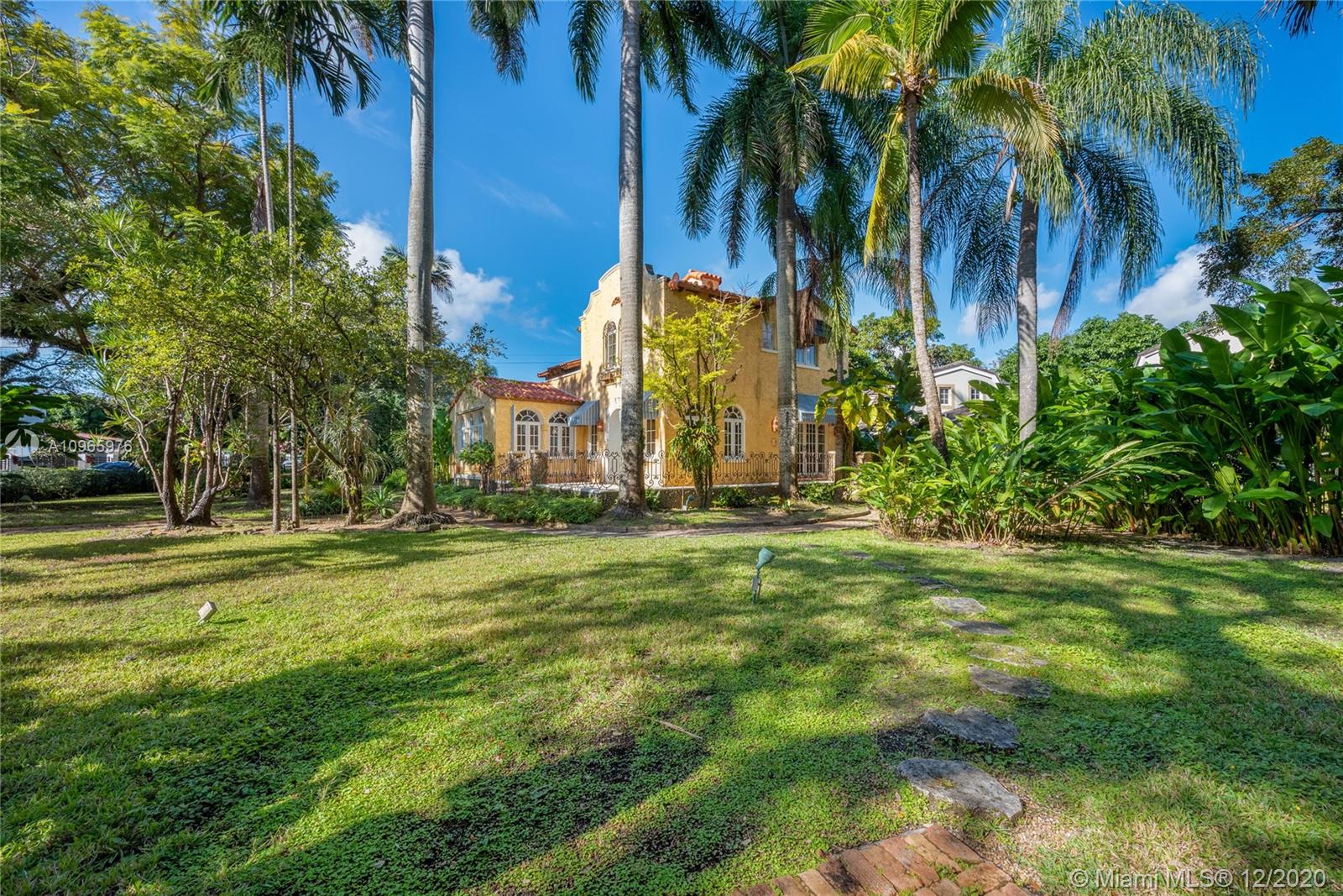 New Listing. Sitting on a large, 11,750 ft. corner lot at Granada and Coral Way, this classic 1925 mansion is ready for a new family. Nestled under huge oaks and palms, this 5 bedroom/4.5 bath (4/3.5 in main house + maid's quarters) home has 3,451 sq. ft. and has charm and character at every turn. Foyer entry, with fireplace spacious living room with Chicago brick floor. The family room has French doors to a terrace and garden. Formal Dining room. The breakfast room and kitchen at the rear with access to a maid's quarters next to the carport. Upstairs find the master suite with three other bedrooms plus an outdoor patio. FIRM PRICE. Easy to show