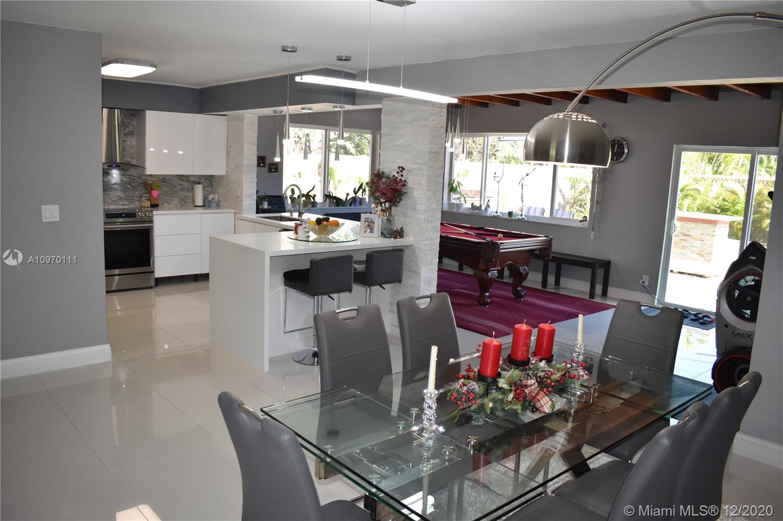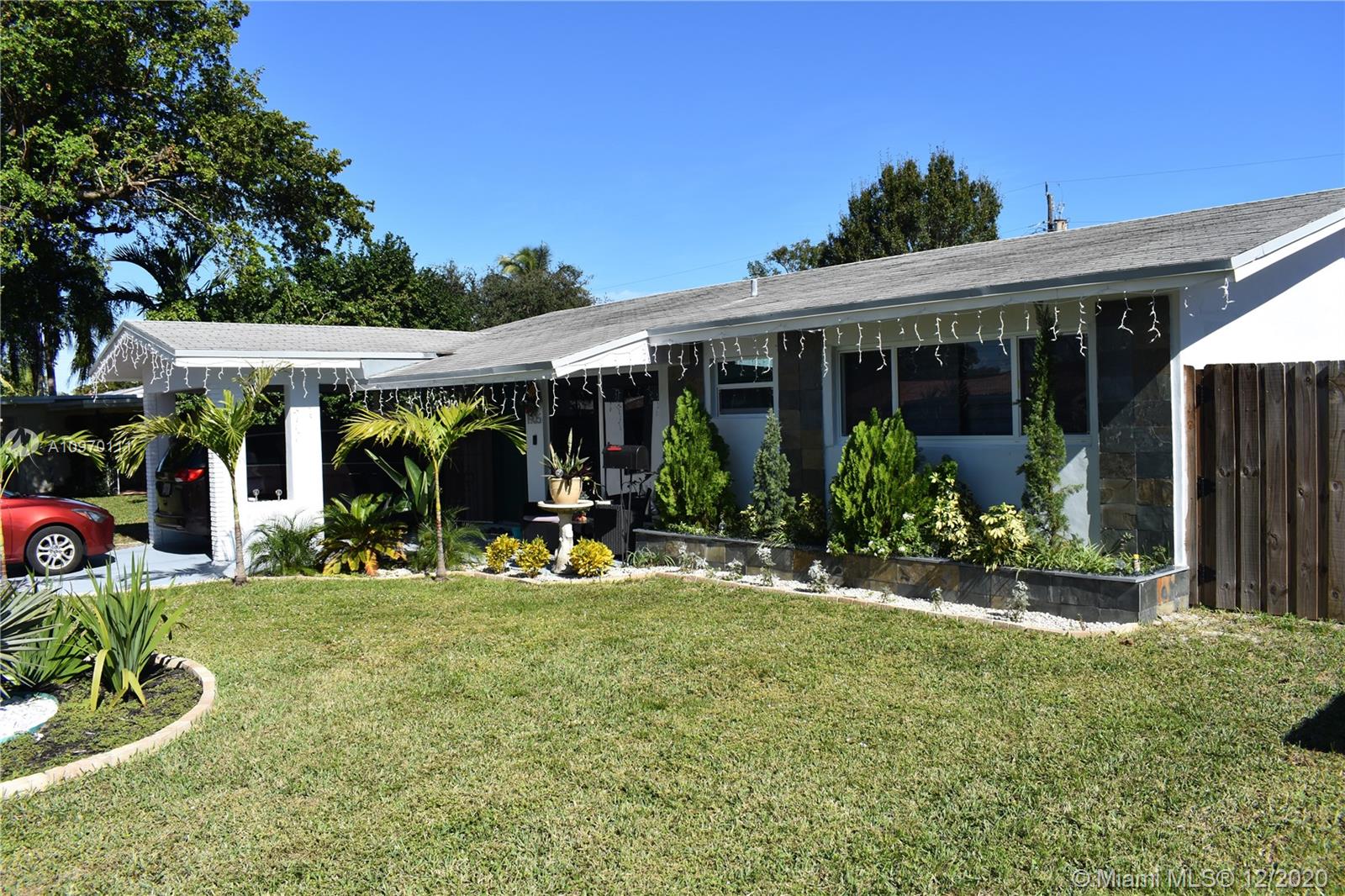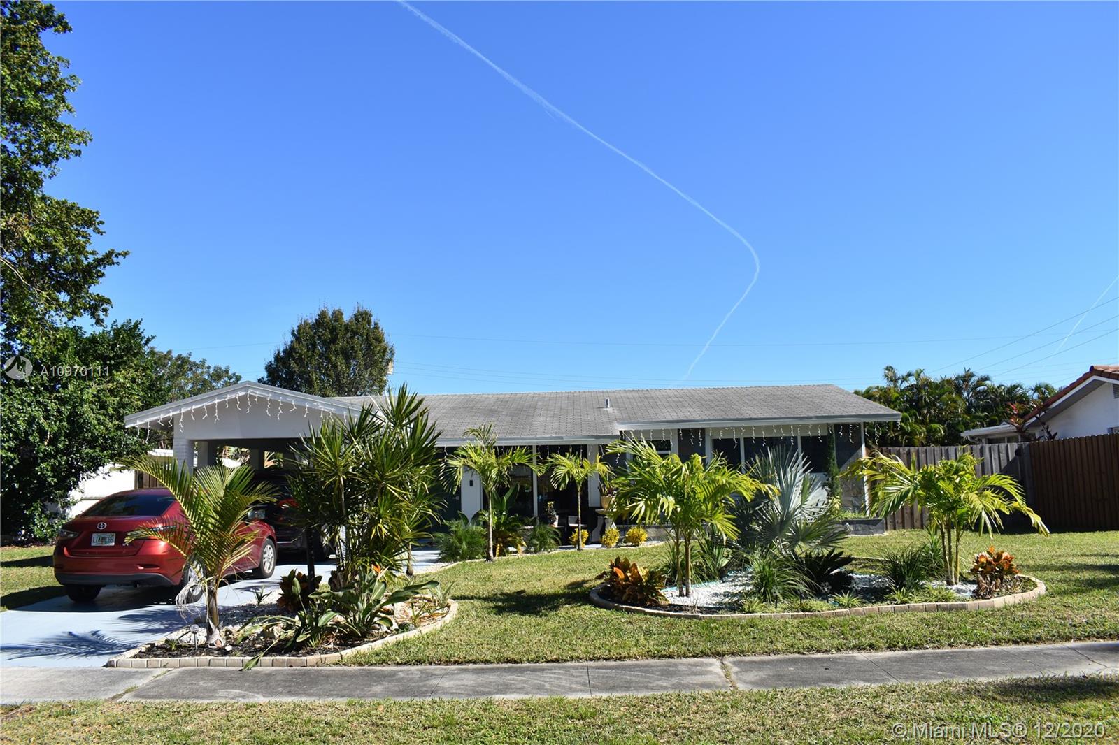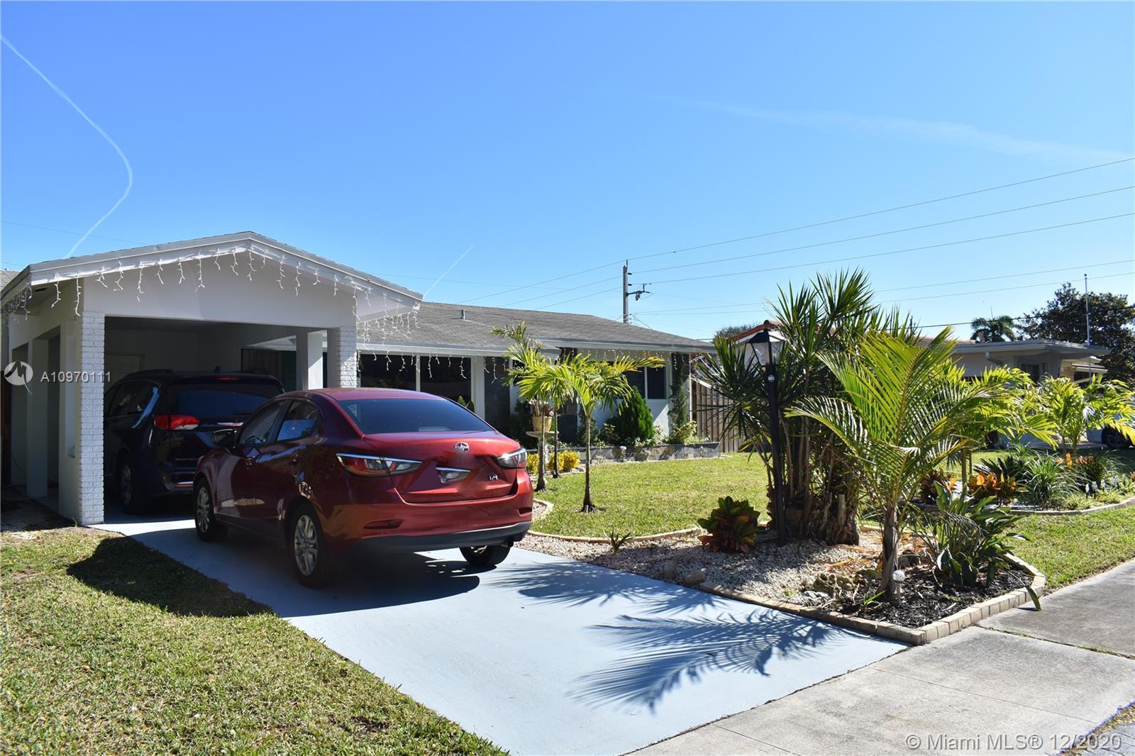 Great home in Hollywood Hills, totally renovated, with a large and completely fenced-in yard. Located on a trafficless street close to shopping plazas, places of worship and major highways. Painted in and out with many improvements. Park your car in the carport and enter into a large living-dining-family rooms combination and a brand new open kitchen. There is white porcelain flooring all around, newer A/C conditioners and hurricane proof windows and sliding door. A very large yard will allow for a pool and some more. House is sold in AS IS condition with right to inspect.