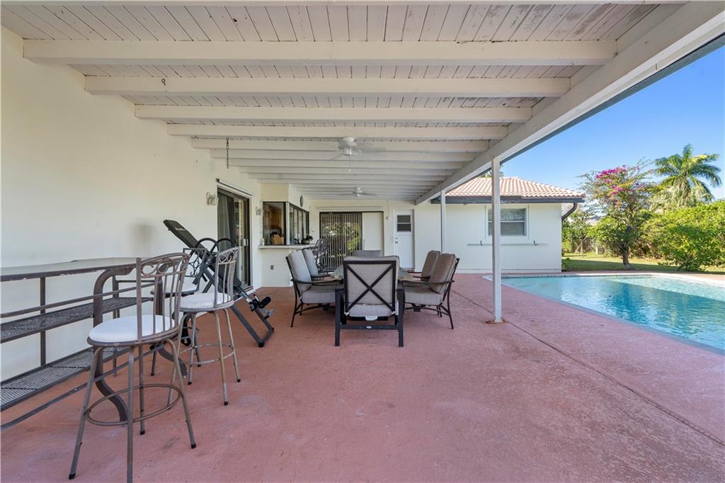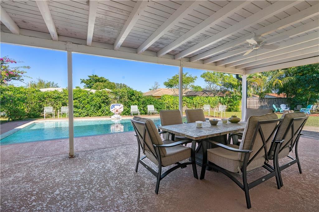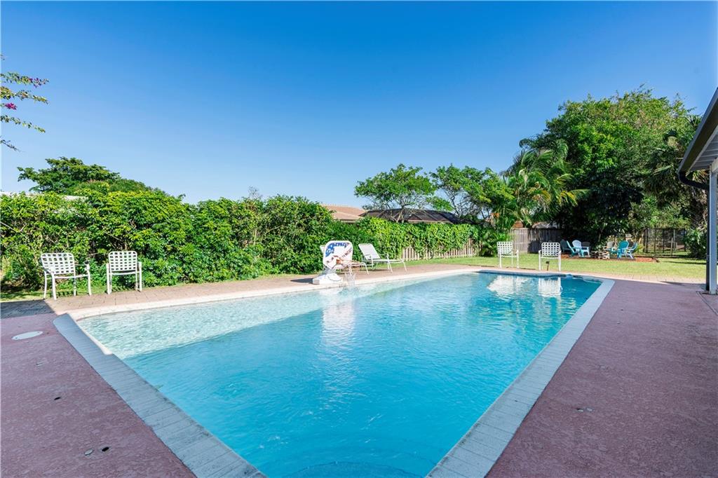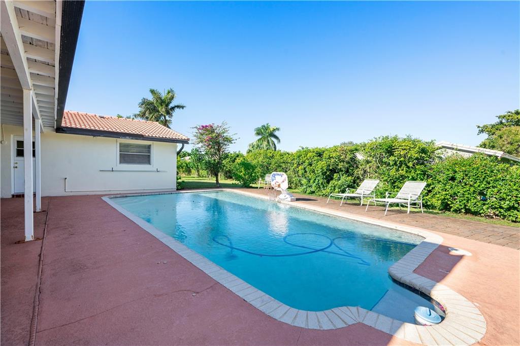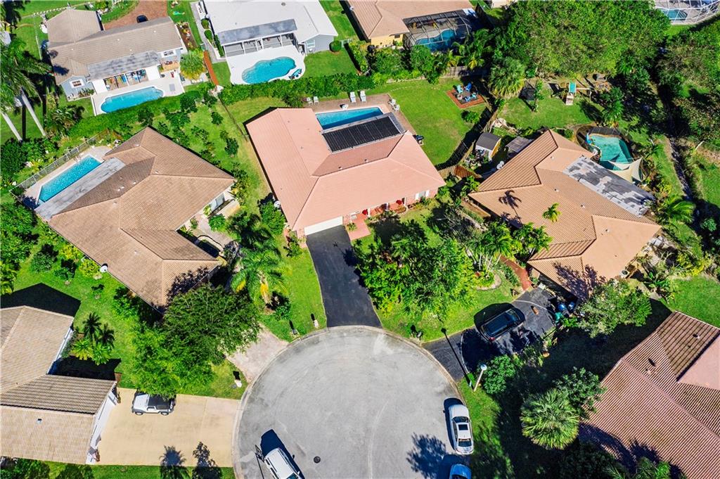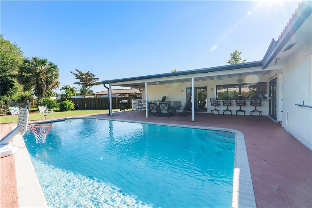 Wait until you see this back yard - great for BBQ's & Happy Hours! This 5 Bedroom cul-de-sac Home has over a 1/4 acre of space to enjoy. NO HOA! Covered patio, spacious pool area, fenced backyard & fire pit perfect for s'mores. Split bedroom plan great for a large family or many guests. Remodeled kitchen with granite, solid wood cabinetry, wraparound snack bar & open access to the living room and dining room ~ perfect for entertaining! Updated Bathrooms. Newer water heater 2018, A/C-2016, RJ Chambers roof, newer cabana bath 2018, new Diamond Brite/pool pump/new pool tile. Full hurricane shutter protection & 2018 rated garage door. Solar panels on flat roof heat the pool. Brand new exterior electrical panel. Walk to the Coral Square Mall, eateries & more!