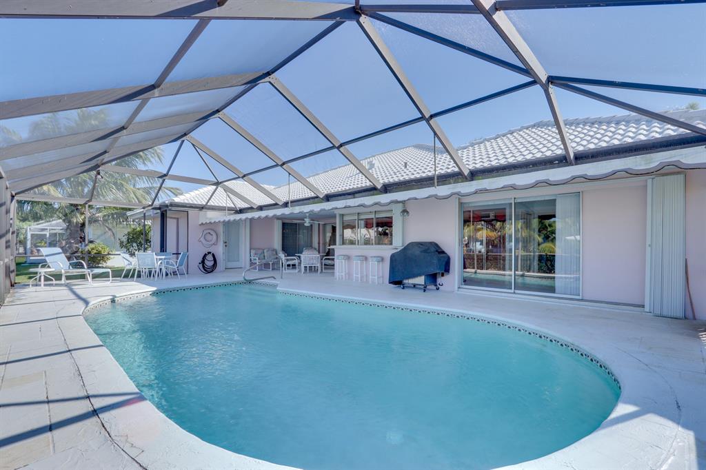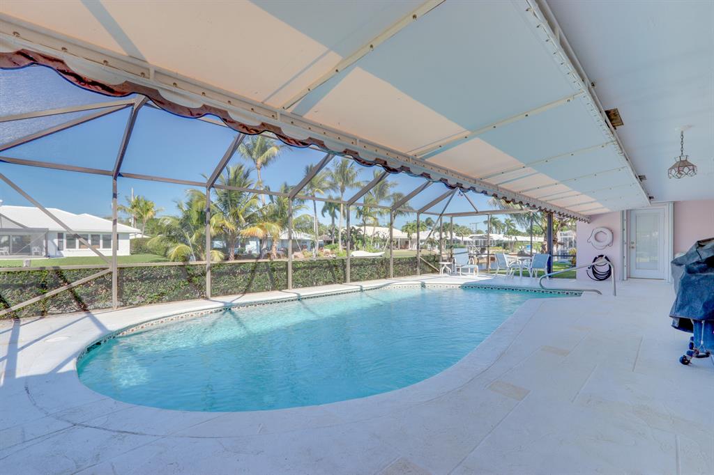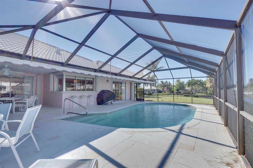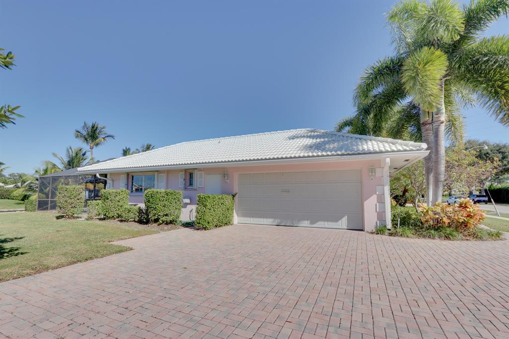 One of the Largest Ocean Access Lots in Camino Gardens ~ 1/3 Acre with 179 ft on water with Spectacular Wide Water Views on intersecting canals! 3 bedroom stack/split plan ~ Kitchen has Cherrywood cabinets and Corian counters with stainless steel appliances ~ Formal dining & living rooms with electric fireplace, Family room has half bath ~ Master has cabana bath & Lg walk-in closet ~ Large screened Patio/Pool area ~ 2 car side loading garage ~ This huge lot has plenty of room for an addition Accordion shutters throughout ~ One of East Boca Raton's most sought after neighborhoods! All top A rated schools! Close to Mizner Park, restaurants, shopping, bike to beach!
