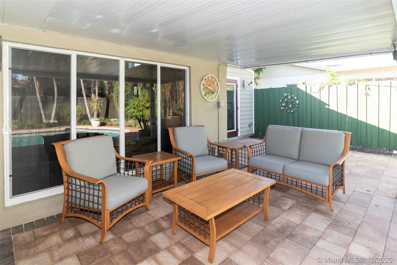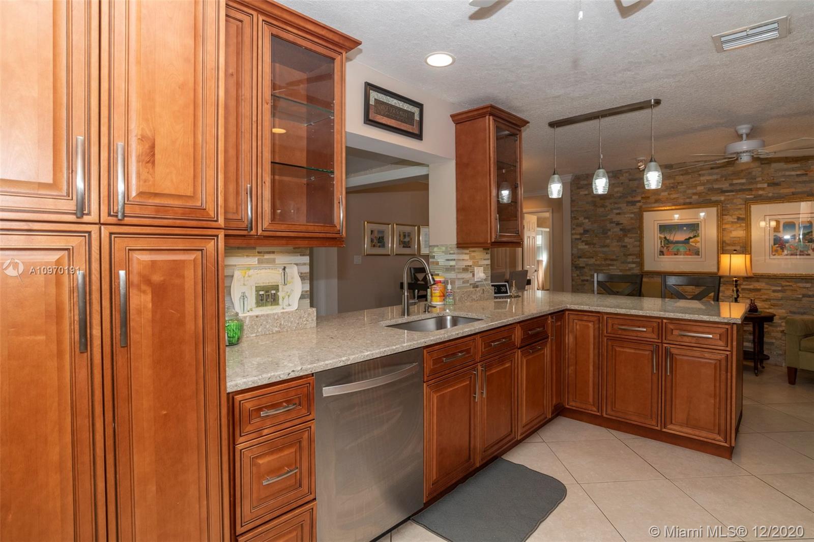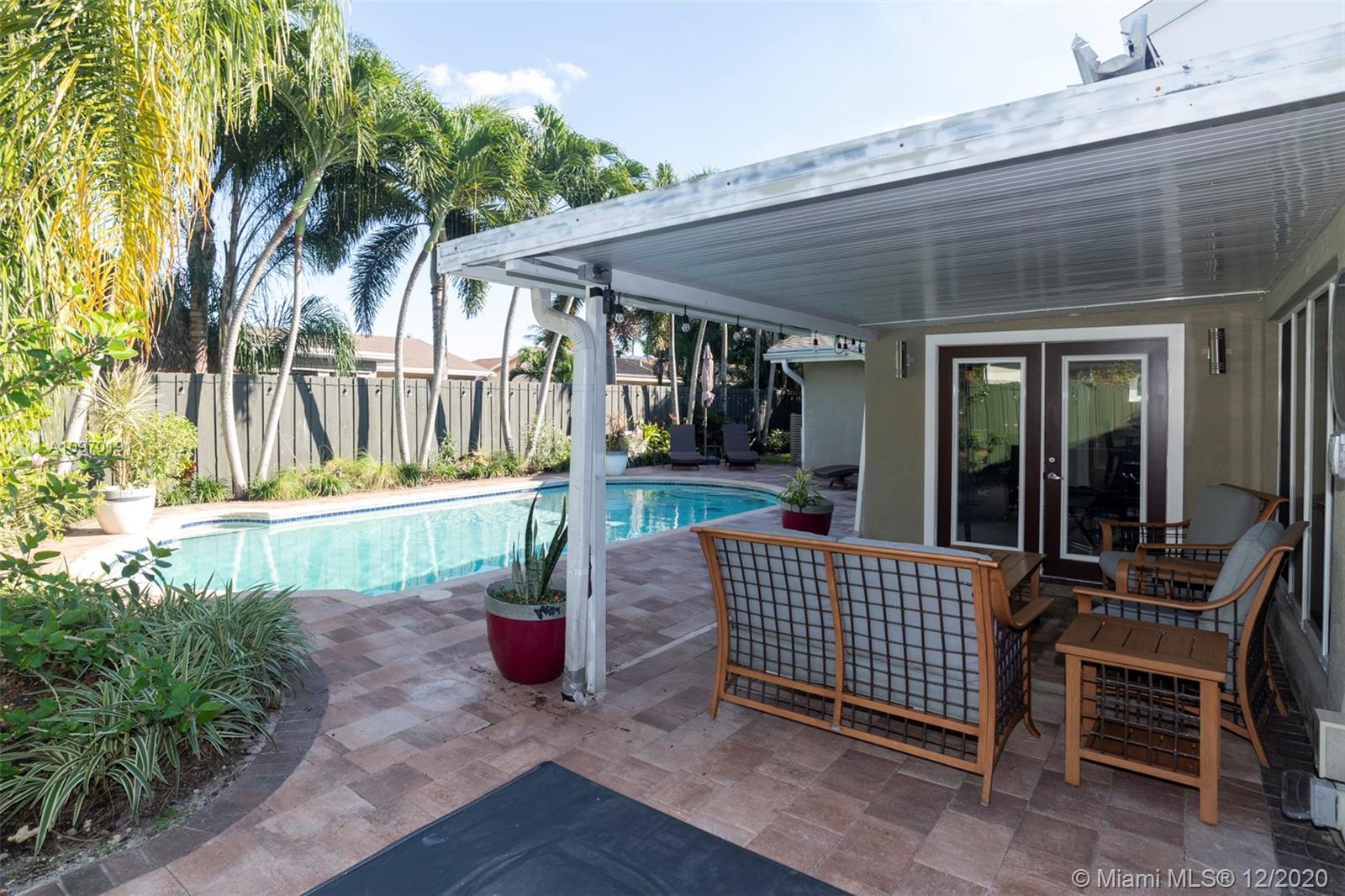Stunning pool home with 4 bedrooms, 2 full and 1 half baths and a 2 car garage. A beautiful kitchen, quartz countertop and peninsula, stainless steel appliances and high-end maple cabinets. The master bedroom with ensuite bath has a large walk-in shower and dual sinks and three more bedrooms. Enjoy a large heated pool with patio space, including a covered entertaining area. A separate office in its own modern building with an efficient Mitsubishi cooling system. The home has a Water treatment system /separate meter for the sprinkler system. The roof is five years old and home has 8 ceiling fans. All doors are impact as are the master bedroom windows. There is a security system. The property is fenced and a short distance away are schools, entertainment, dining and shopping.