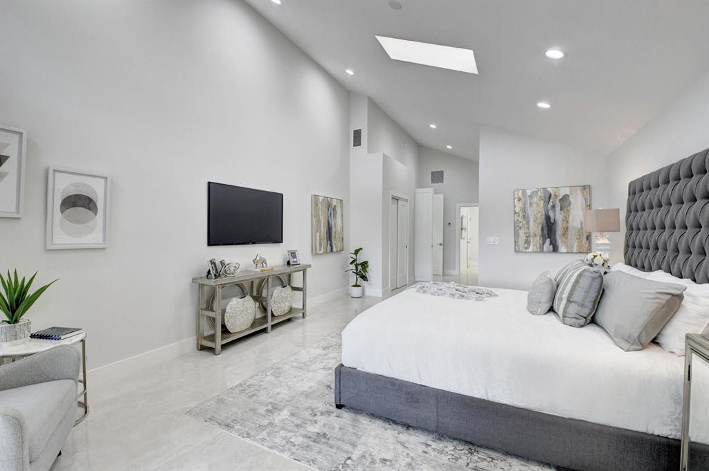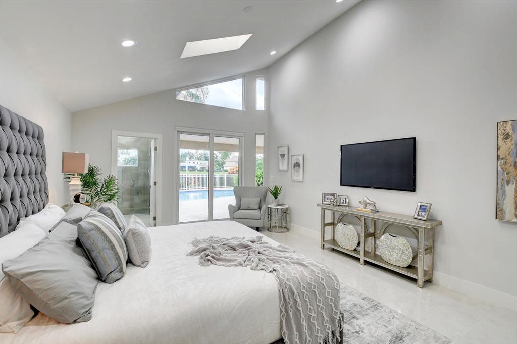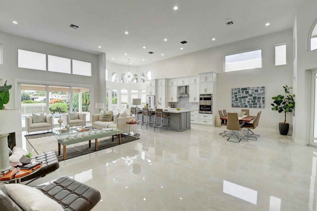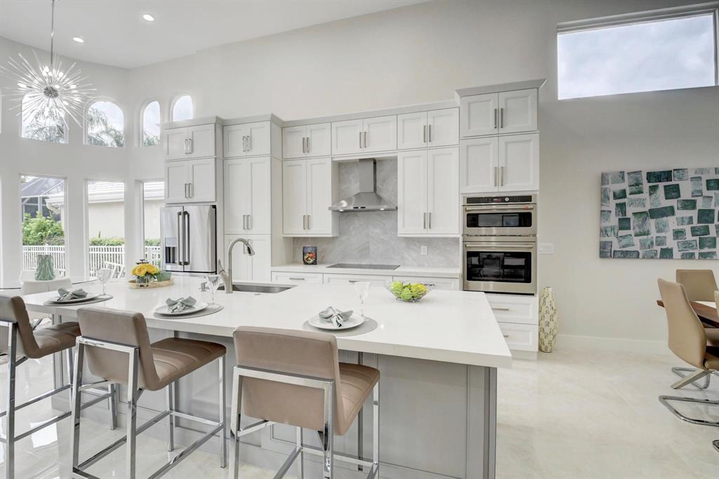 This home is like a breath of fresh air creating a beautiful, modern style that embodies elegance, functionality and harmony. Come enjoy this completely renovated open, spacious and bright 3 bedroom, 3.5 baths, single family home with GORGEOUS golf & lake views!!!! The kitchen is top of the line sparing no expense featuring: Quartz countertops with an expansive island and a beautiful backsplash complimenting the look. SS Cafe refrigerator and oven, GE stove top, Blomberg dishwasher, Advantium microwave and a wine fridge. HURRICANE IMPACT doors and windows throughout. New flat roof 2020, tile roof 2011. Other features: Alexa and google smart, volume ceilings, sky lights, porcelain flooring throughout, tons of windows allowing a lot of natural light, his + hers bathrooms.