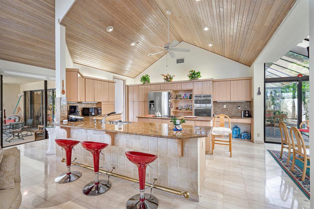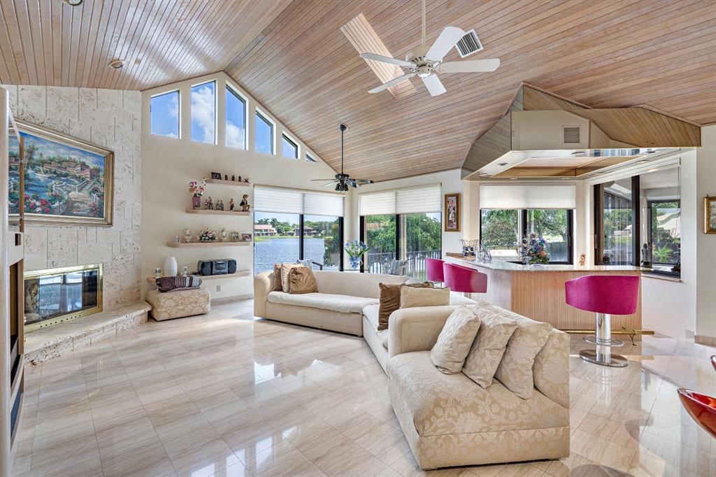 As soon as one comes into the front entrance, you are met with amazingly high volumous ceilings that will be seen throughout this charming home. The second thing you won't help but notice are the stunning lake views across the home! The Master Bedroom windows and cabana master bath have newer impact windows and doors. The majority of the home has roll down shutters, with panels for windows and accordion protection. Granite kitchen and bar has wonderful views whether your cooking or socializing with friends. This beautiful home has 5 bedrooms/4 full baths/3 car garage. One bedroom is currently made to a den, but can be easily converted back to a bedroom with your own unique touches. WHC has 24/7 security, many community amenities, excellent location with A plus schools.