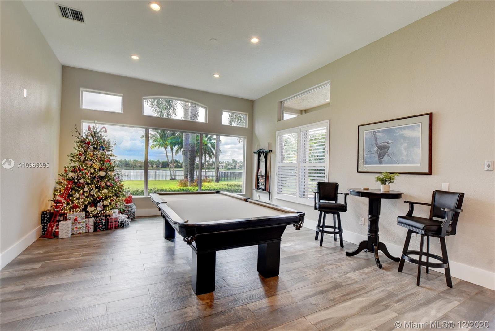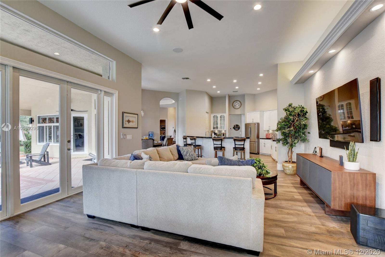 Gorgeous lake view from this immaculate, completely remodeled 5 bedroom + dedicated office + great room/3 bath residence in guard-gated Long Lake Estates. Impact glass windows/doors showcase generous yard, salt system pool w/raised spa, & wide view of the lake. Meticulously maintained & tastefully updated w/high-end finishes: porcelain wood tile flooring w/new 7.25" baseboards, quartz bathroom countertops, undermount sinks. Newer roof (2007) w/Roof-a-cide treatment, New a/c's, new Rheem water heater, new LG washer/dryer and all new Samsung & GE Profile kitchen appliances. U-line wine fridge, Plantation shutters, customized shelving in all closets. 3-car garage w/impact resistant garage doors, higher horse power motors & app-controlled entry. Whole-house water filtration/softening system.