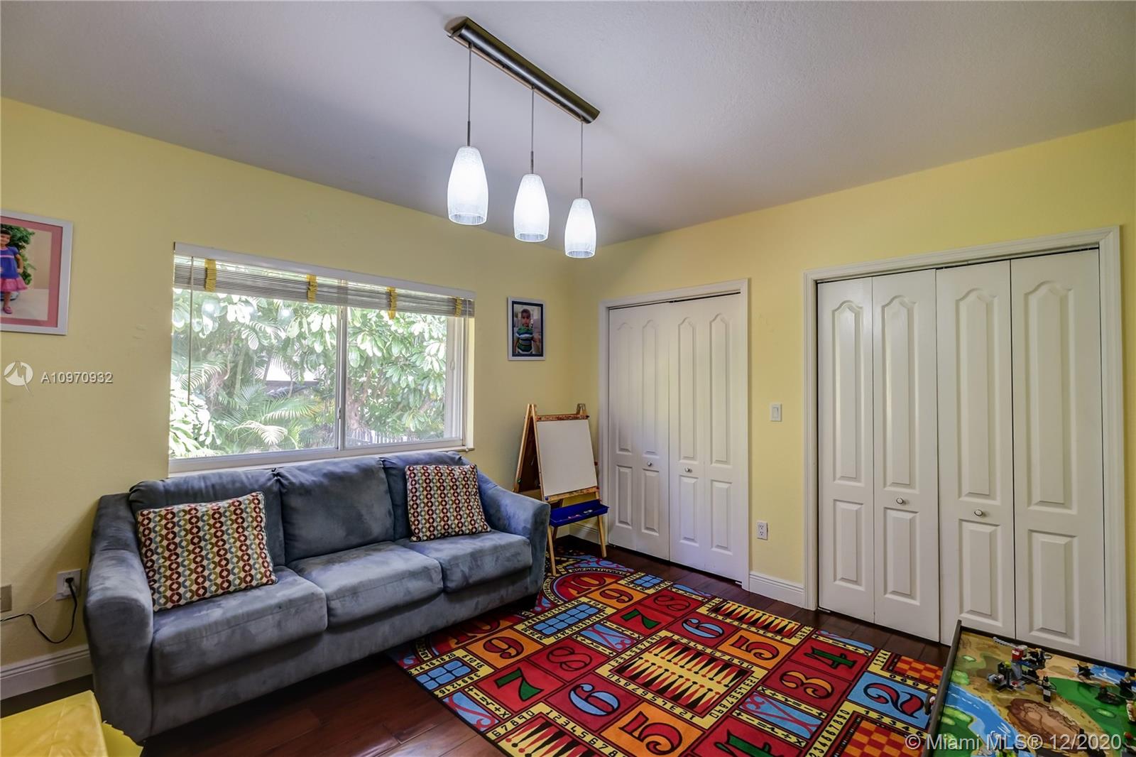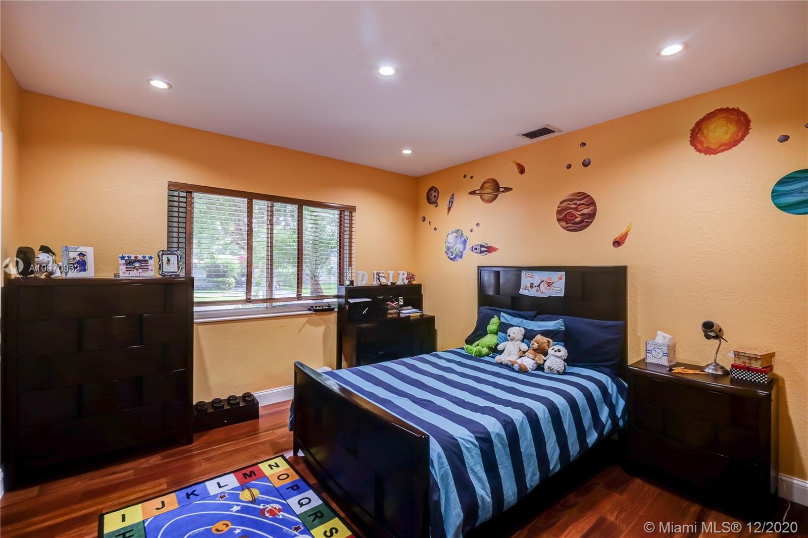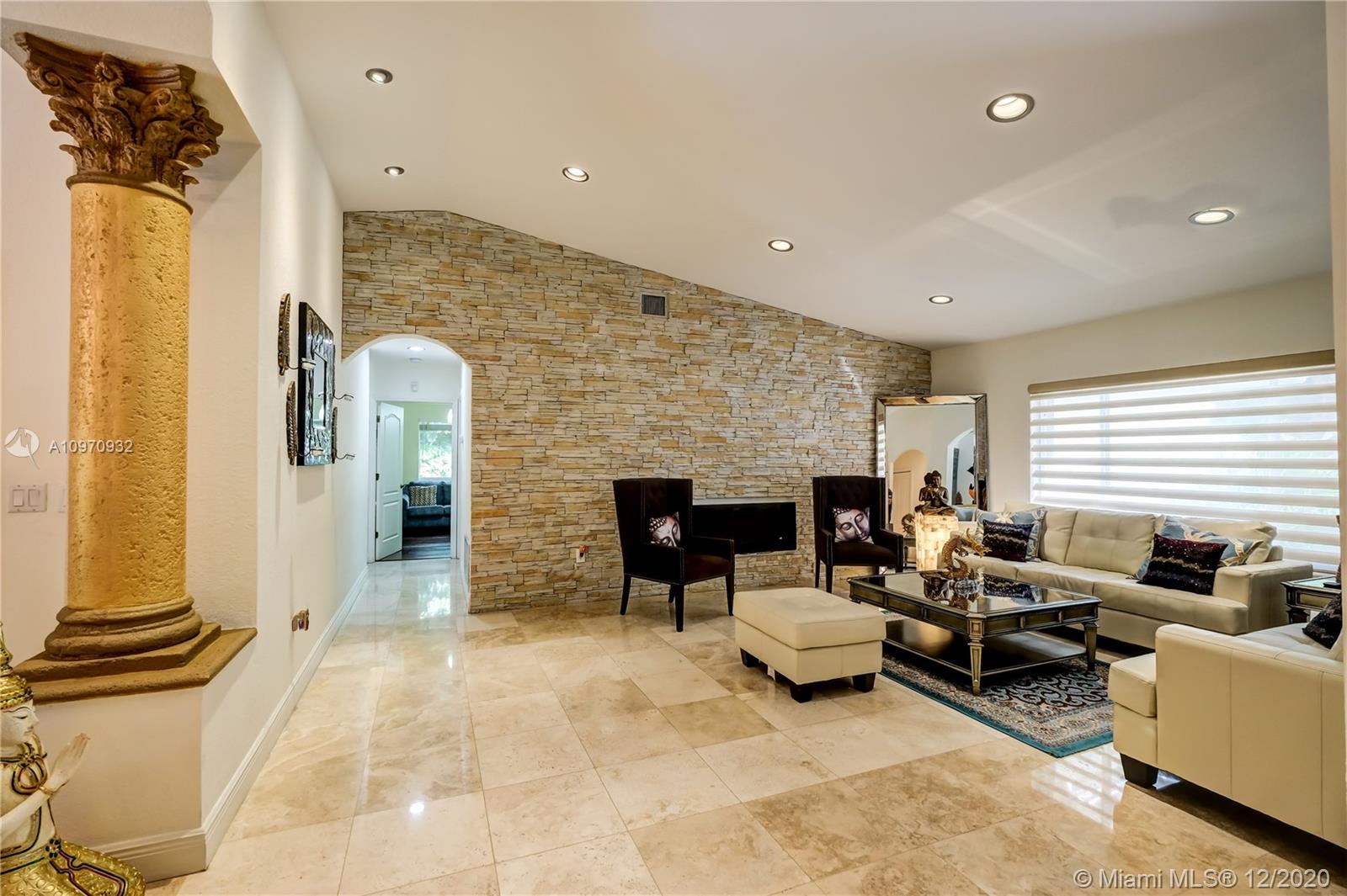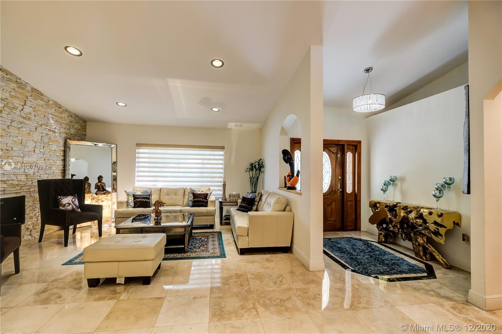 Gorgeous and updated Pinecrest Elementary family home on quiet child-friendly street in sought after gated community Gables by the Sea/Pinecrest by the Sea. This large 4/3 (master + 2 bedrooms on one side) has vaulted ceilings, wood and marble floors, salt-water heated pool, newer patio & backyard, newer landscape and landscape lighting, mosquito mister system, & more! Wonderful open layout with large kitchen-family room, converted garage (easily converted back), and indoor laundry room.