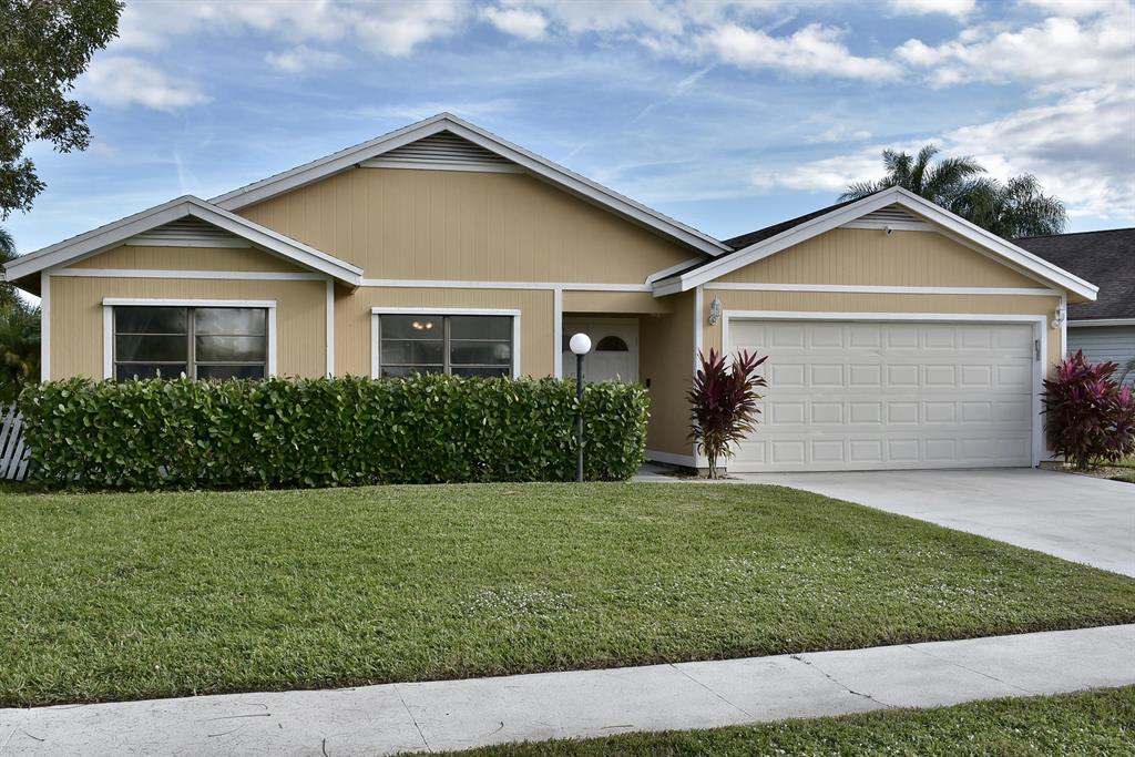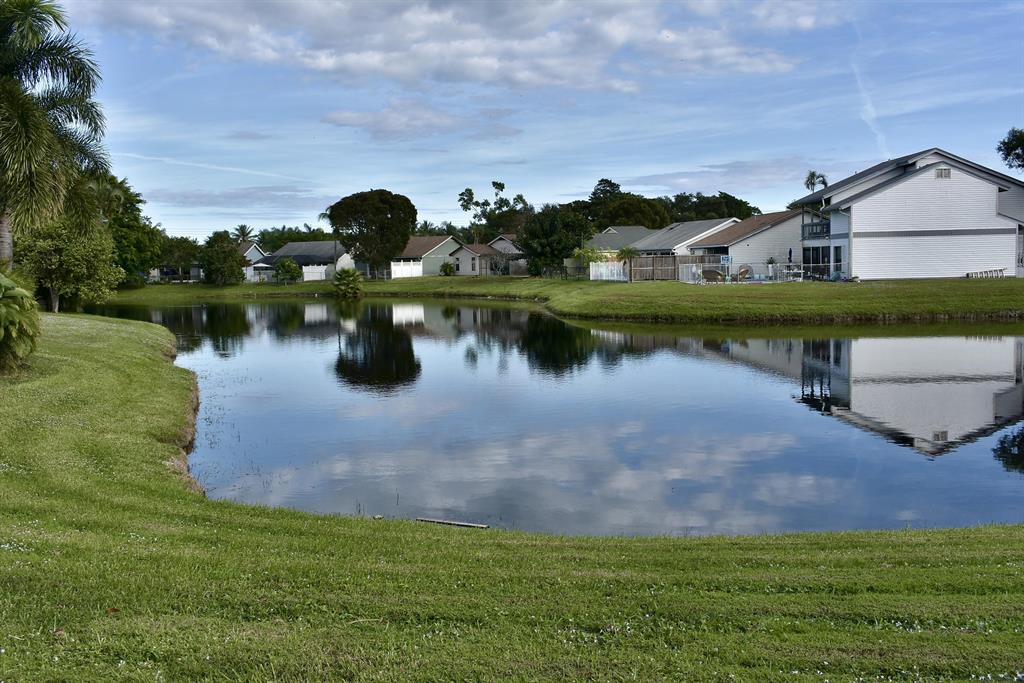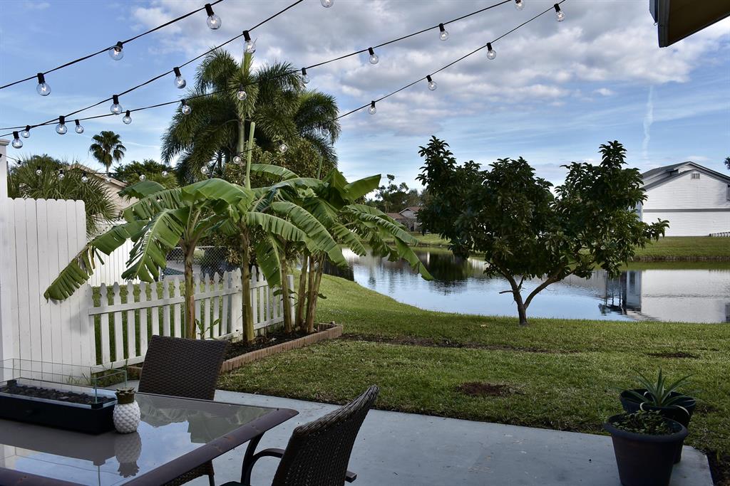 Lovely, upgraded single family home with over 1600 square feet on the lake in centrally located Lakeside Green! Kitchen boasts beautiful granite counters & island, all SS appliances just 2 years old. Both bathrooms have been renovated with high end finishes & frameless shower doors. Living area & bedrooms all have neutral large tiles set on the diagonal, crown molding in living area. A/C - 2013, Roof 2005, Ring doorbell and Ring garage door camera/security system convey. Property has a fantastic view of the lake with freshly painted patio & inviting overhead string lights, 4 zone sprinkler system.