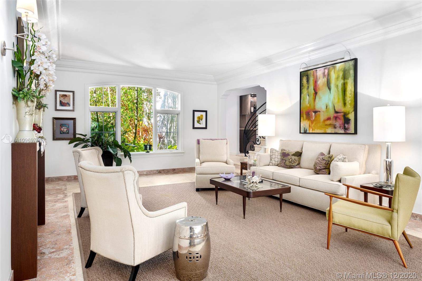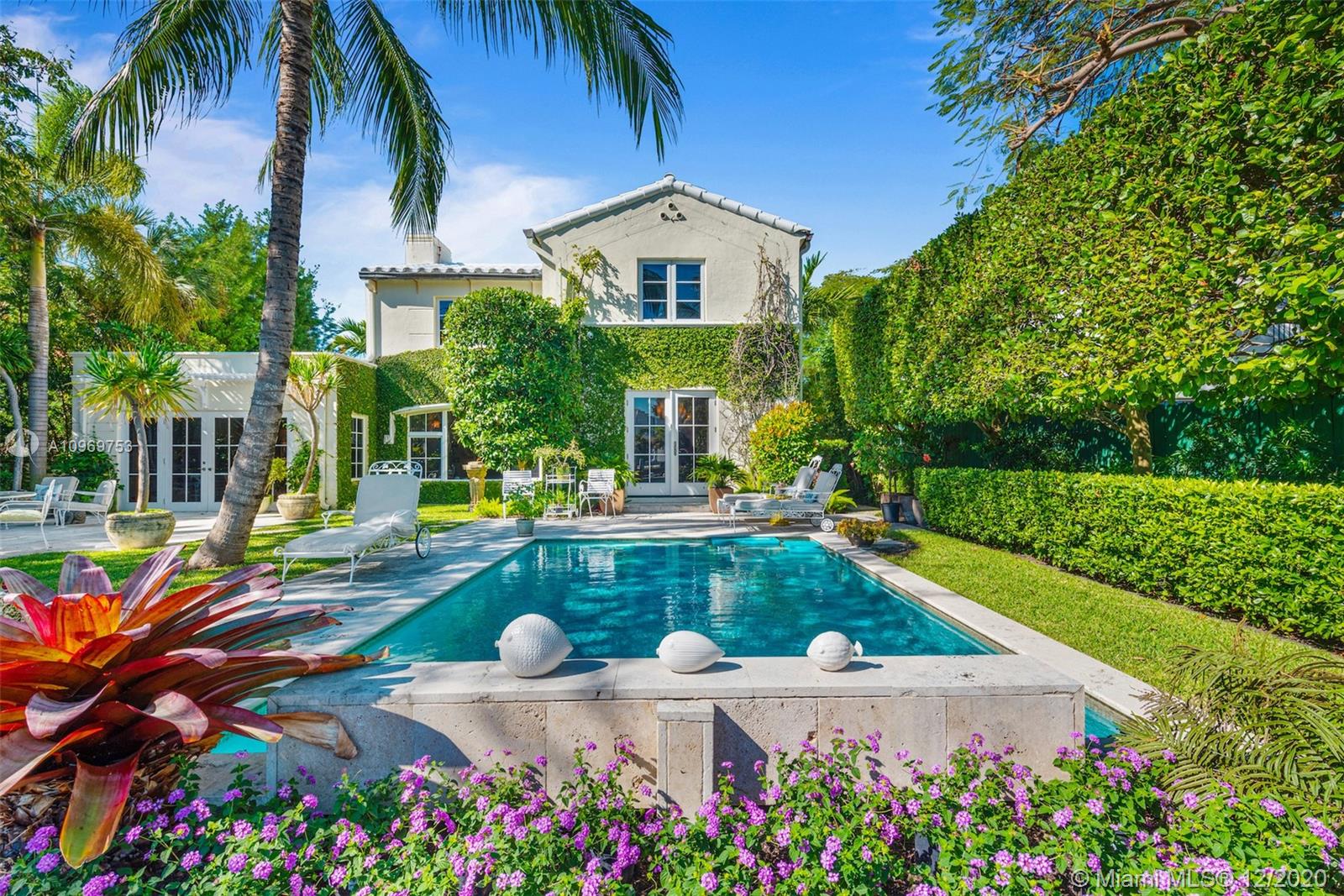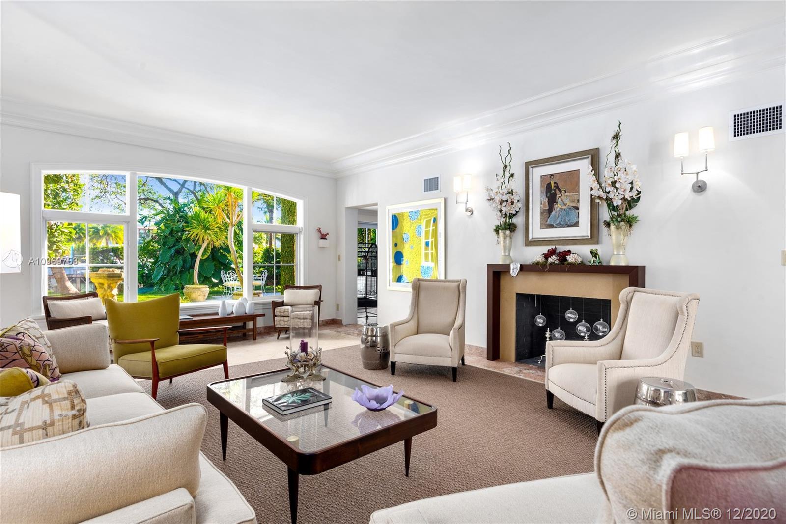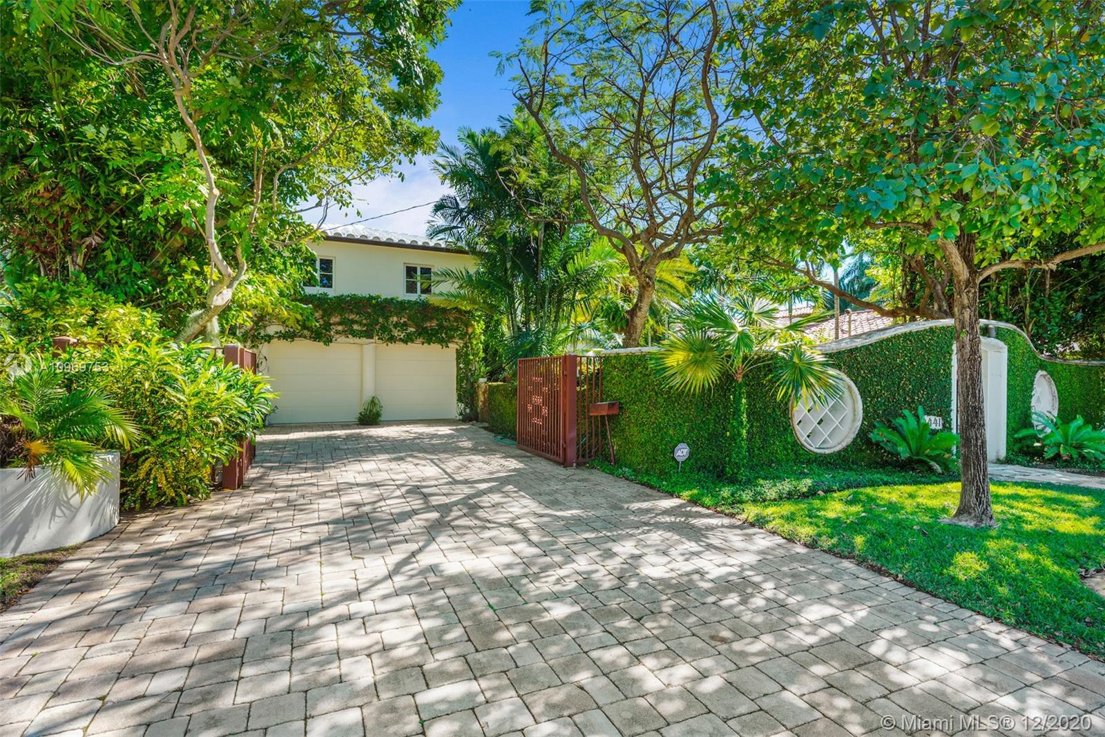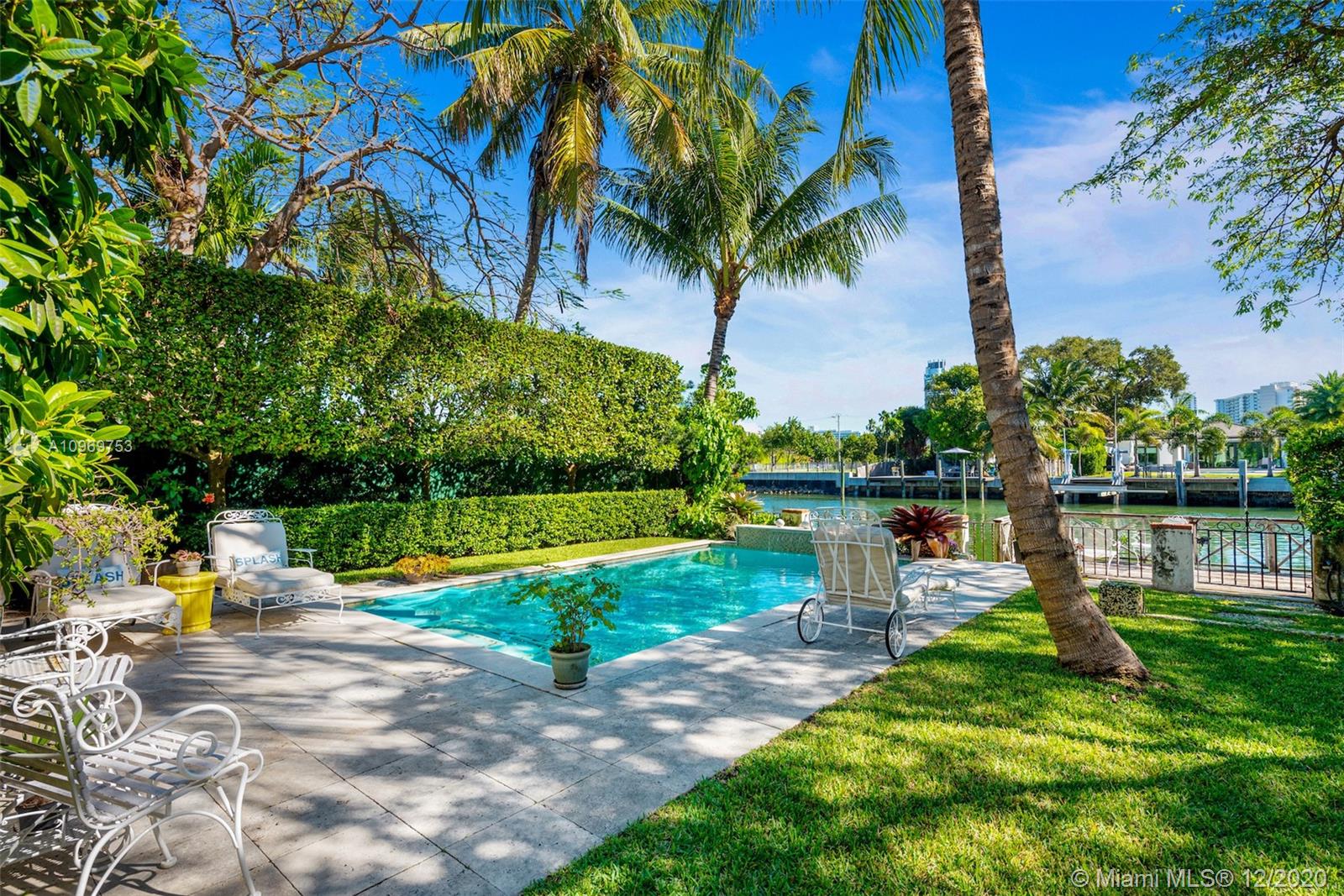 Ideally situated on oversized nearly 10,000 SF waterfront lot, this gorgeously renovated 2story Deco dream awaits its new owners. Residence is fully gated & lushly landscaped for the utmost privacy on 65ft of navigable waters. Home features rarely available 4,278 total SF & 5bd + FamilyRm floorplan (easily convertible to a 6th bd/1st FlrMstr). Once inside, bright&light living spaces feature coral tile flooring, unique fixtures & high-end finishes throughout. 3bds up, each w/ ensuite Bath + separate stairway leading to semi-detached 2 add’l bdr/office areas w/ full bath. Master suite offers its own terrace! Add'l offerings include impact glass,2 CG & full home surveillance system. Relax after a long day by the courtyard fountain,heated saltwater pool,or your very own coral tiled patio&dock!