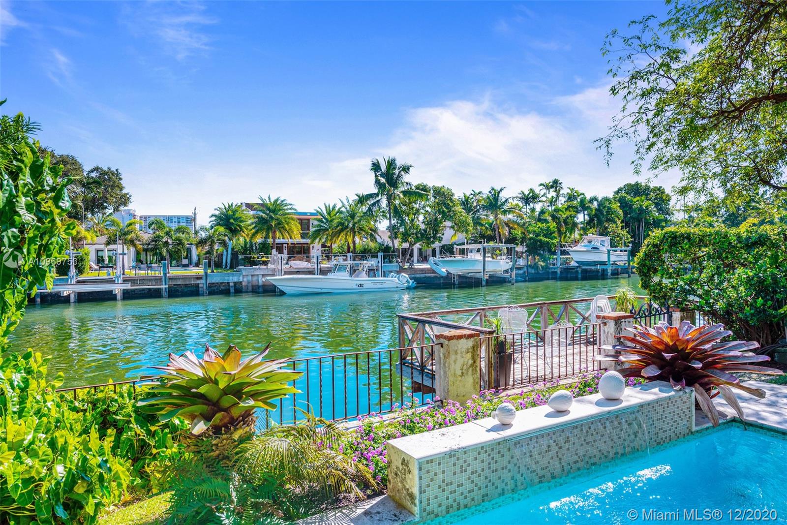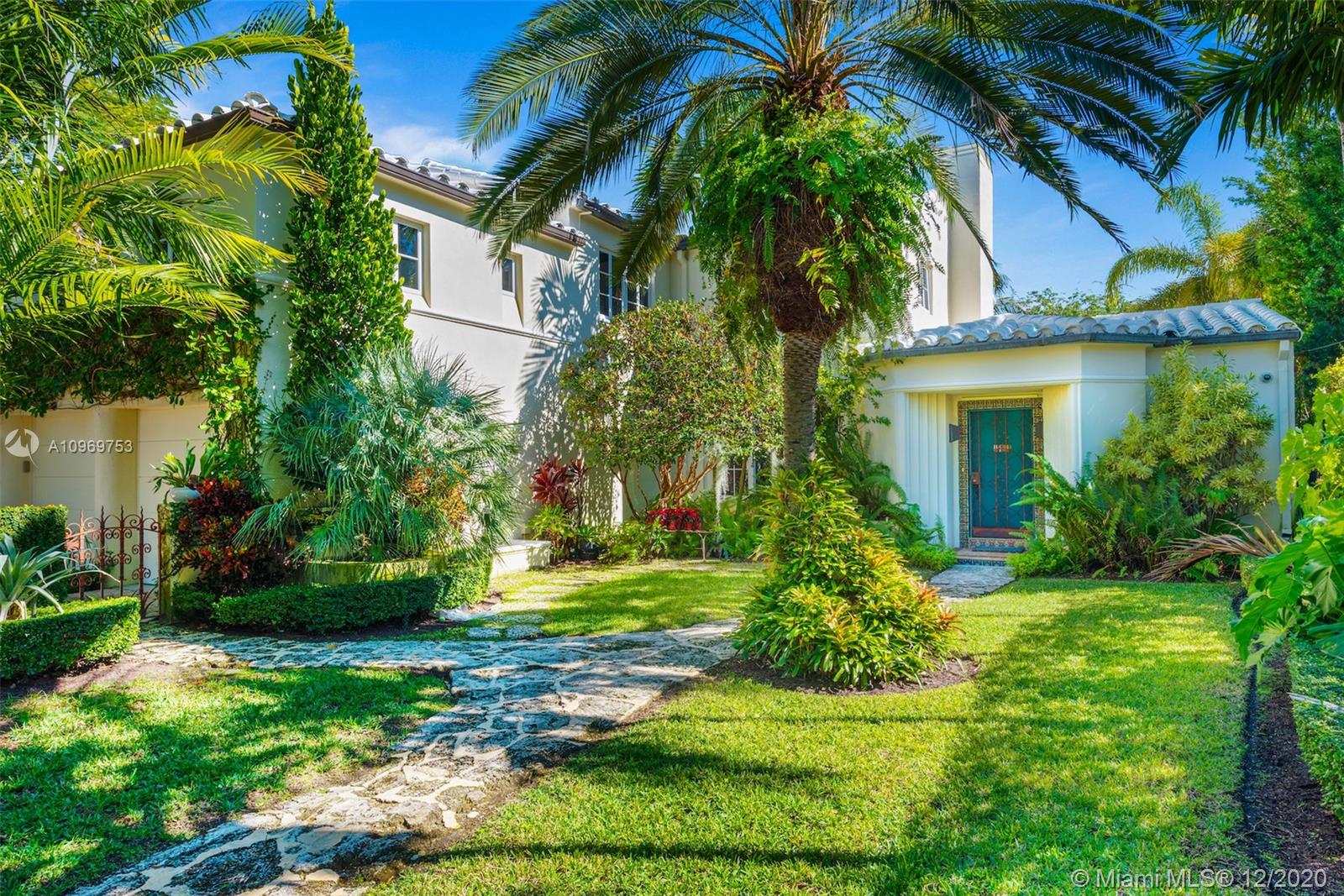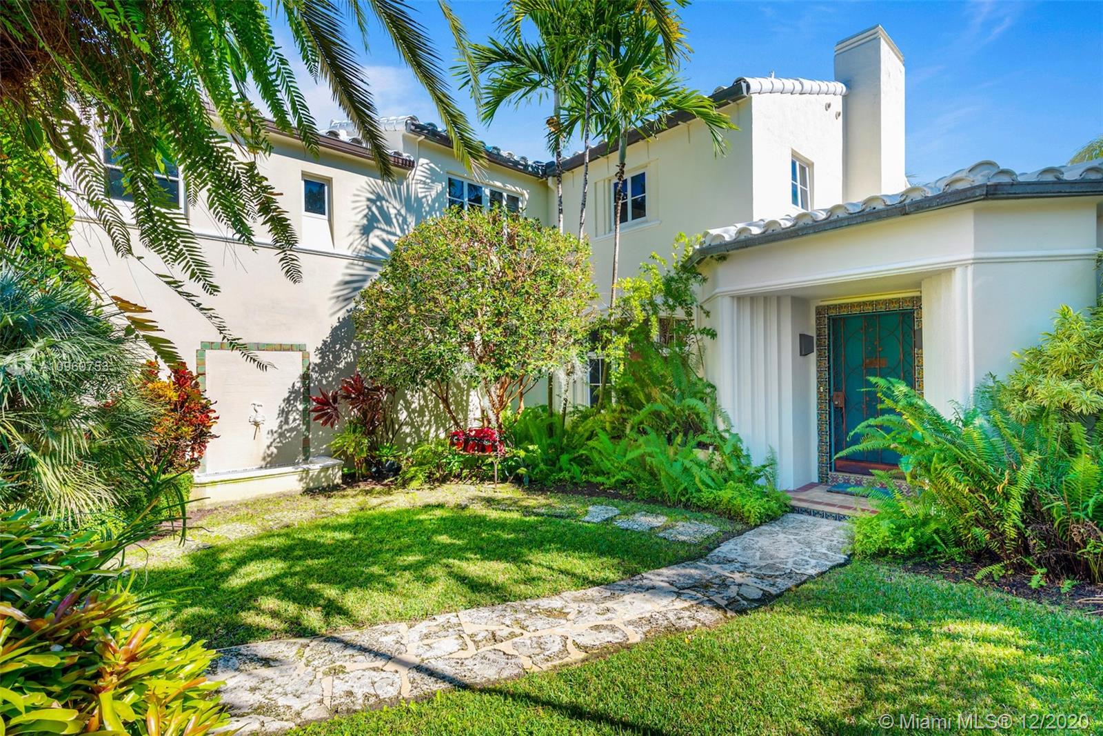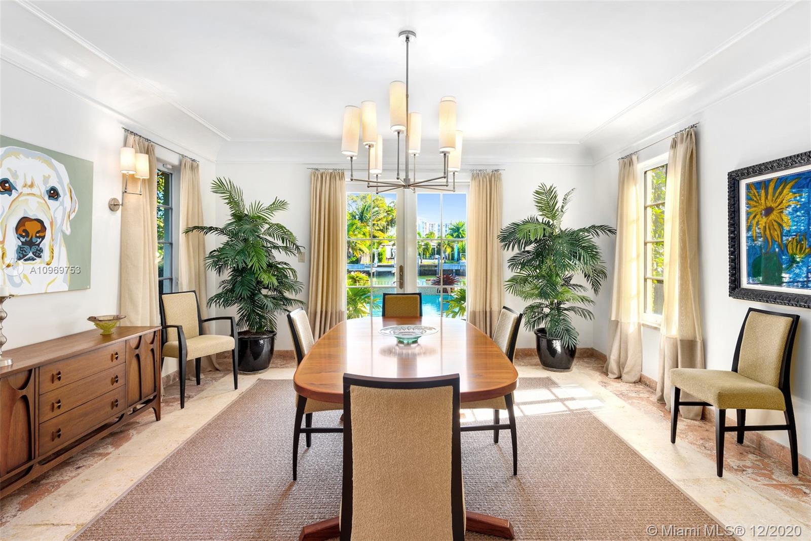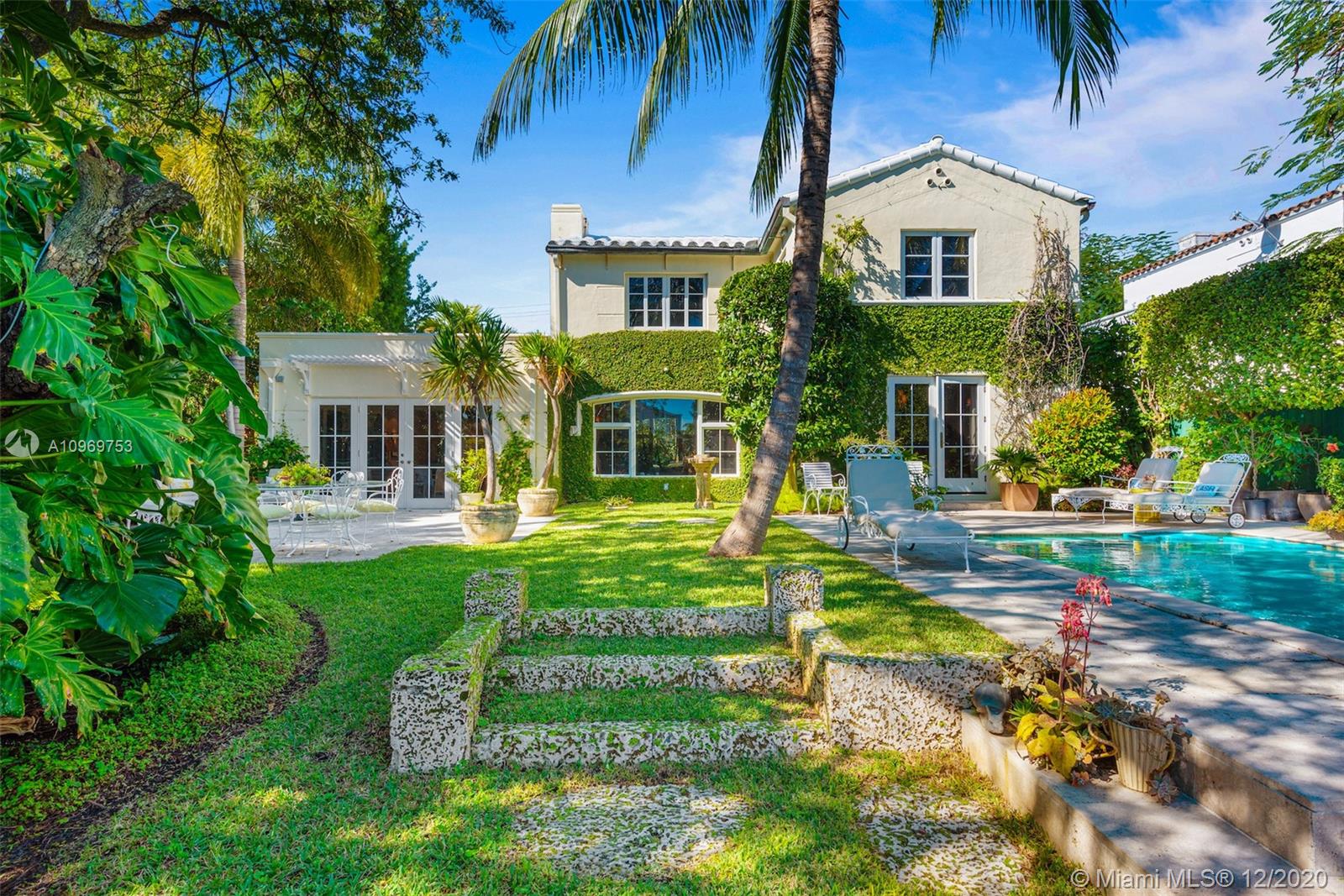 Ideally situated on oversized nearly 10,000 SF waterfront lot, this gorgeously renovated 2story Deco dream awaits its new owners. Residence is fully gated & lushly landscaped for the utmost privacy on 65ft of navigable waters. Home features rarely available 4,278 total SF & 5bd + FamilyRm floorplan (easily convertible to a 6th bd/1st FlrMstr). Once inside, bright&light living spaces feature coral tile flooring, unique fixtures & high-end finishes throughout. 3bds up, each w/ ensuite Bath + separate stairway leading to semi-detached 2 add’l bdr/office areas w/ full bath. Master suite offers its own terrace! Add'l offerings include impact glass,2 CG & full home surveillance system. Relax after a long day by the courtyard fountain,heated saltwater pool,or your very own coral tiled patio&dock!