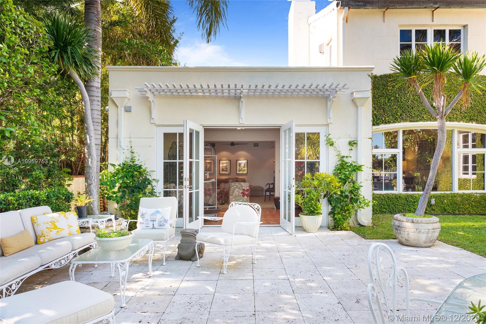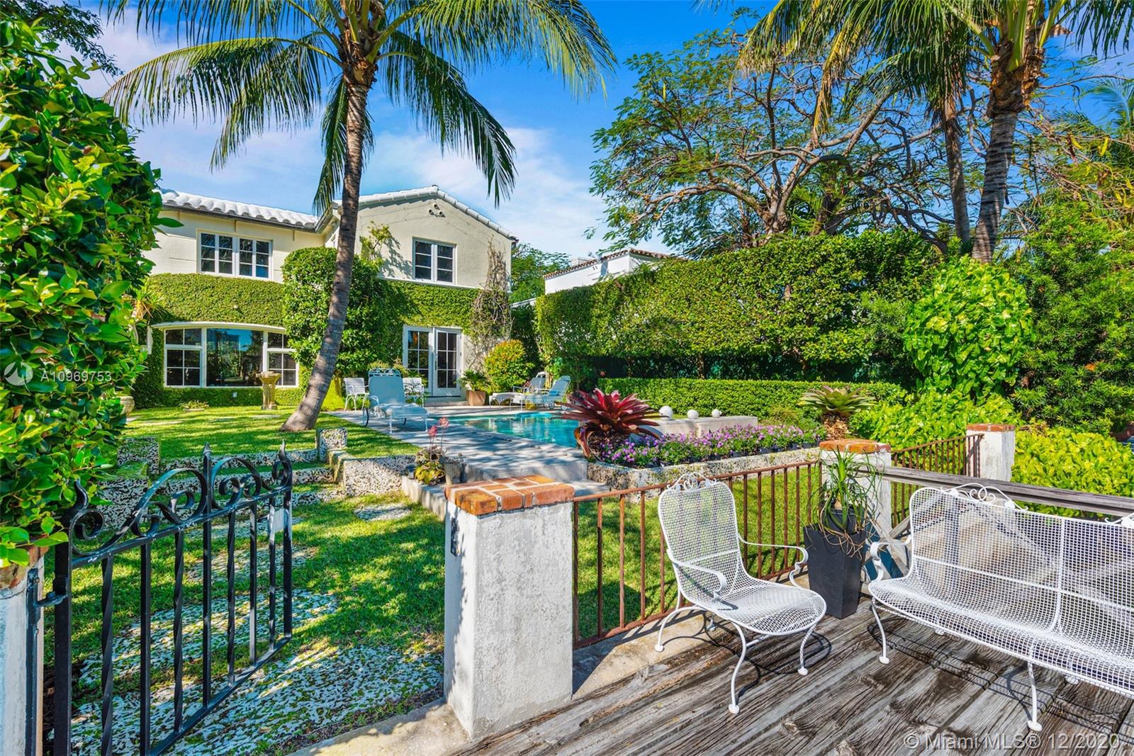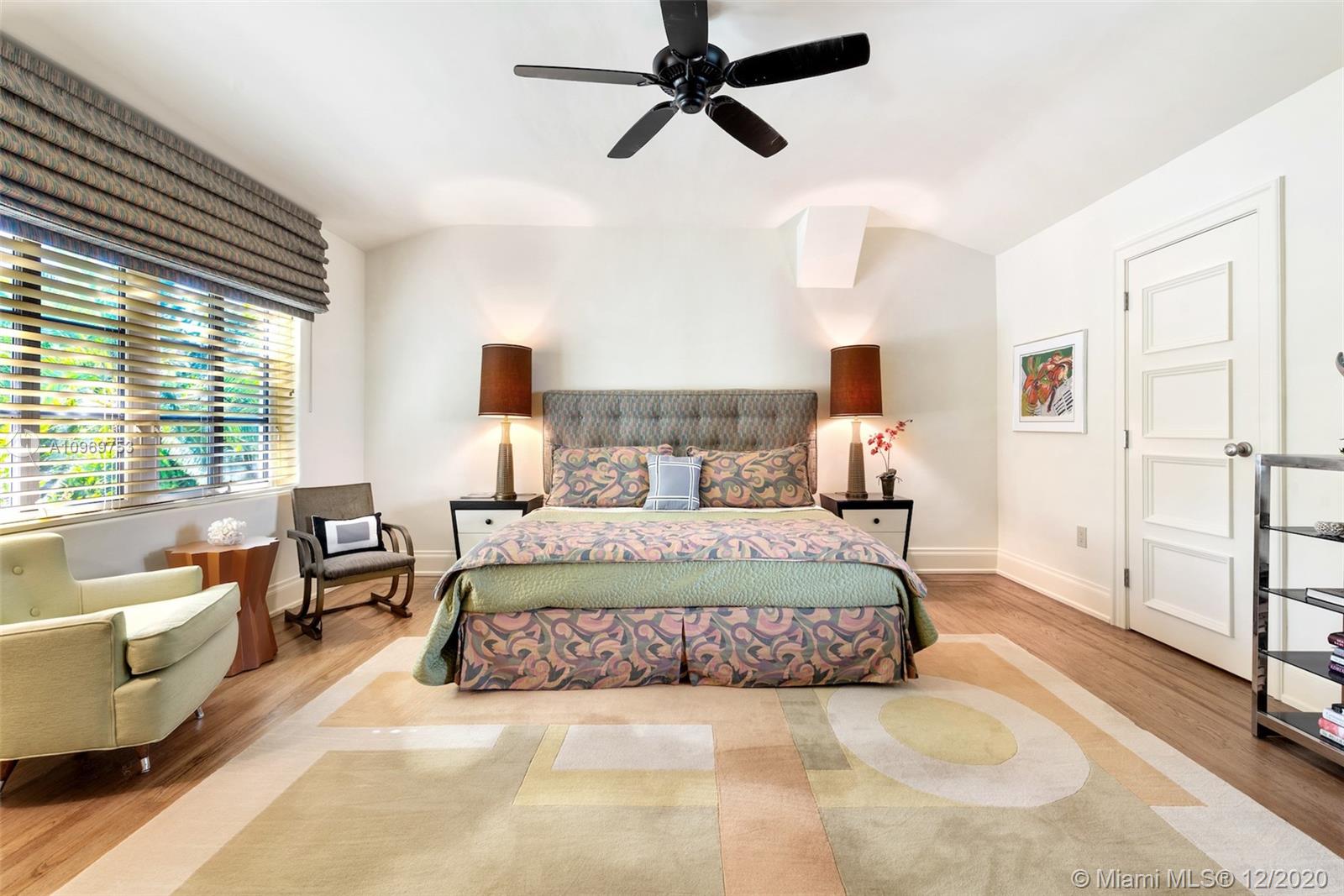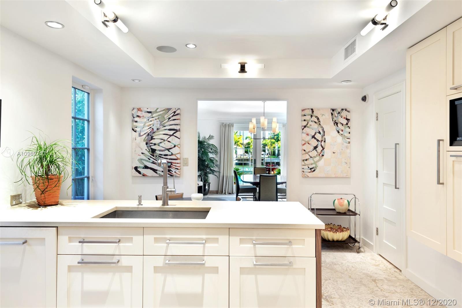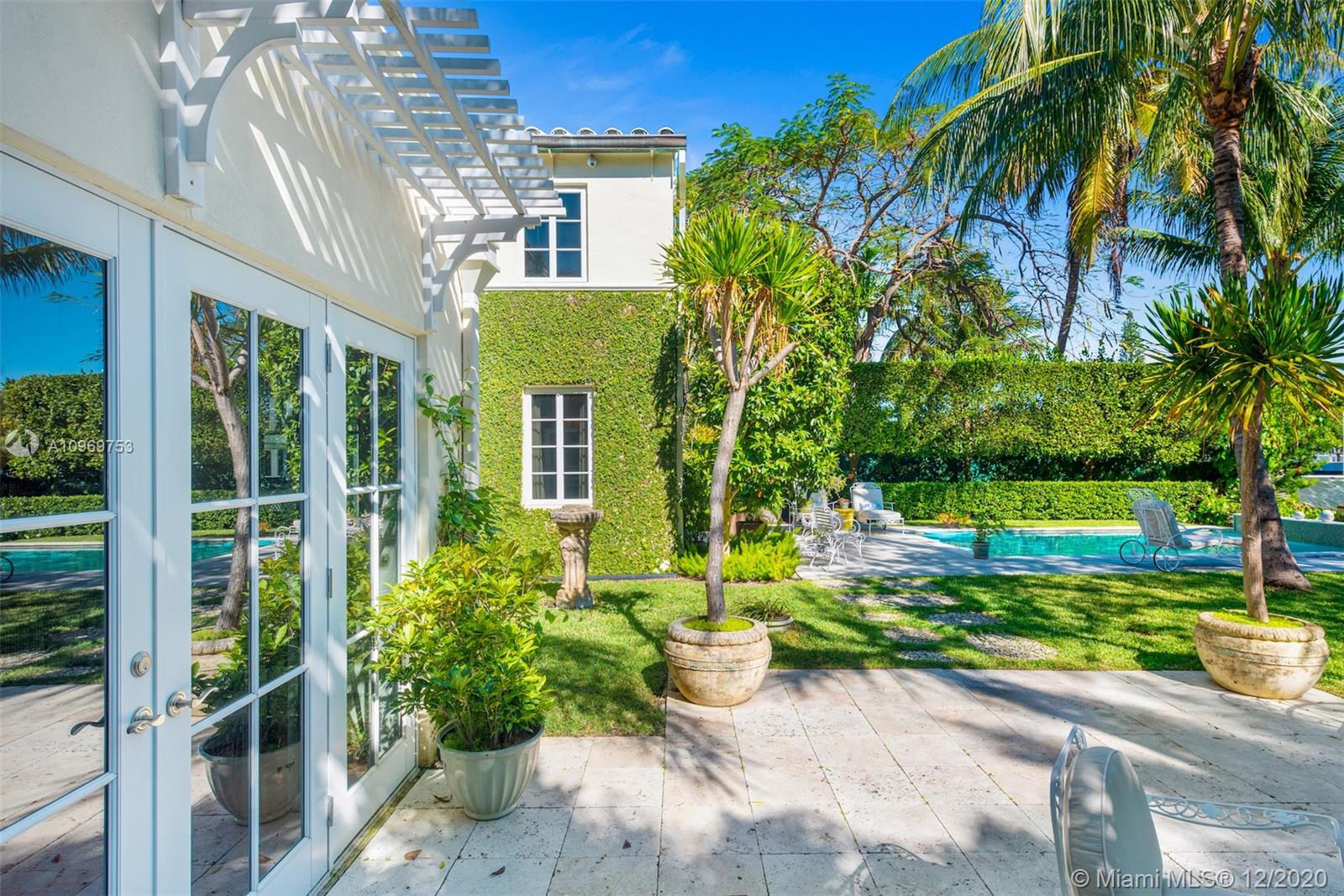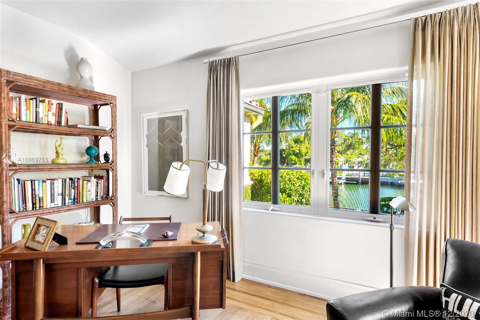 Ideally situated on oversized nearly 10,000 SF waterfront lot, this gorgeously renovated 2story Deco dream awaits its new owners. Residence is fully gated & lushly landscaped for the utmost privacy on 65ft of navigable waters. Home features rarely available 4,278 total SF & 5bd + FamilyRm floorplan (easily convertible to a 6th bd/1st FlrMstr). Once inside, bright&light living spaces feature coral tile flooring, unique fixtures & high-end finishes throughout. 3bds up, each w/ ensuite Bath + separate stairway leading to semi-detached 2 add’l bdr/office areas w/ full bath. Master suite offers its own terrace! Add'l offerings include impact glass,2 CG & full home surveillance system. Relax after a long day by the courtyard fountain,heated saltwater pool,or your very own coral tiled patio&dock!
