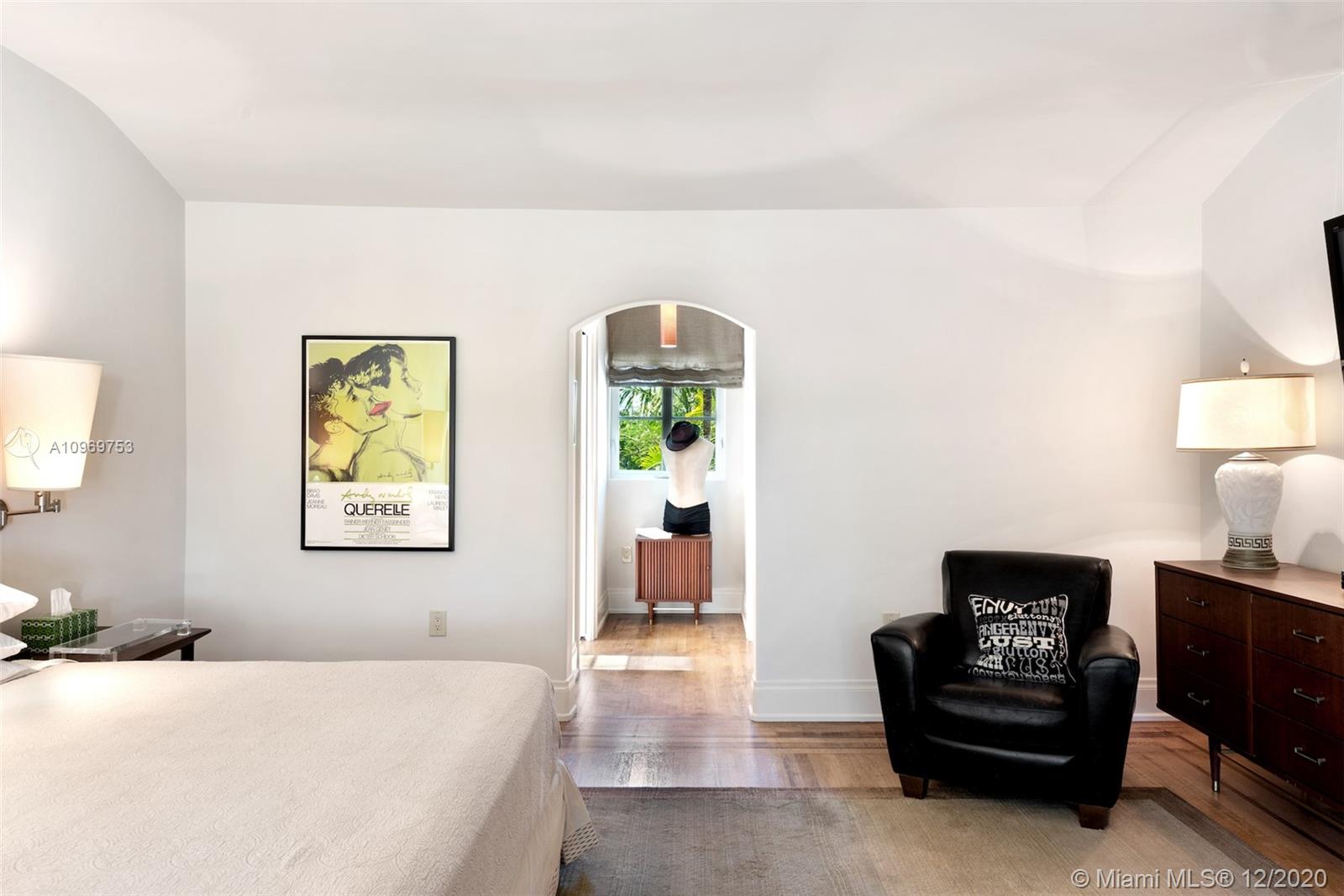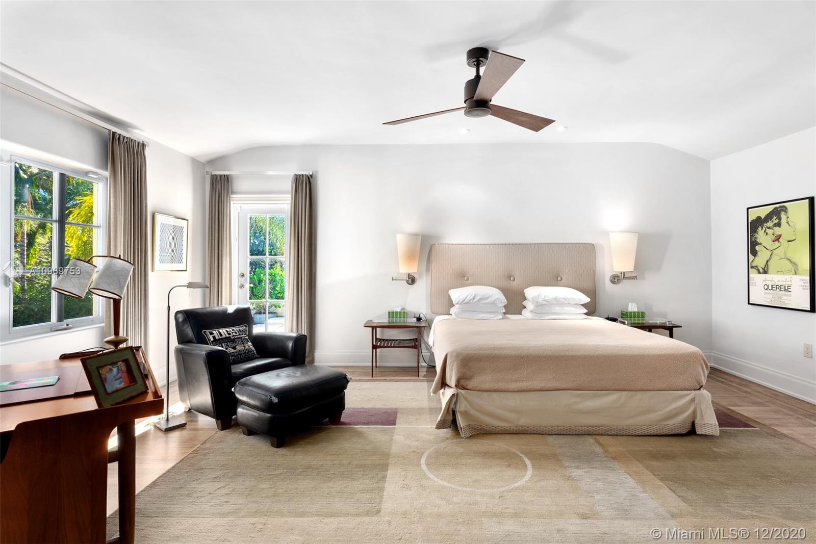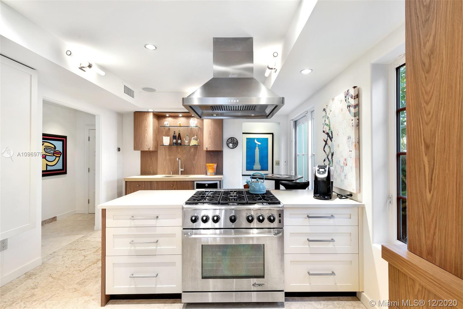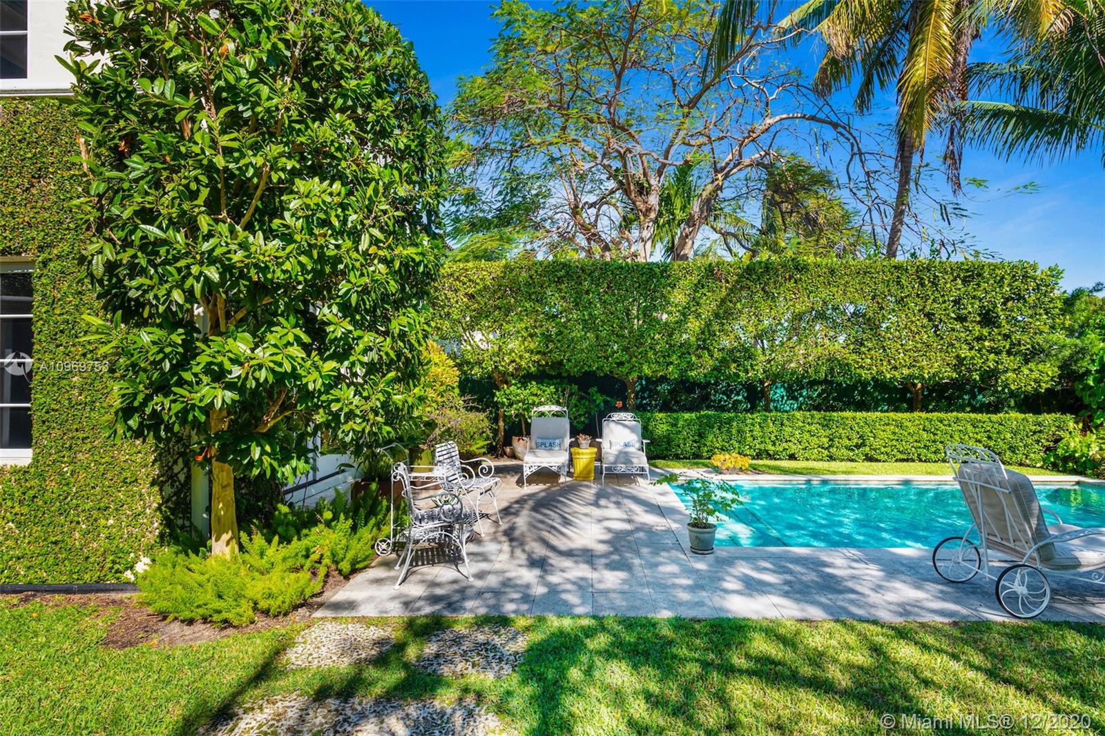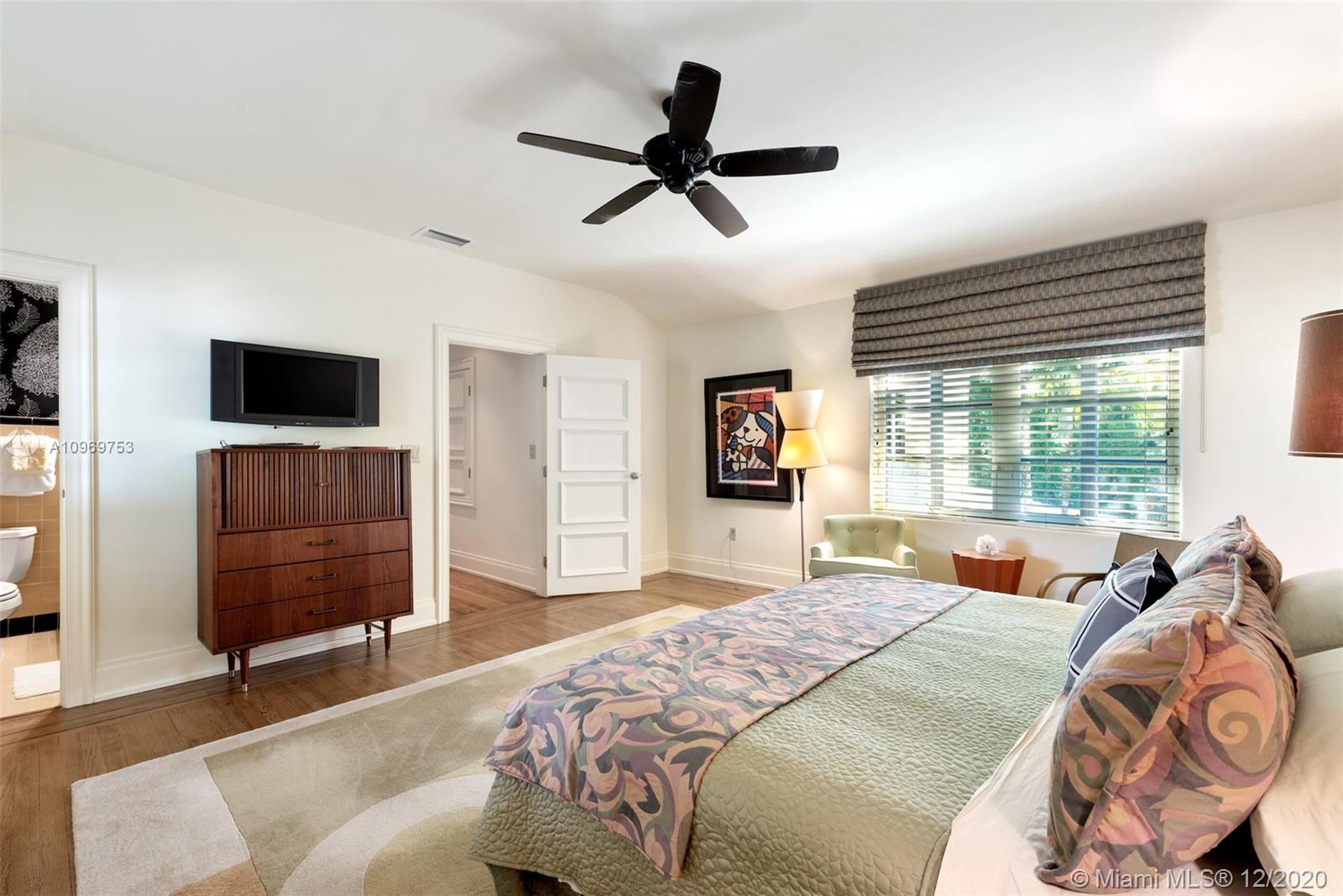 Ideally situated on oversized nearly 10,000 SF waterfront lot, this gorgeously renovated 2story Deco dream awaits its new owners. Residence is fully gated & lushly landscaped for the utmost privacy on 65ft of navigable waters. Home features rarely available 4,278 total SF & 5bd + FamilyRm floorplan (easily convertible to a 6th bd/1st FlrMstr). Once inside, bright&light living spaces feature coral tile flooring, unique fixtures & high-end finishes throughout. 3bds up, each w/ ensuite Bath + separate stairway leading to semi-detached 2 add’l bdr/office areas w/ full bath. Master suite offers its own terrace! Add'l offerings include impact glass,2 CG & full home surveillance system. Relax after a long day by the courtyard fountain,heated saltwater pool,or your very own coral tiled patio&dock!
