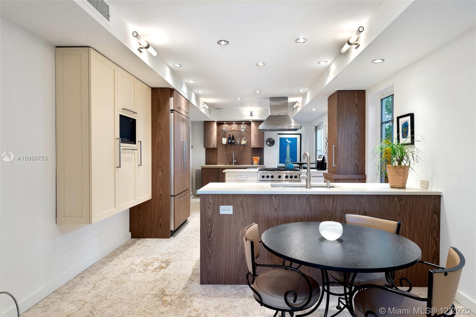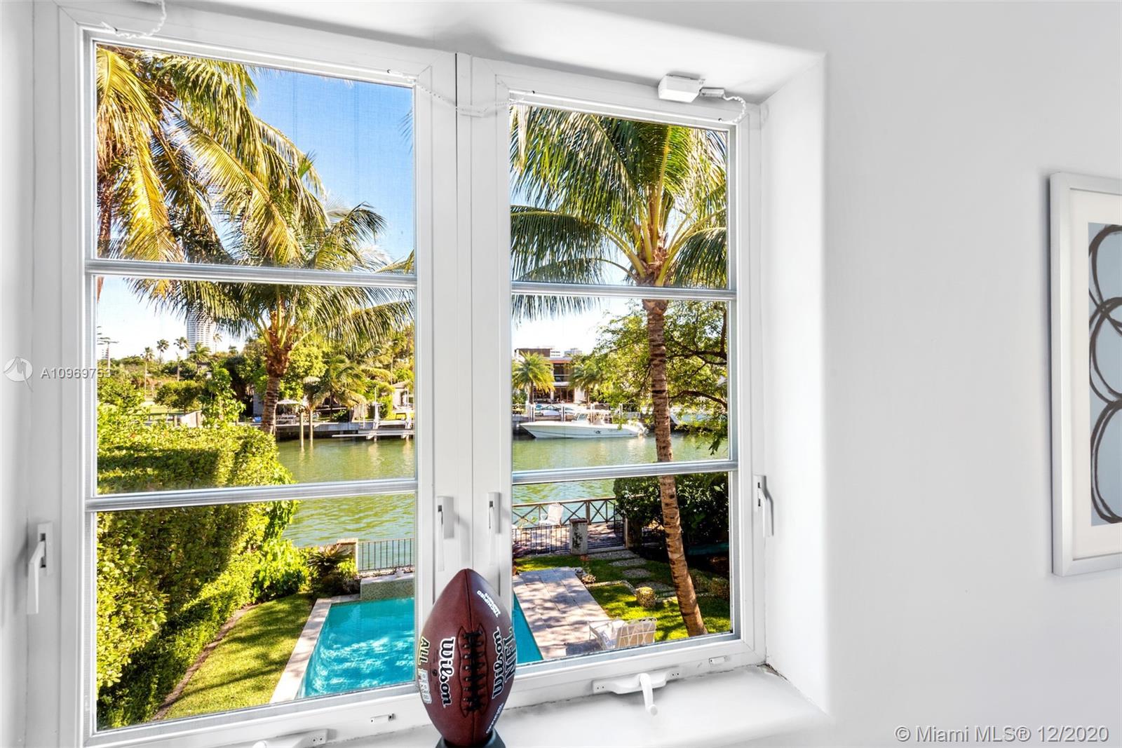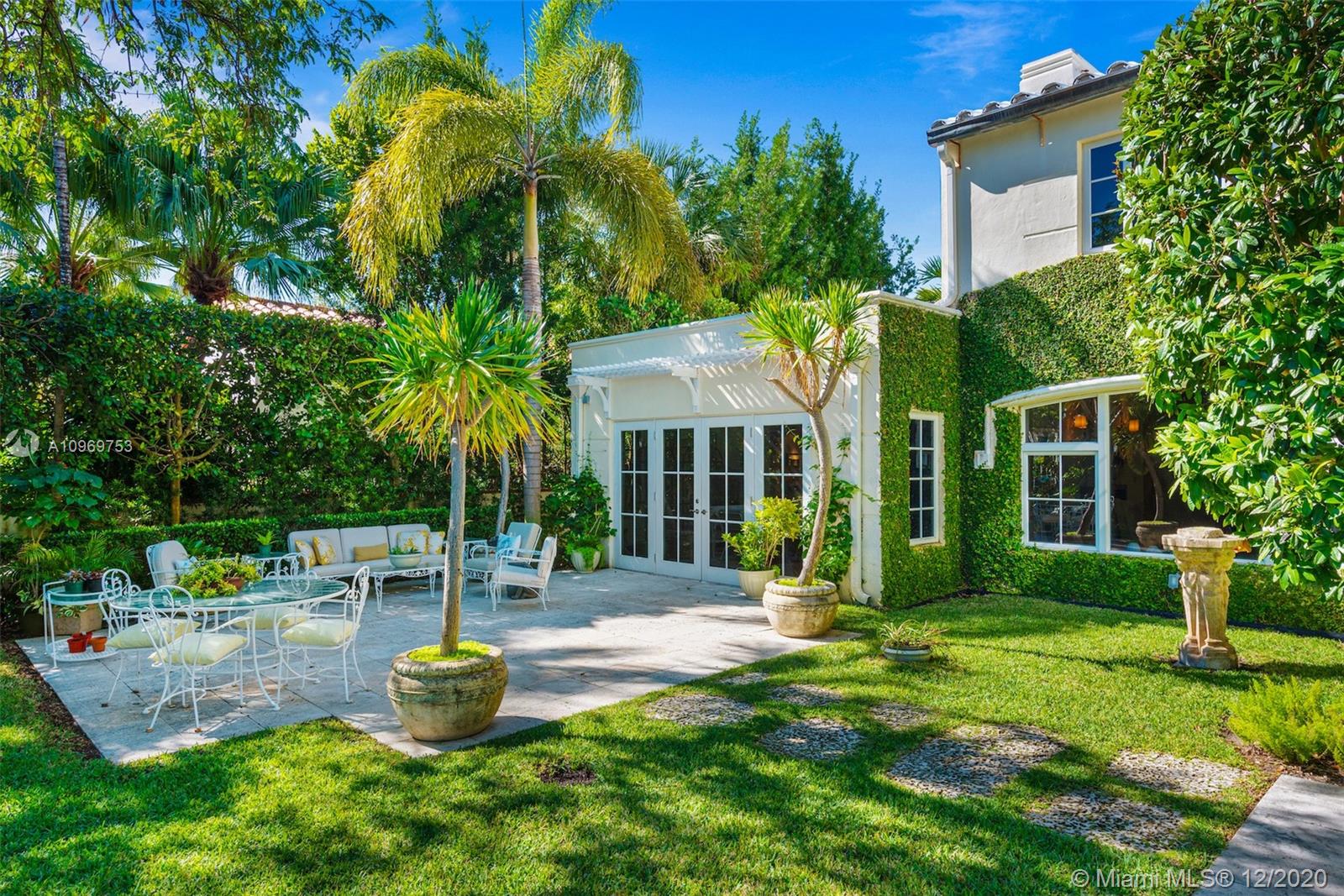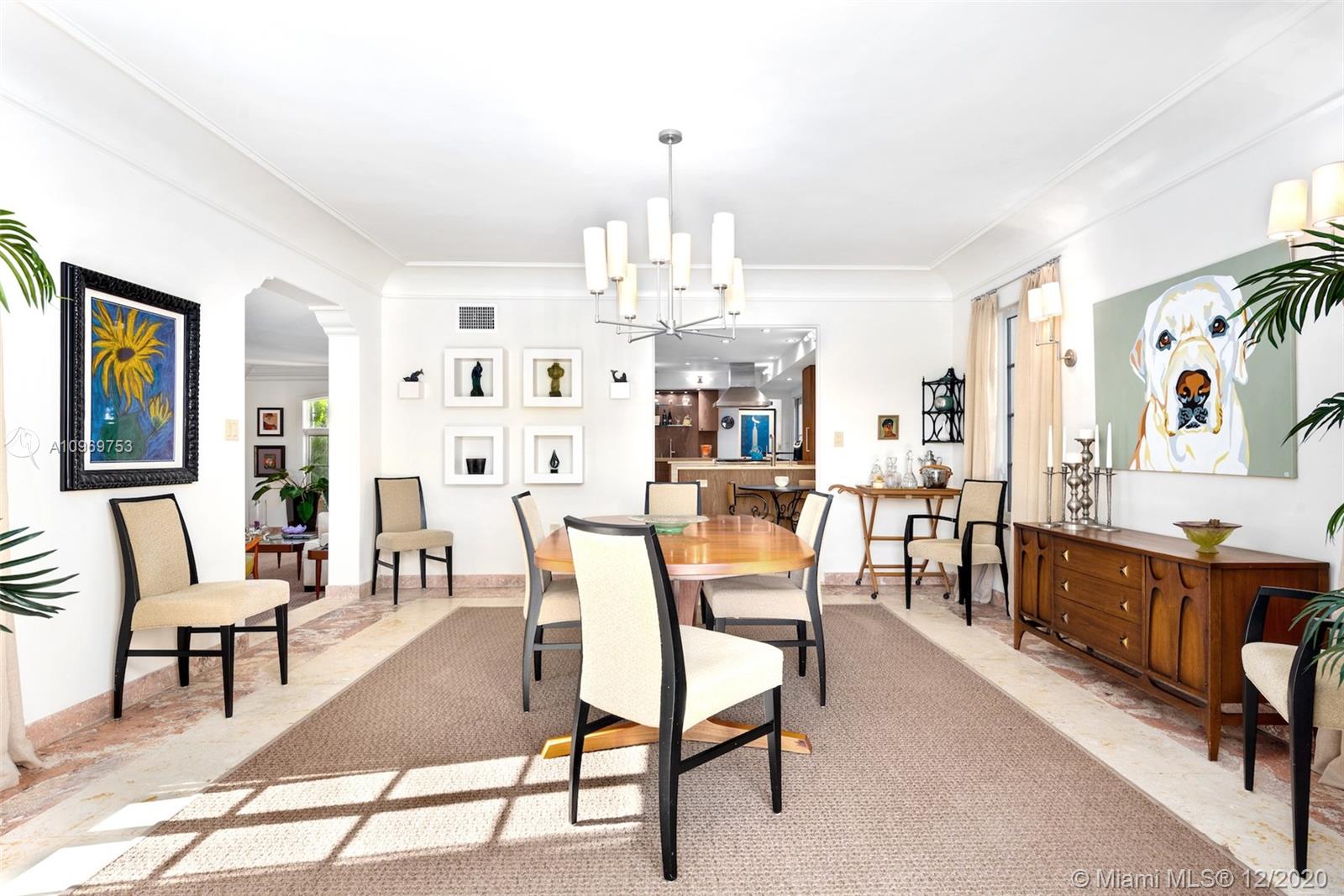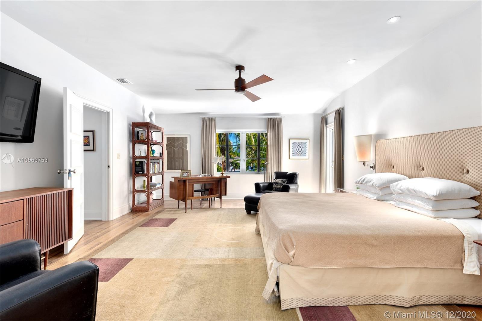 Ideally situated on oversized nearly 10,000 SF waterfront lot, this gorgeously renovated 2story Deco dream awaits its new owners. Residence is fully gated & lushly landscaped for the utmost privacy on 65ft of navigable waters. Home features rarely available 4,278 total SF & 5bd + FamilyRm floorplan (easily convertible to a 6th bd/1st FlrMstr). Once inside, bright&light living spaces feature coral tile flooring, unique fixtures & high-end finishes throughout. 3bds up, each w/ ensuite Bath + separate stairway leading to semi-detached 2 add’l bdr/office areas w/ full bath. Master suite offers its own terrace! Add'l offerings include impact glass,2 CG & full home surveillance system. Relax after a long day by the courtyard fountain,heated saltwater pool,or your very own coral tiled patio&dock!
