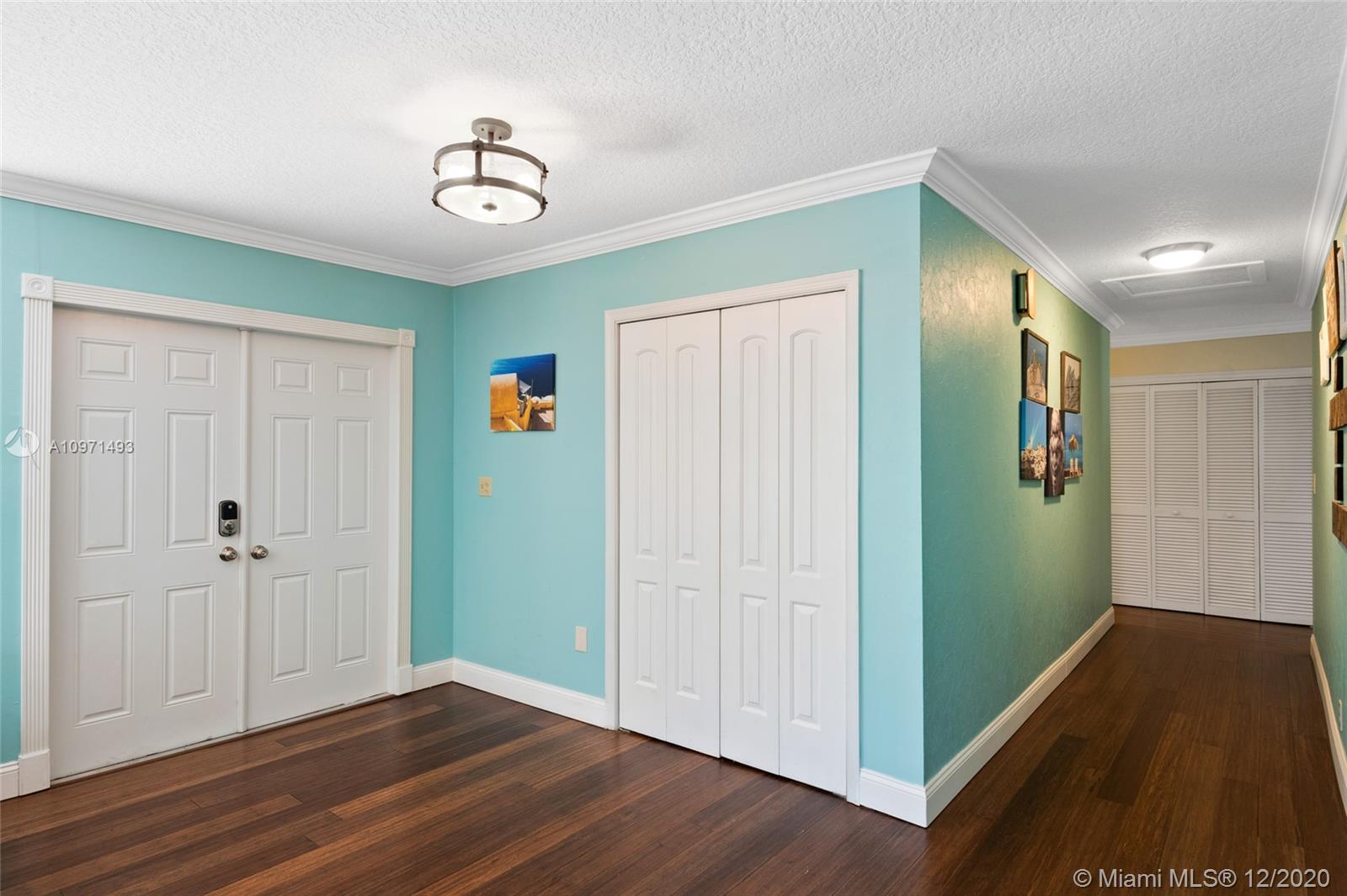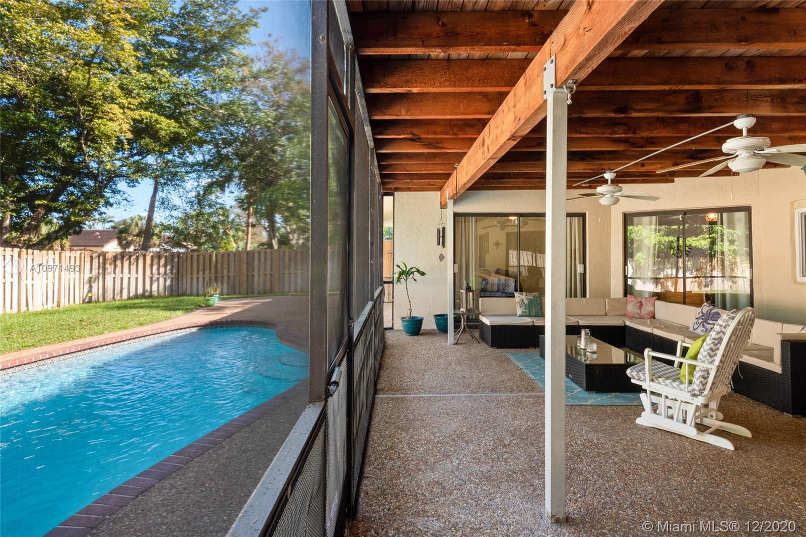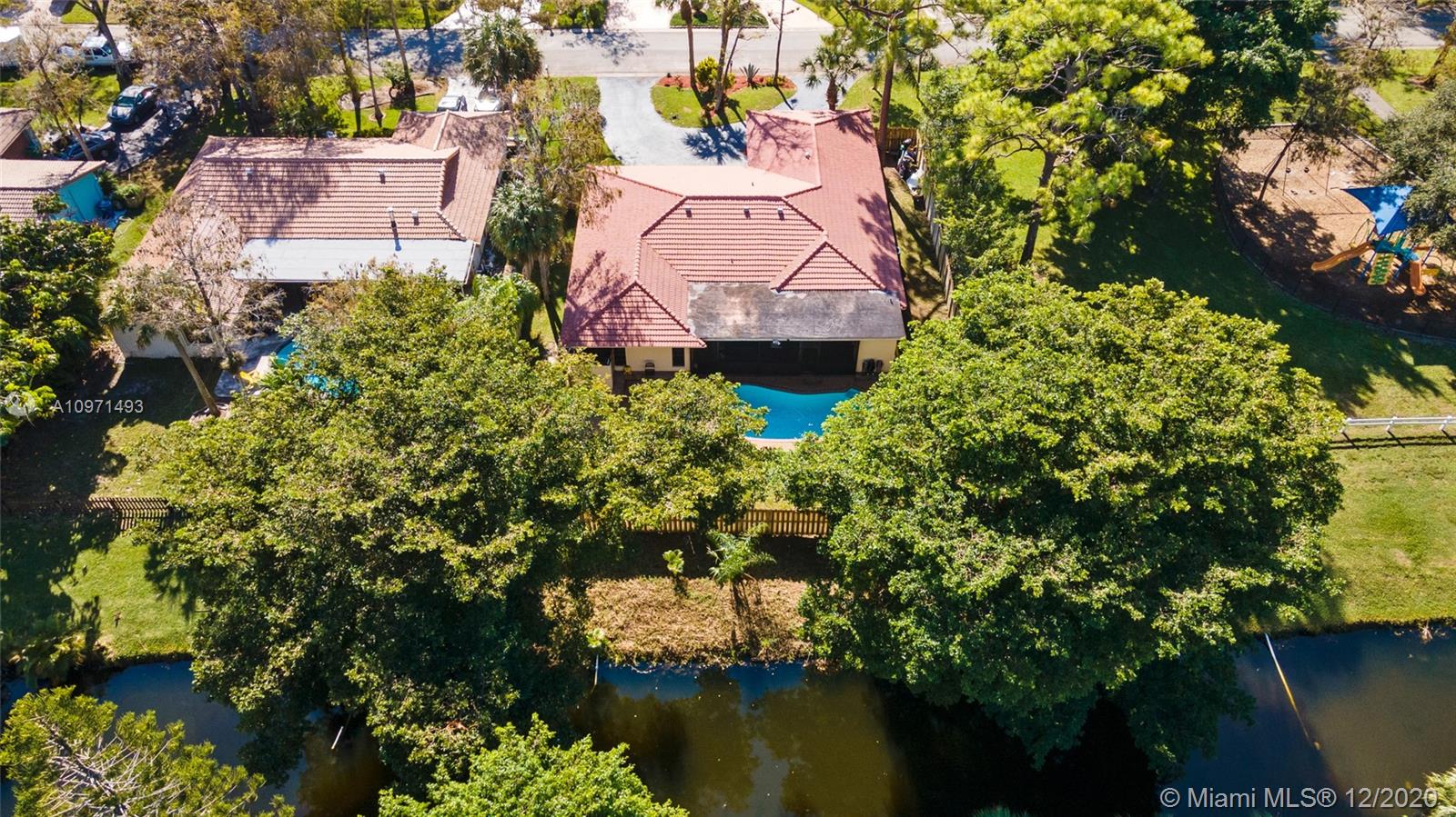 This spacious home features 4 bedrooms (split floorplan), 3 bathrooms (1 cabana bath), 2-car garage, pool, canal, and is located next to Countrywood Park. Other features include updated wood flooring through most of the home, updated kitchen with granite countertops and breakfast nook area, roof installed in 2013, HVAC handler newly installed, updated baseboards, crown molding, and recessed lighting. Exterior features include circular driveway, fully fenced backyard, covered and screened patio, pool and extended outdoor patio area. Very private backyard and a great space for entertaining.
