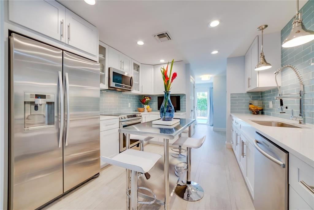 ABSOLUTELY STUNNING!!!!! Less than 1 mile from the beach! Spectacular 3 Bed, 3 Bath, split floor plan, Key West Style contemporary home. This home offers everything one could possibly desire. ALL IMPACT WINDOWS, All white custom kitchen with SS appliances and quartz counter tops , All bathrooms have been beautifully updated. Large 24"x36" porcelain tiles throughout. Exterior features a private outdoor space, fenced in backyard, underground heated pool and luscious landscaping. Walking distance to all major shopping, THE BEACH, dining & entertainment needs. You better make an offer on this home before BOOM... She Gone! A/C, Appliances, Water Heater all 2016. Pool heater is 2018.